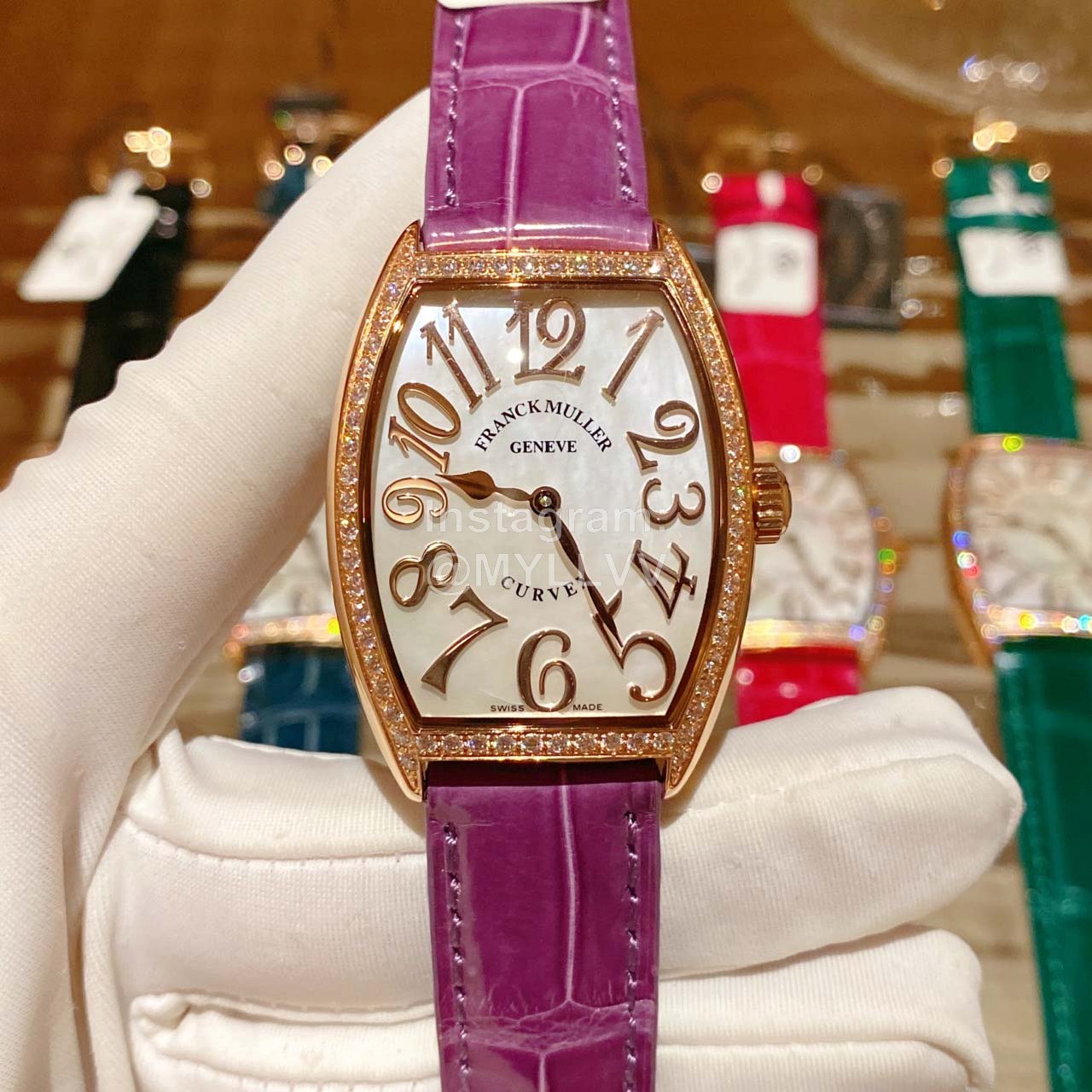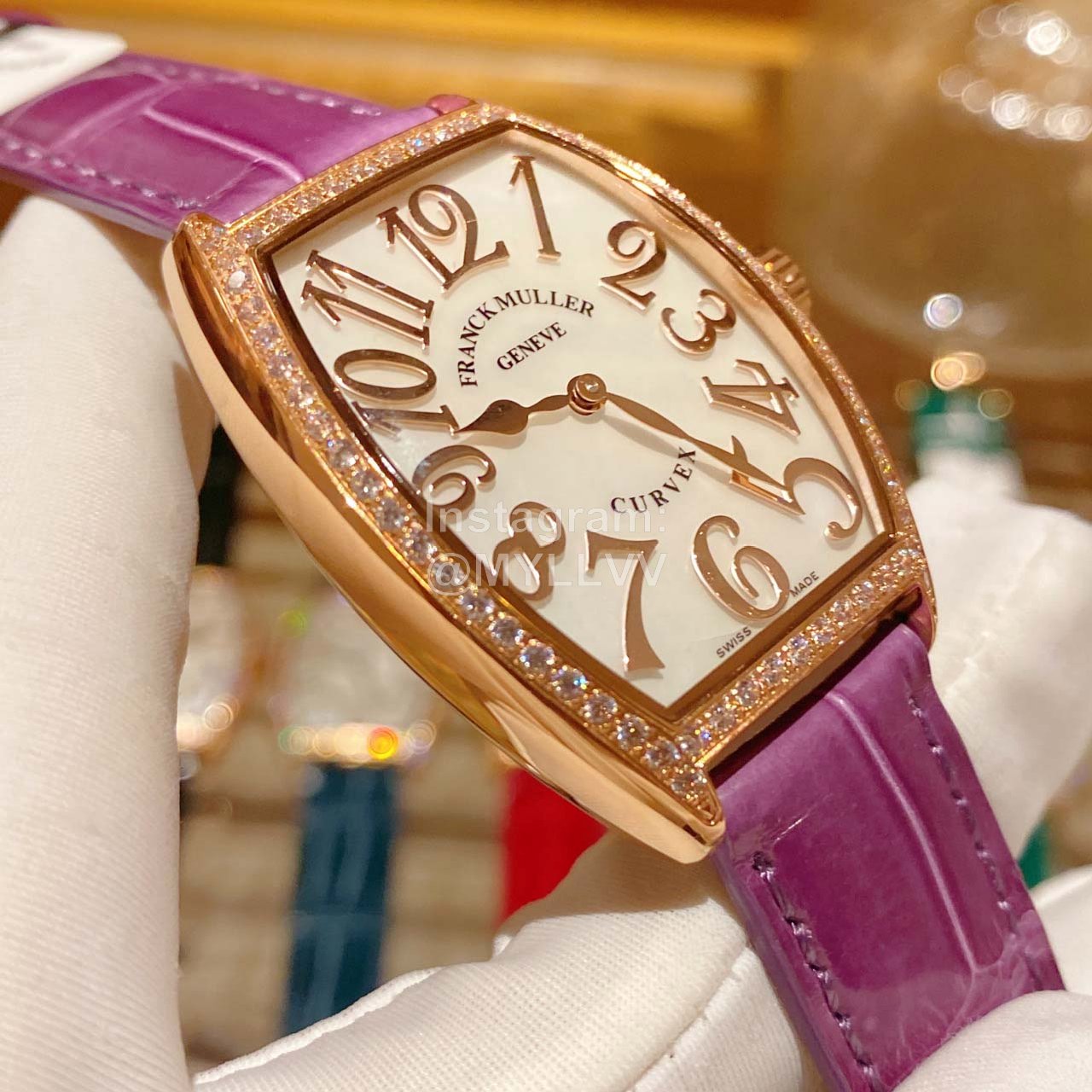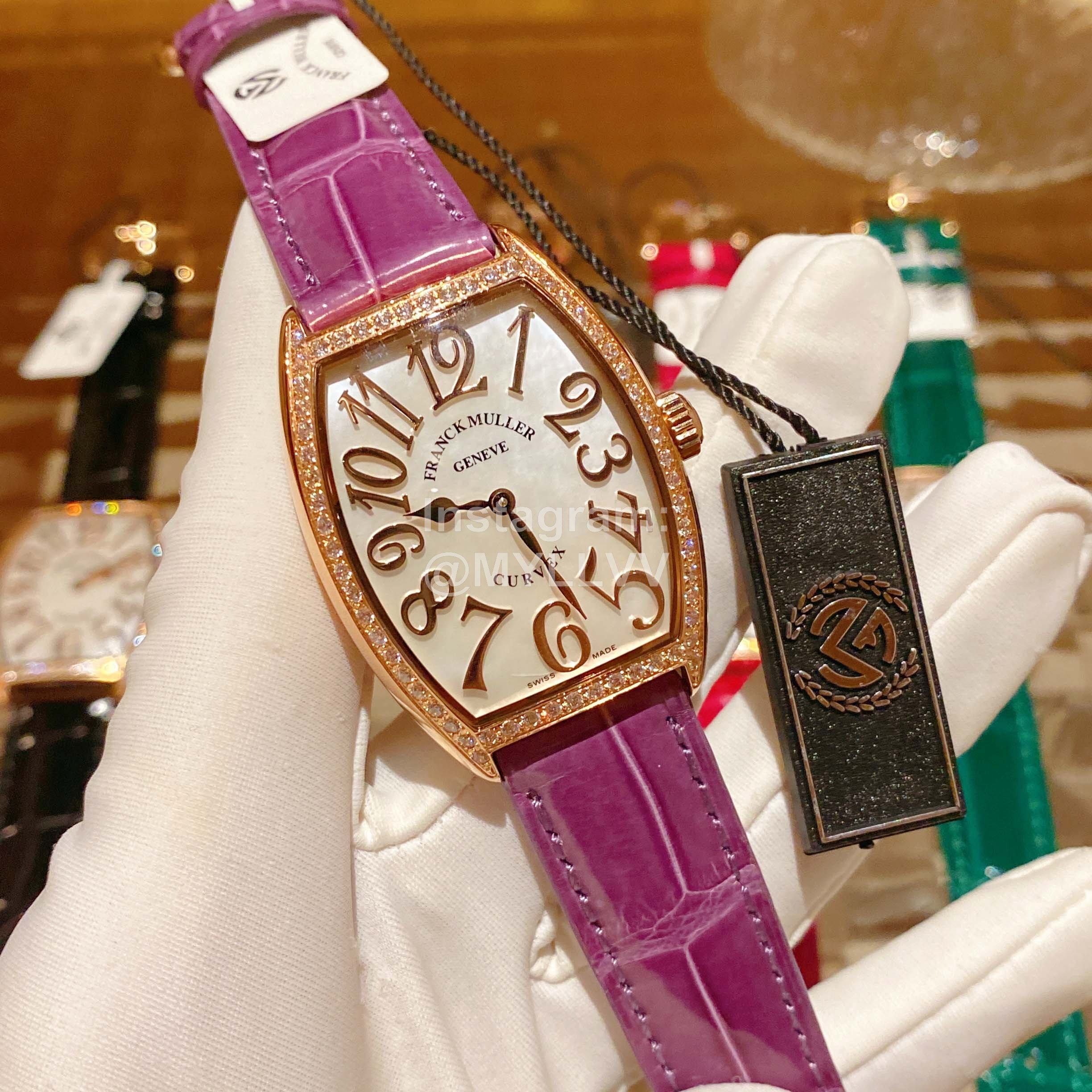 Franck muller2852 series wine barrel type women’s Quartz wristwatch 316L fine steel case is processed and polished by CNC. The bottom cover is seamlessly spliced with the case and carved into shape. The bottom cover is finely brushed and the font carving is clear. The arched mirror is matched with the real pearl light Fritillaria arched dial with complicated manufacturing process. The 12 real nail Arabic numerals show three-dimensional. The color of a good pearl Fritillaria dial can show different bright luster and dazzling due to different light sources and observation angles, It is by no means comparable to other low-quality Fritillaria discs. The movement adopts imported quartz movement, with accurate travel time and 5A high-grade diamond inlay. It is made at any cost, with ingenuity and perfect technology. Match with handmade American crocodile skin to show aestheticism and elegance