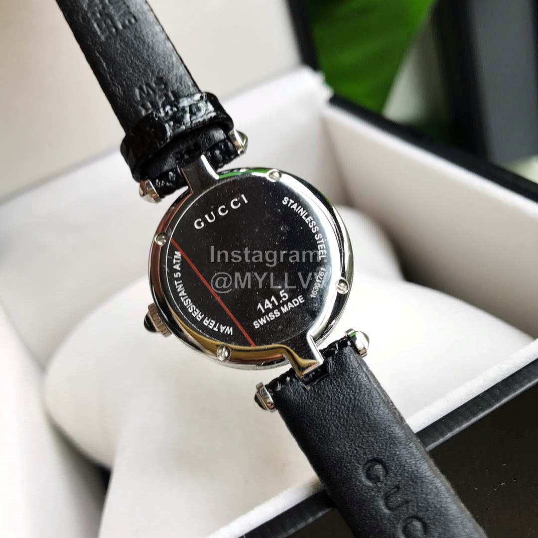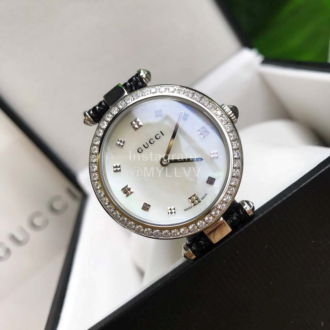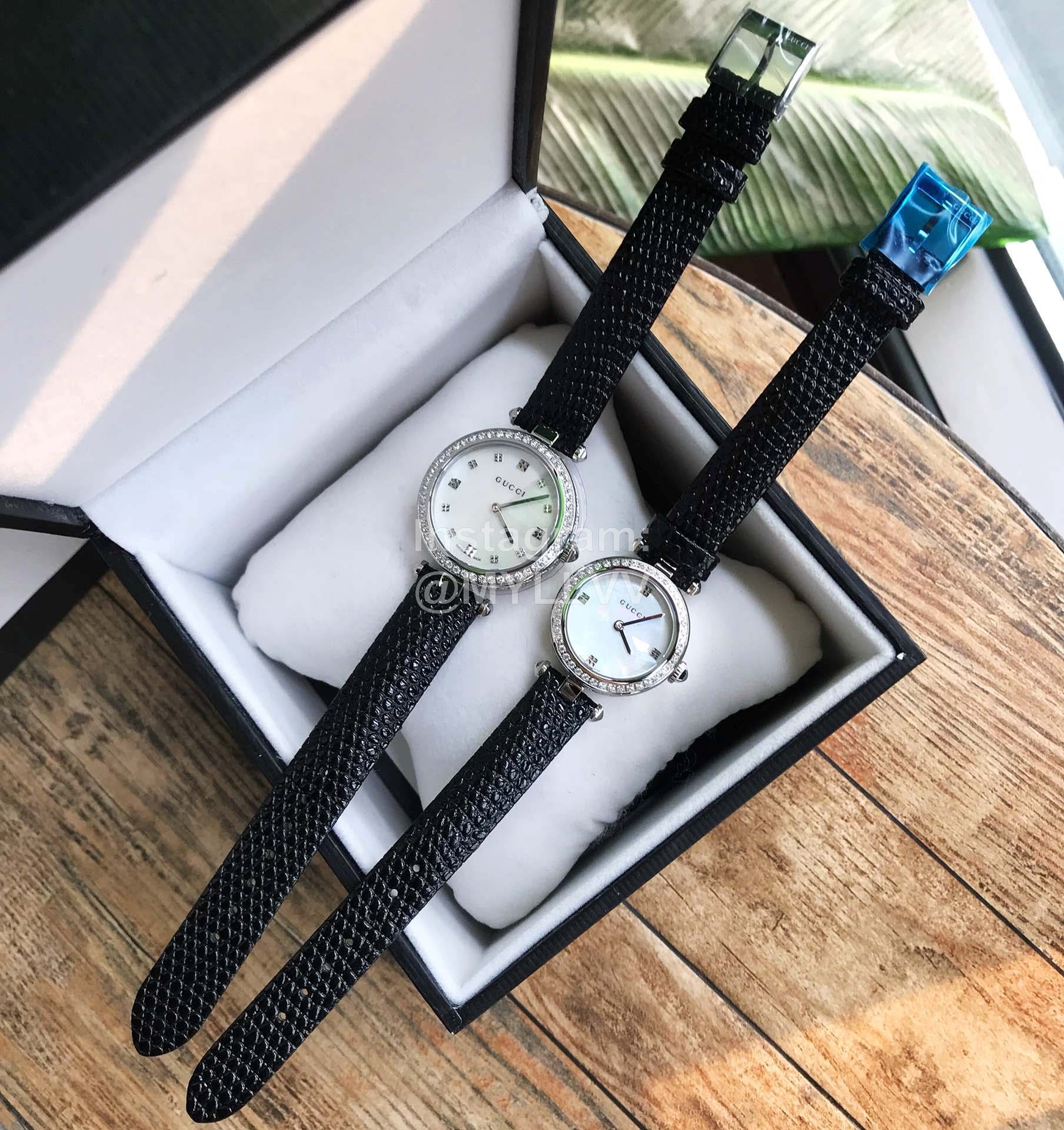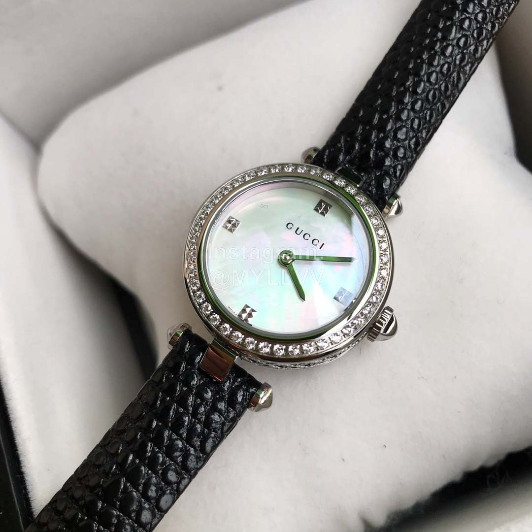 Gucci classic style, necessary for Goddess white-collar workers, scratch resistant sapphire mirror and diamond pattern dial, hollow carving process that can not be imitated, rich in hierarchical three-dimensional texture. Each watch bottom cover has an independent number, 32mm-27mm dial diameter. Soft calf leather clings to the arm for comfort. Unique design, gucci logo on glass, 50m waterproof