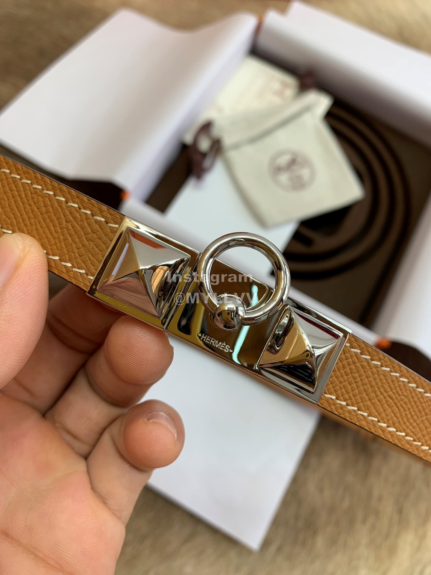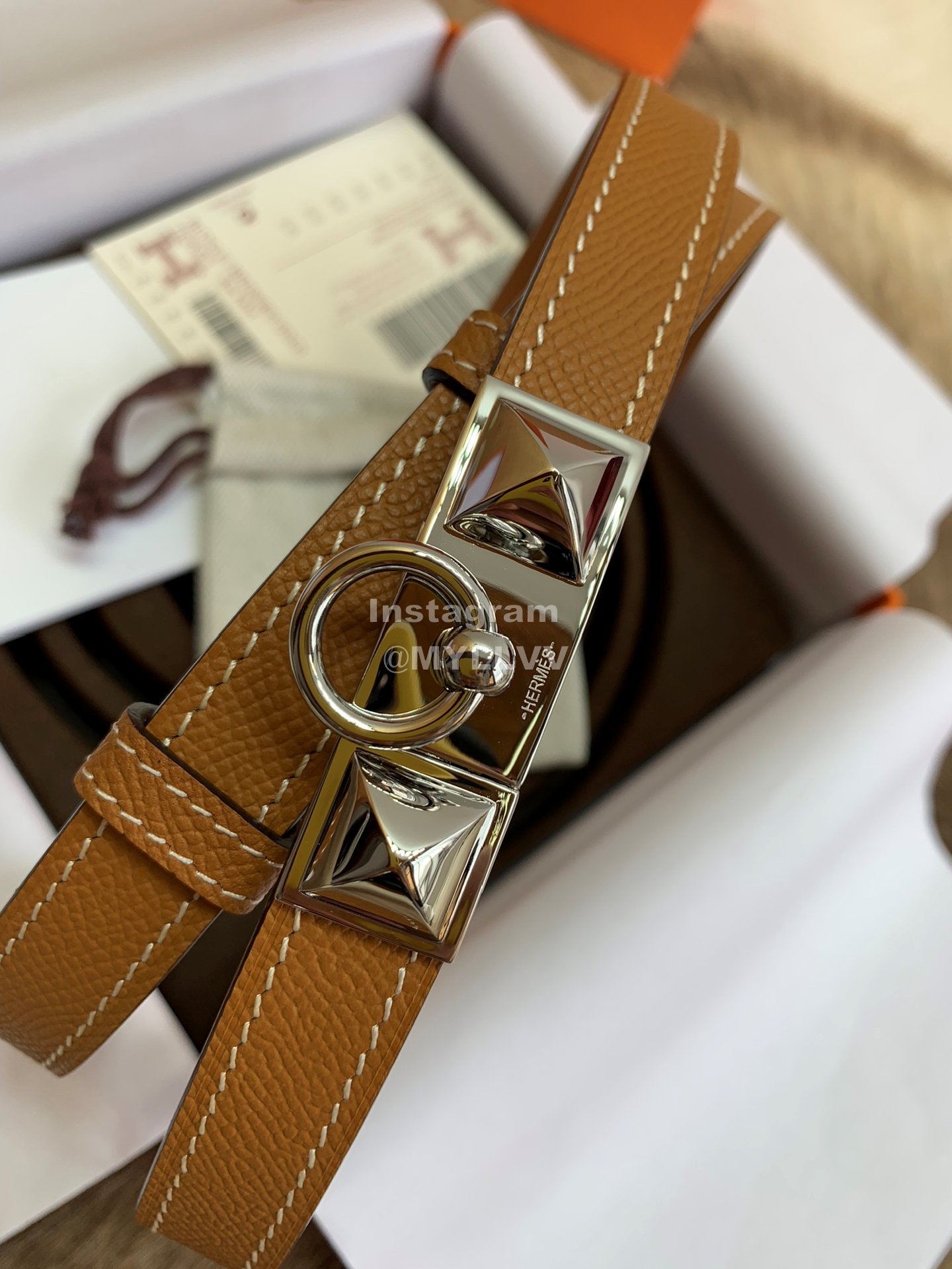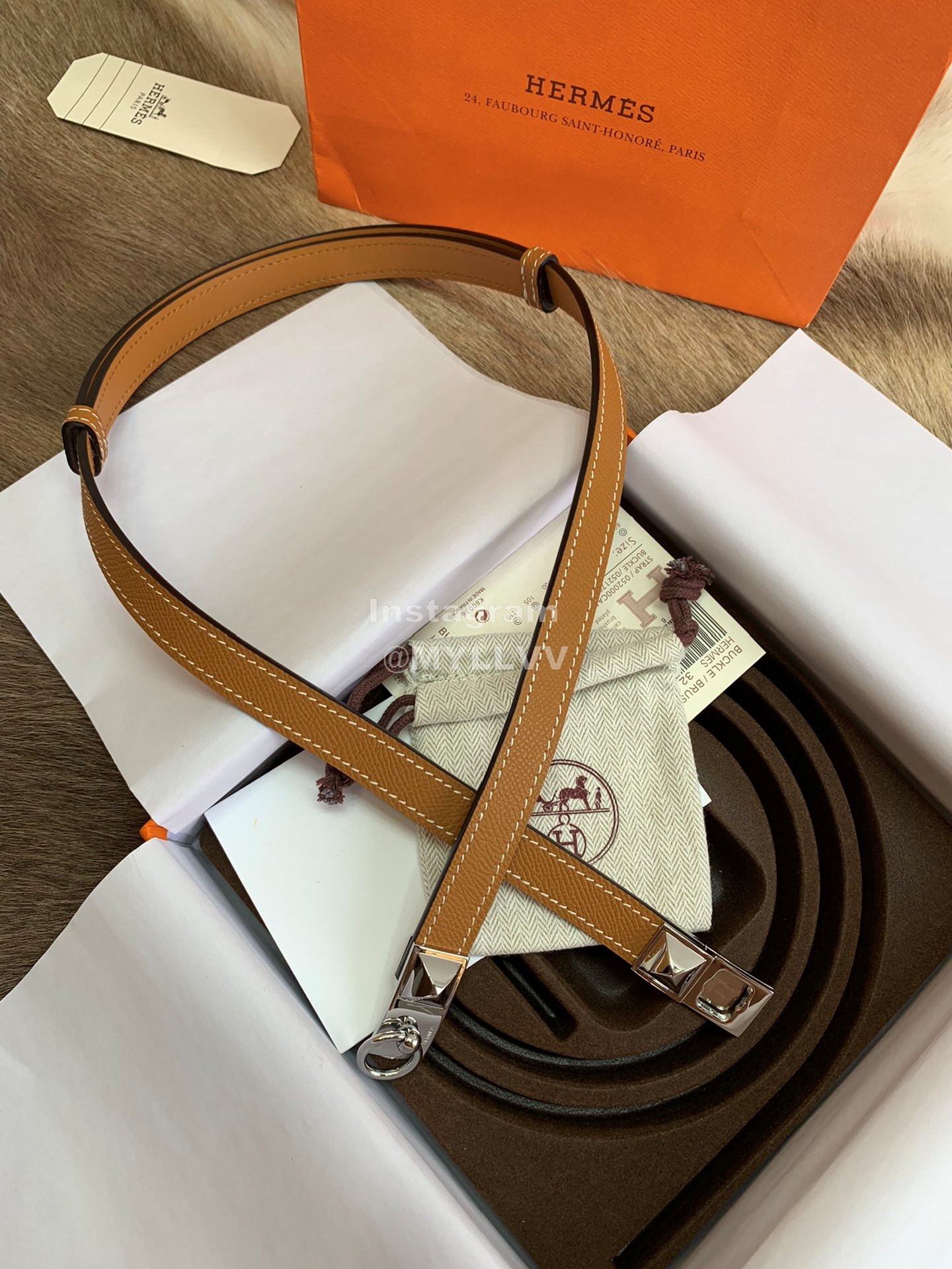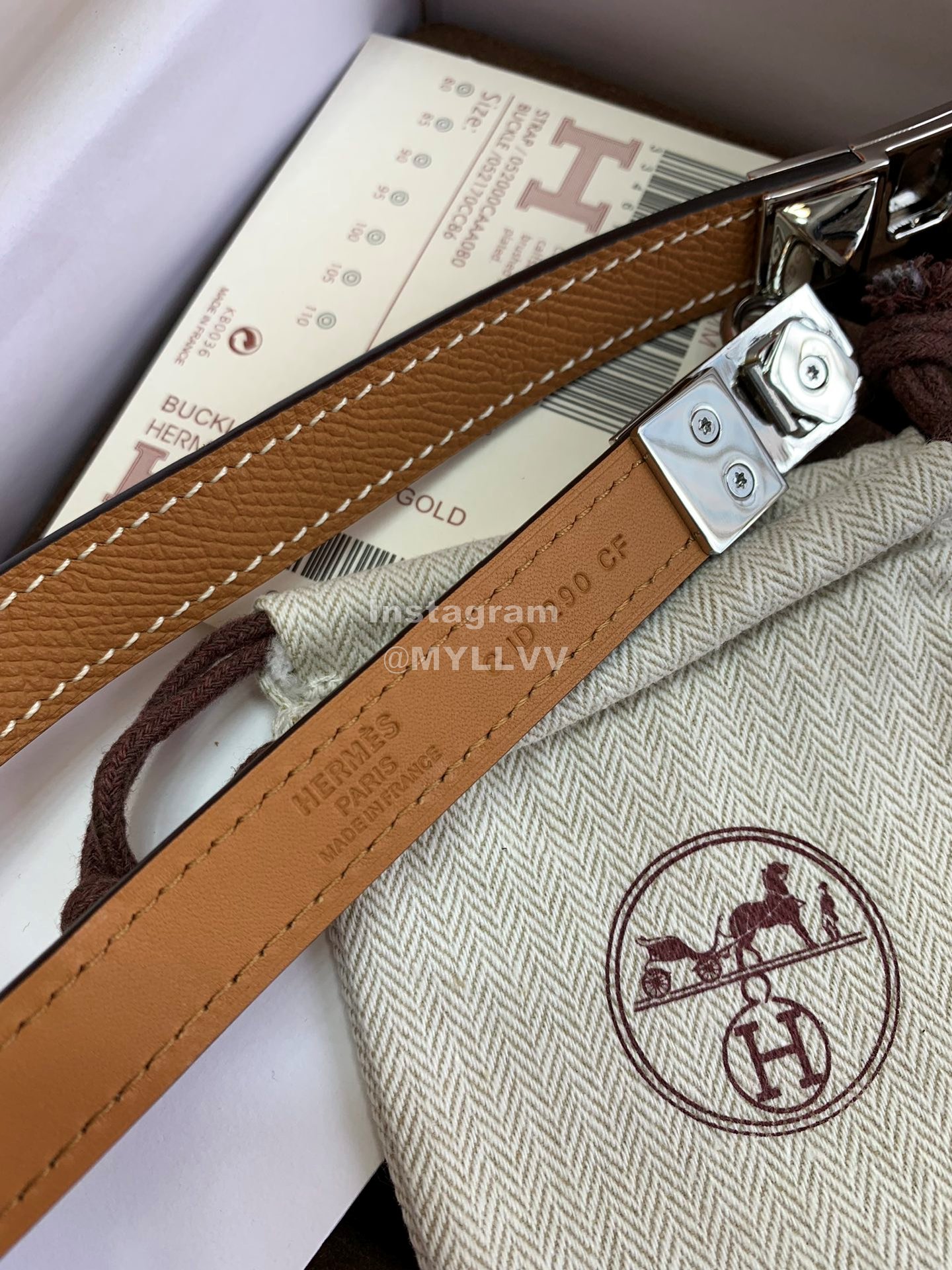 Hermes Calf Leather Stainless Steel Silver Buckle 18mm Kelly Belt Brown