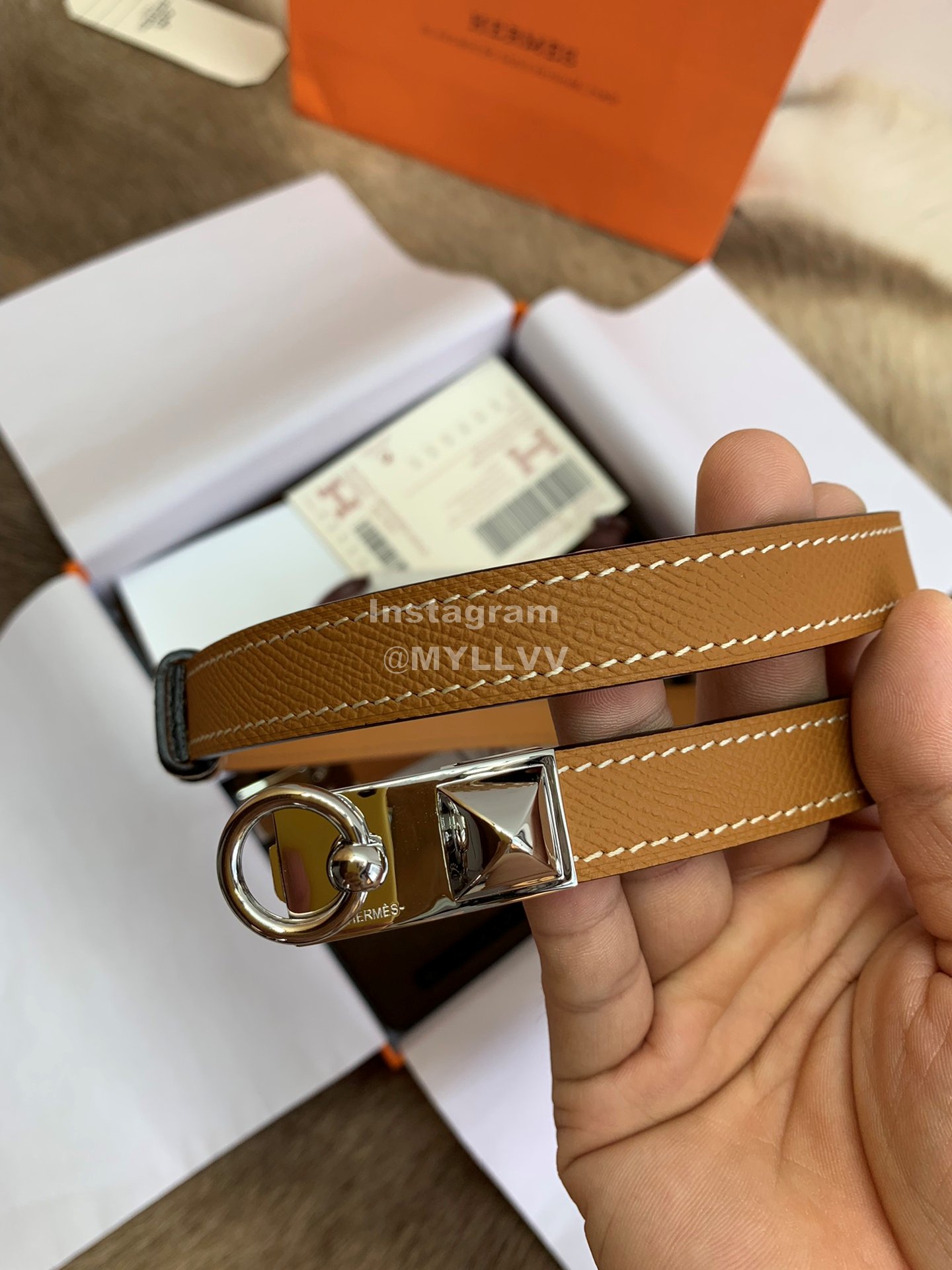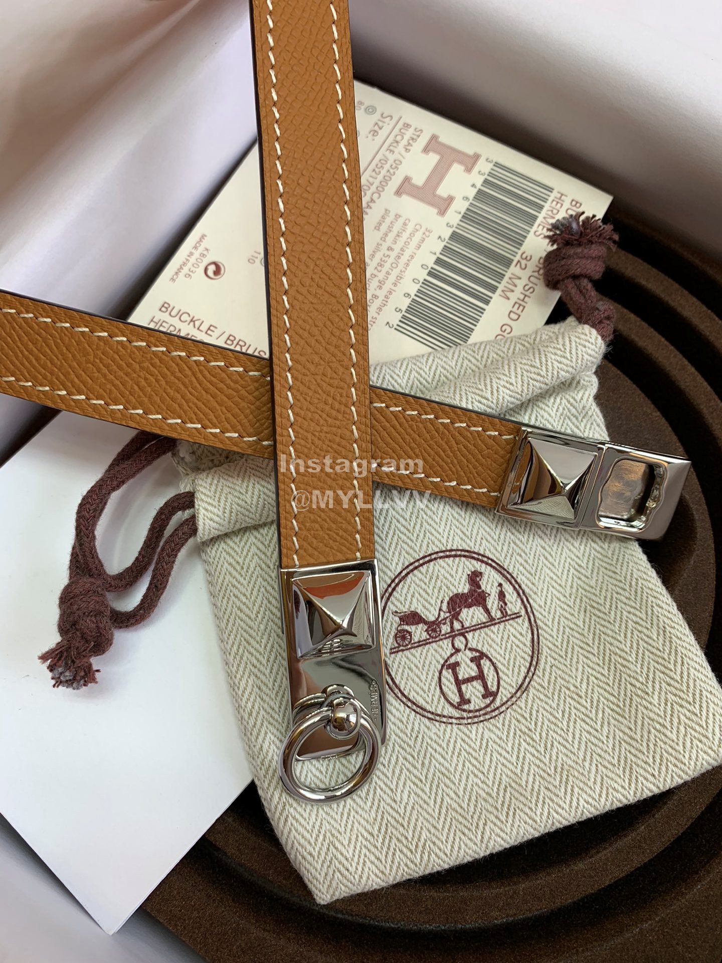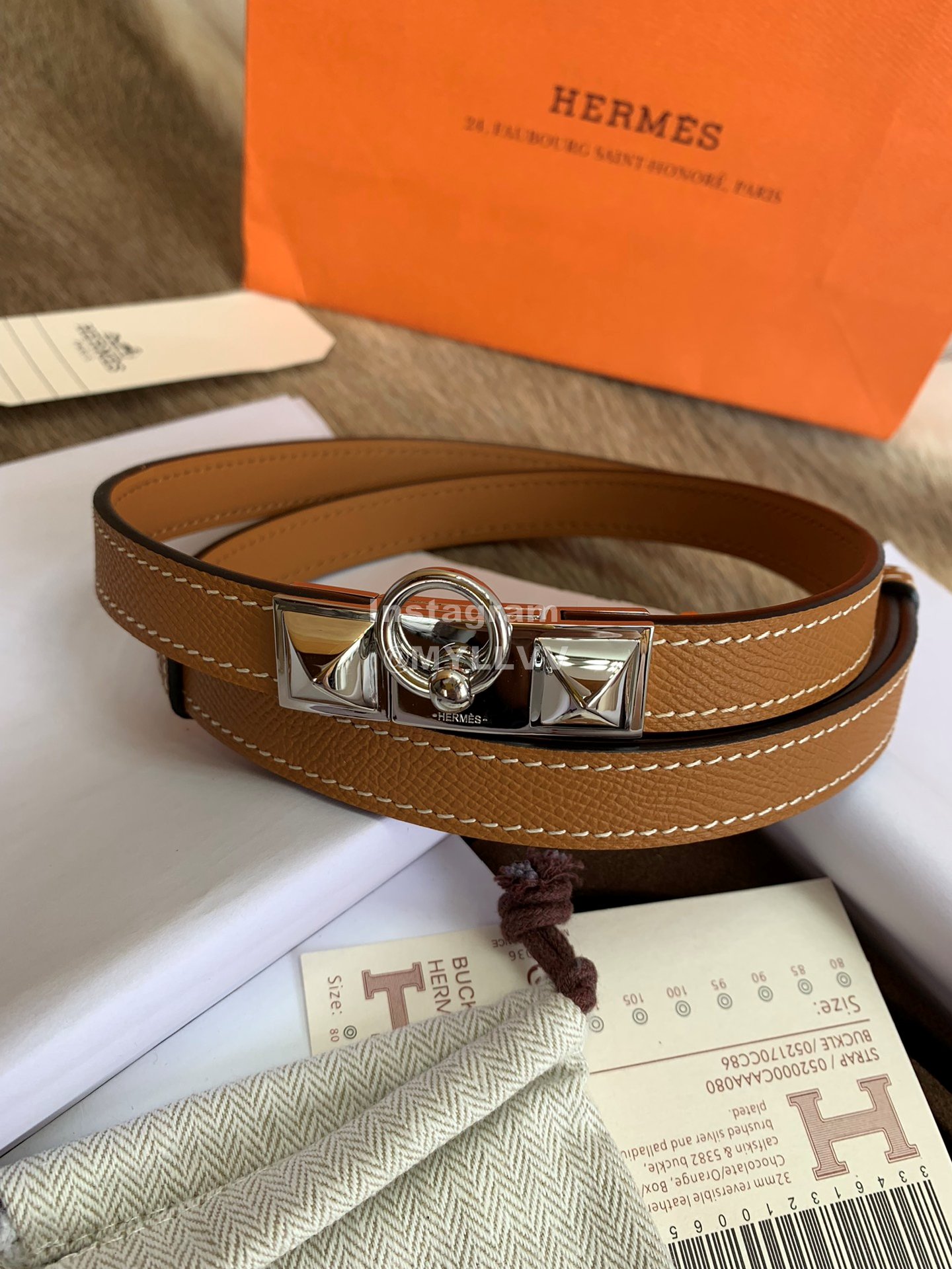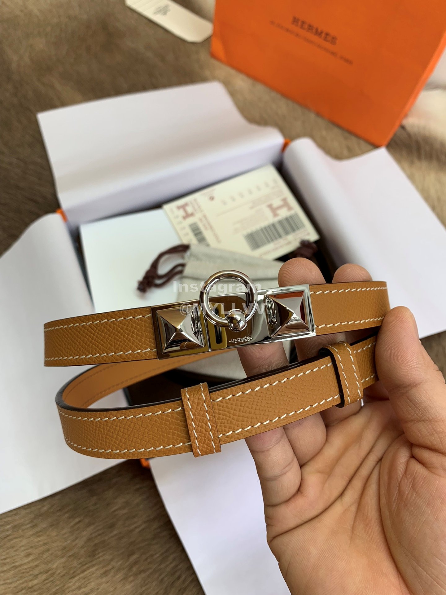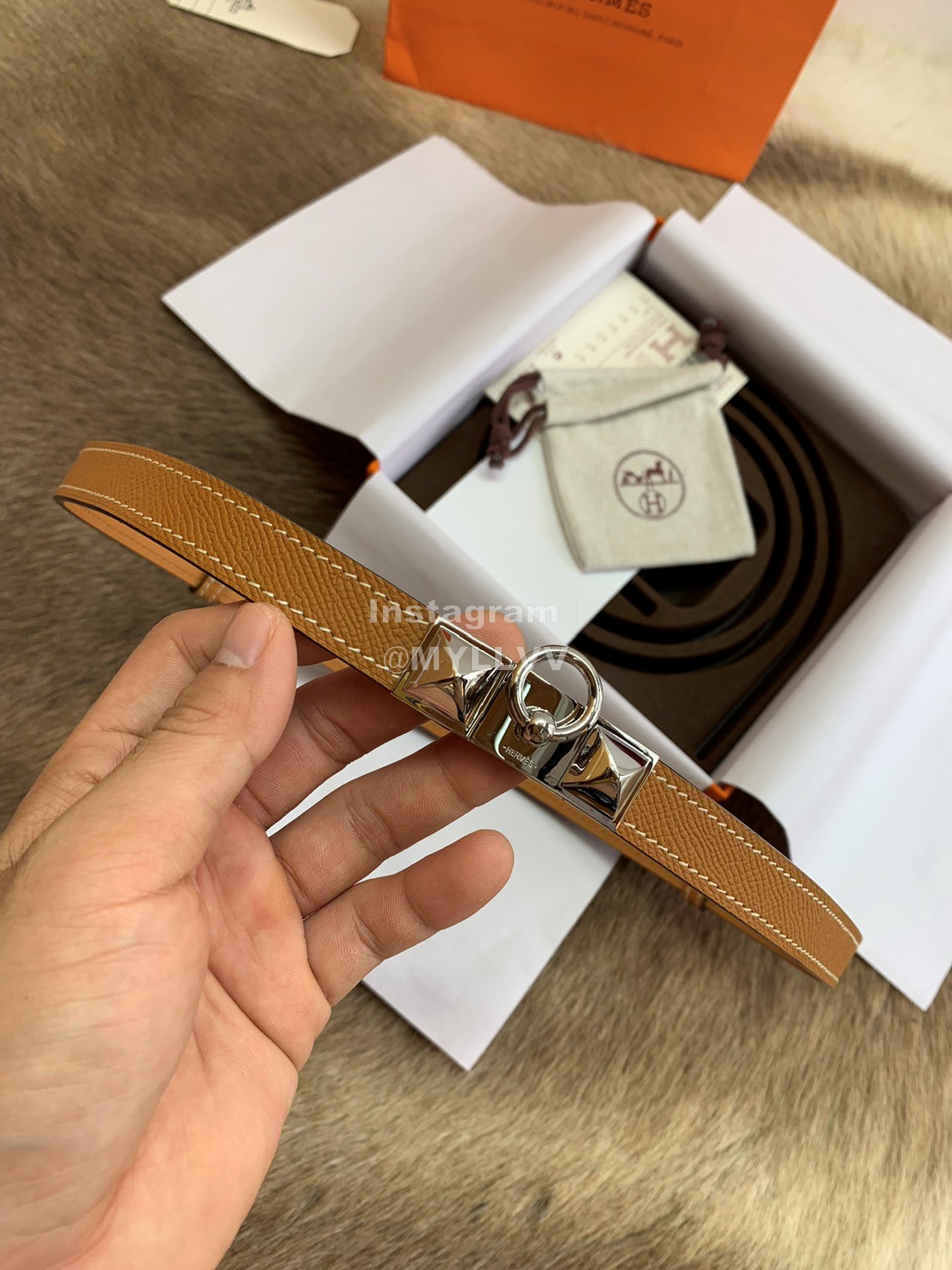Hermes Calf Leather Stainless Steel Silver Buckle 18mm Kelly Belt Brown
