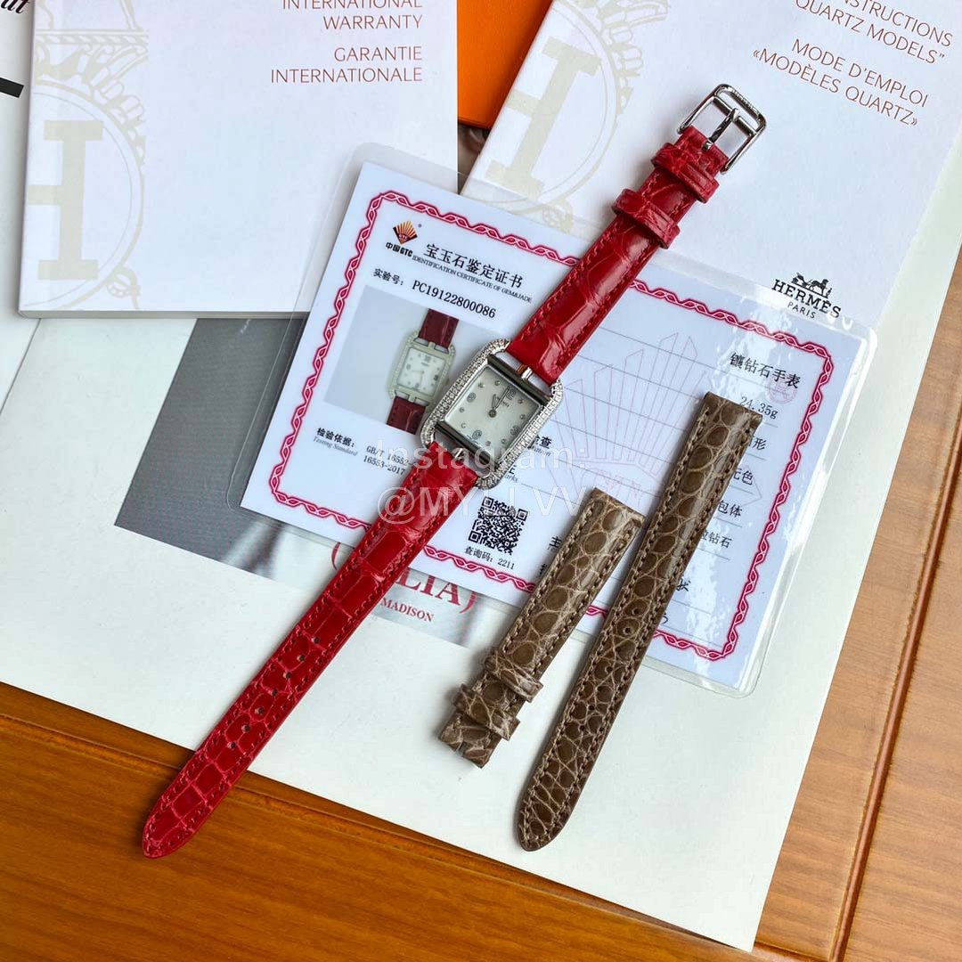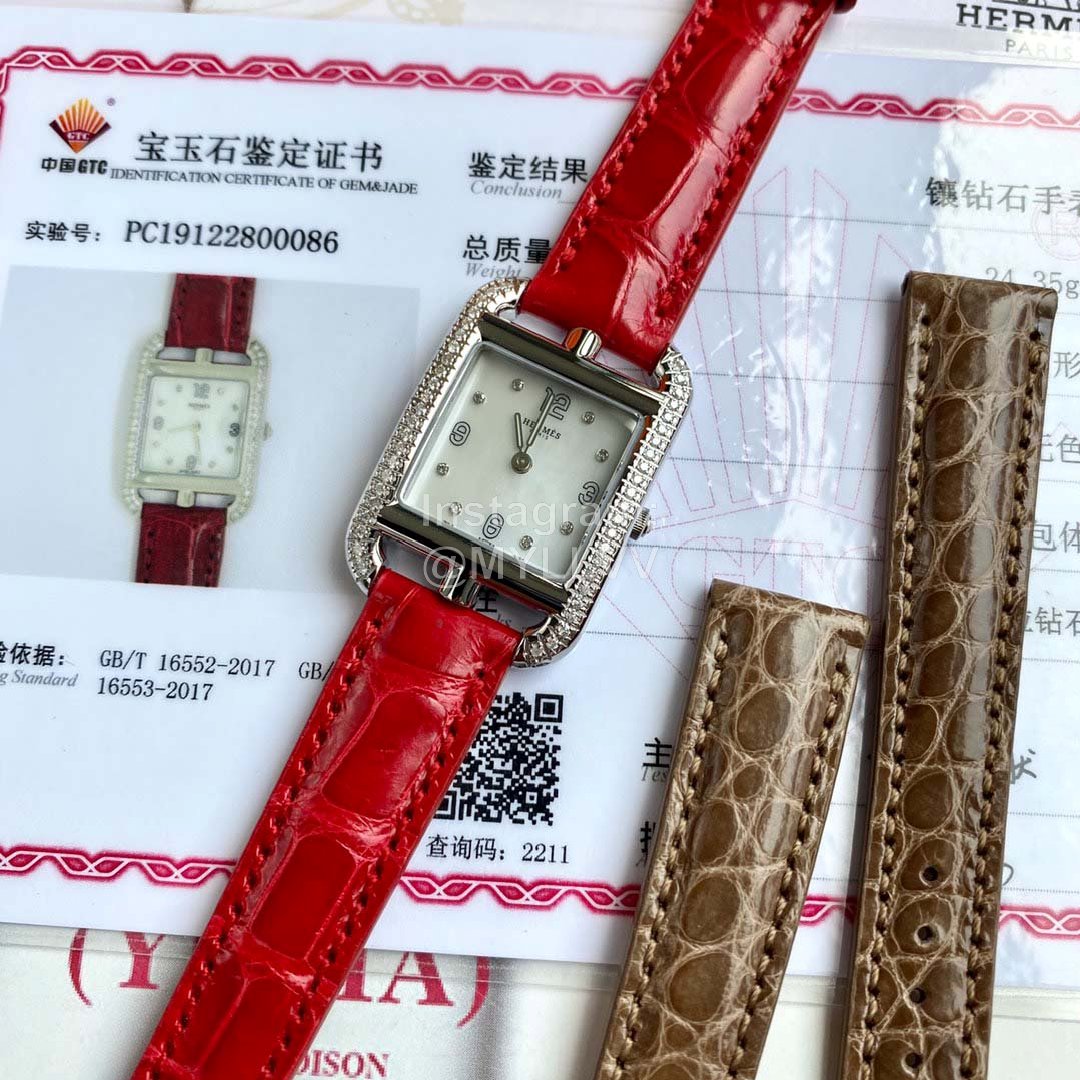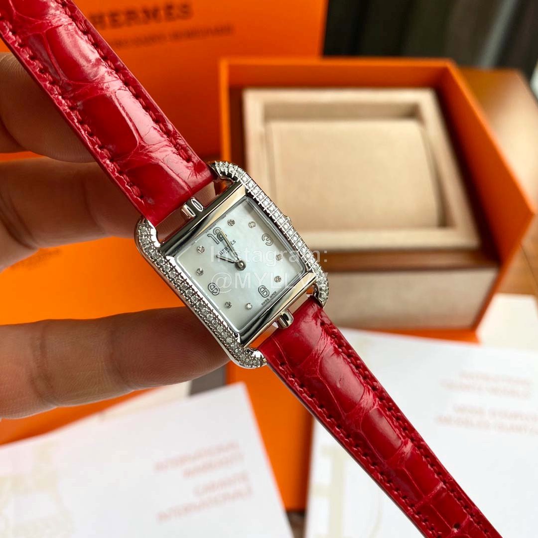 The new model is launched, Hermes Cape Cod series wristwatch; A square dial is embedded in the rectangular frame. The shape of the case and the font of the dial are inspired by the “anchor chain” pattern, which is very special and full of personality. 46 1.2 real diamonds are embedded in water drop shape, 8 1.0 real diamonds are embedded in white natural pearl mother of pearl, and the surface diameter is 2323mm. The original quartz movement of eta in Switzerland is adopted. The watch case adopts imported 316L fine steel, anti dazzling sapphire crystal mirror and American crocodile leather strap! The badge is hand carved by a famous craftsman at the bottom, which is not ordinary laser carving, three-dimensional and full of artistic sense; A very exquisite wrist watch,