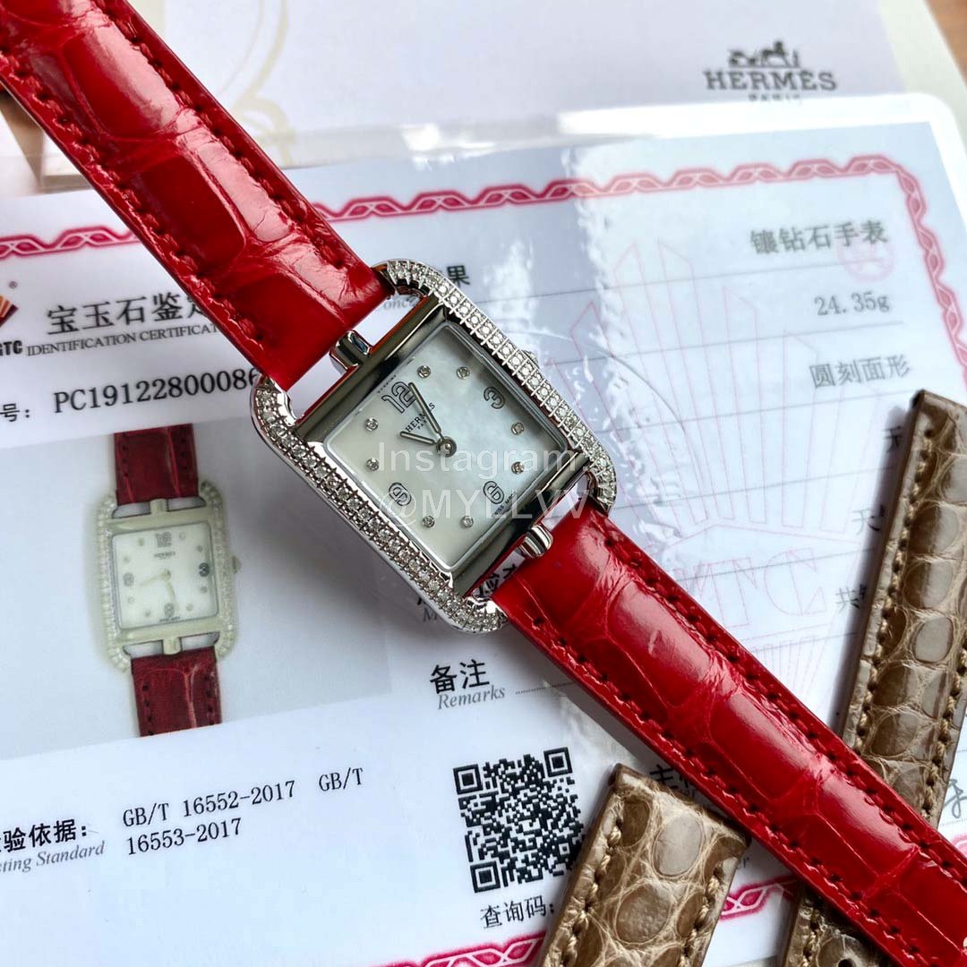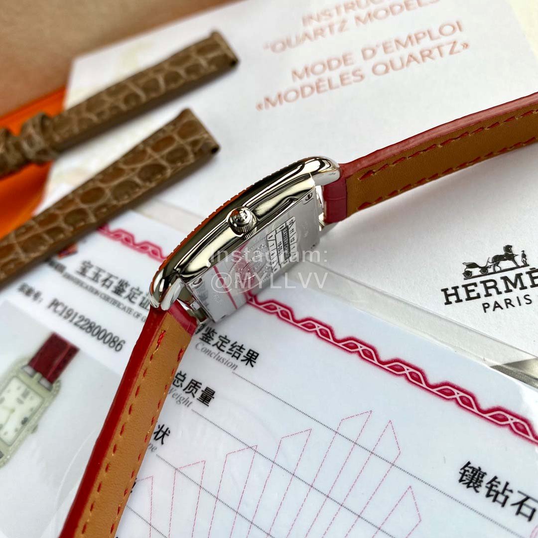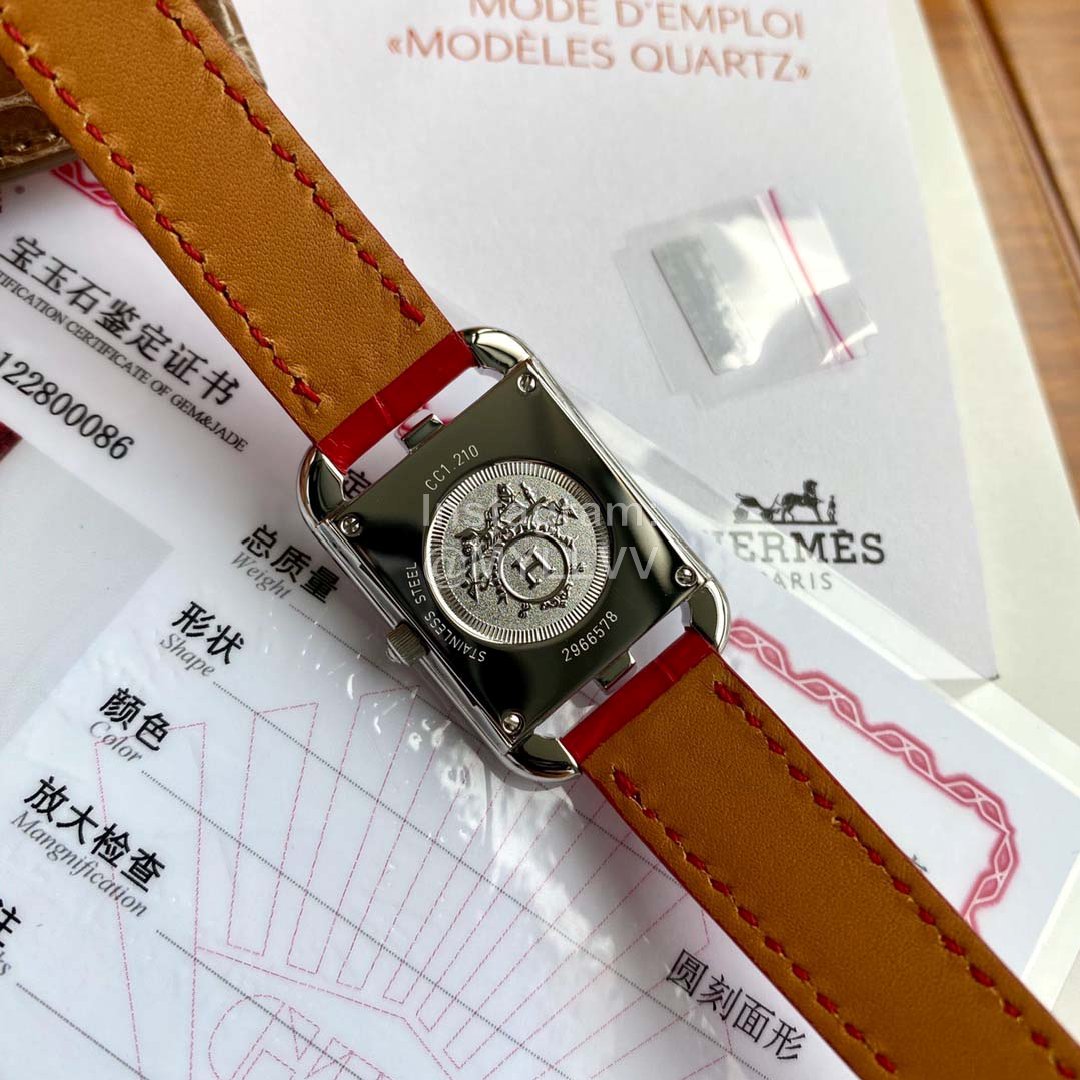 The new model is launched, Hermes Cape Cod series wristwatch; A square dial is embedded in the rectangular frame. The shape of the case and the font of the dial are inspired by the “anchor chain” pattern, which is very special and full of personality. 46 1.2 real diamonds are embedded in water drop shape, 8 1.0 real diamonds are embedded in white natural pearl mother of pearl, and the surface diameter is 2323mm. The original quartz movement of eta in Switzerland is adopted. The watch case adopts imported 316L fine steel, anti dazzling sapphire crystal mirror and American crocodile leather strap! The badge is hand carved by a famous craftsman at the bottom, which is not ordinary laser carving, three-dimensional and full of artistic sense; A very exquisite wrist watch,