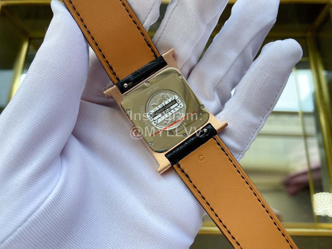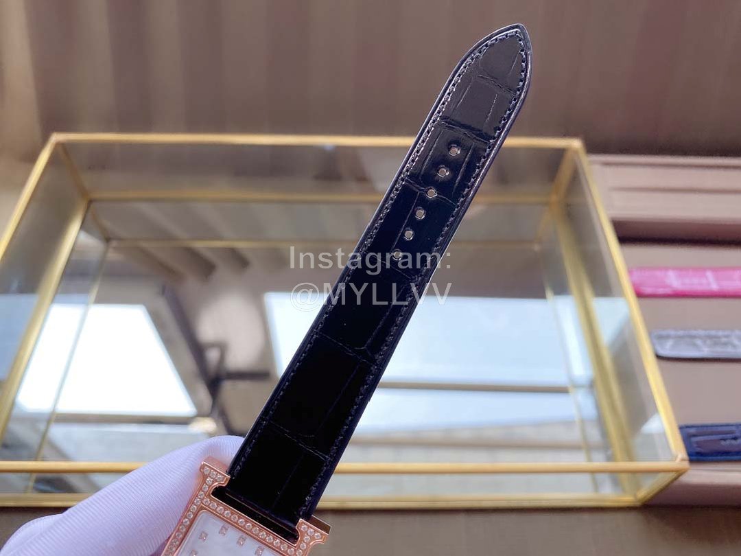 Hermes “heure H” series, the most classic H-shaped case, white natural Fritillaria, is polished by hand. It really has no resistance to this kind of square dial watch. 316 fine steel case is exquisitely polished with “H” shape, smooth and elegant lines, full sense of design, highlighting temperament and intelligence. 100% famous craftsman at the bottom cover manually carves badges, non ordinary laser engraving, anti vertigo sapphire mirror inlay, and the mirror inlay is extremely complex. The quartz movement imported from Switzerland, the original American crocodile leather strap, accessories, movement and process take two years, Professional watch players can appreciate it from the details! Herm è s has always been exquisite handmade and aristocratic design style, and its design concept follows a conservative and noble principle from the overall to the details