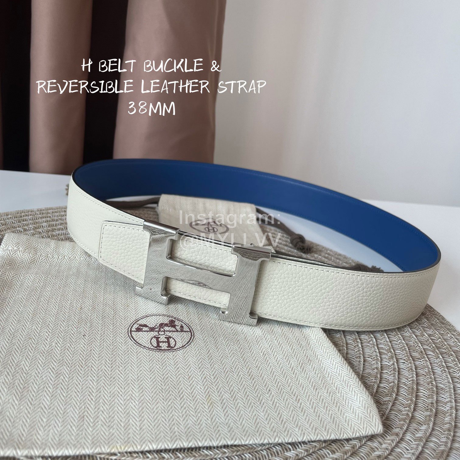 Hermes Double Side Calf Leather Silver H Buckle 38mm Belt Blue