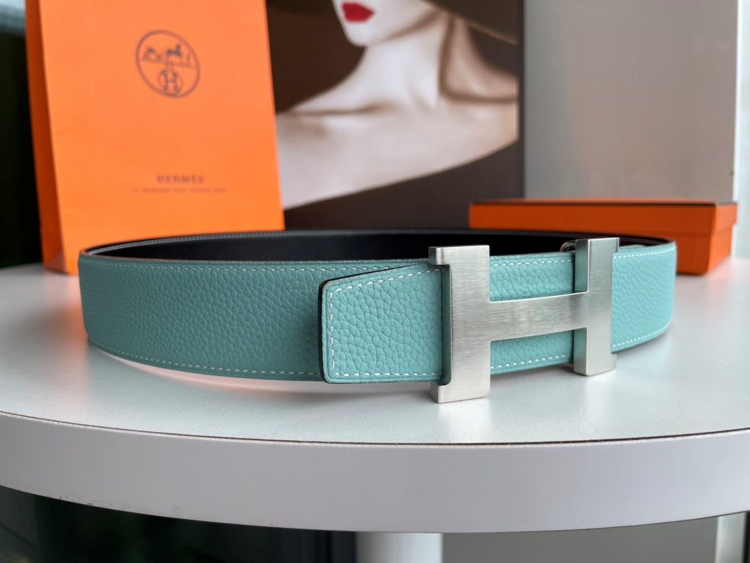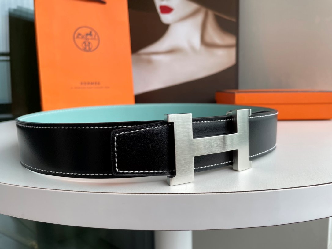 Hermes Fashion Double Side Calf Leather Silver H Buckle 38mm Belt
