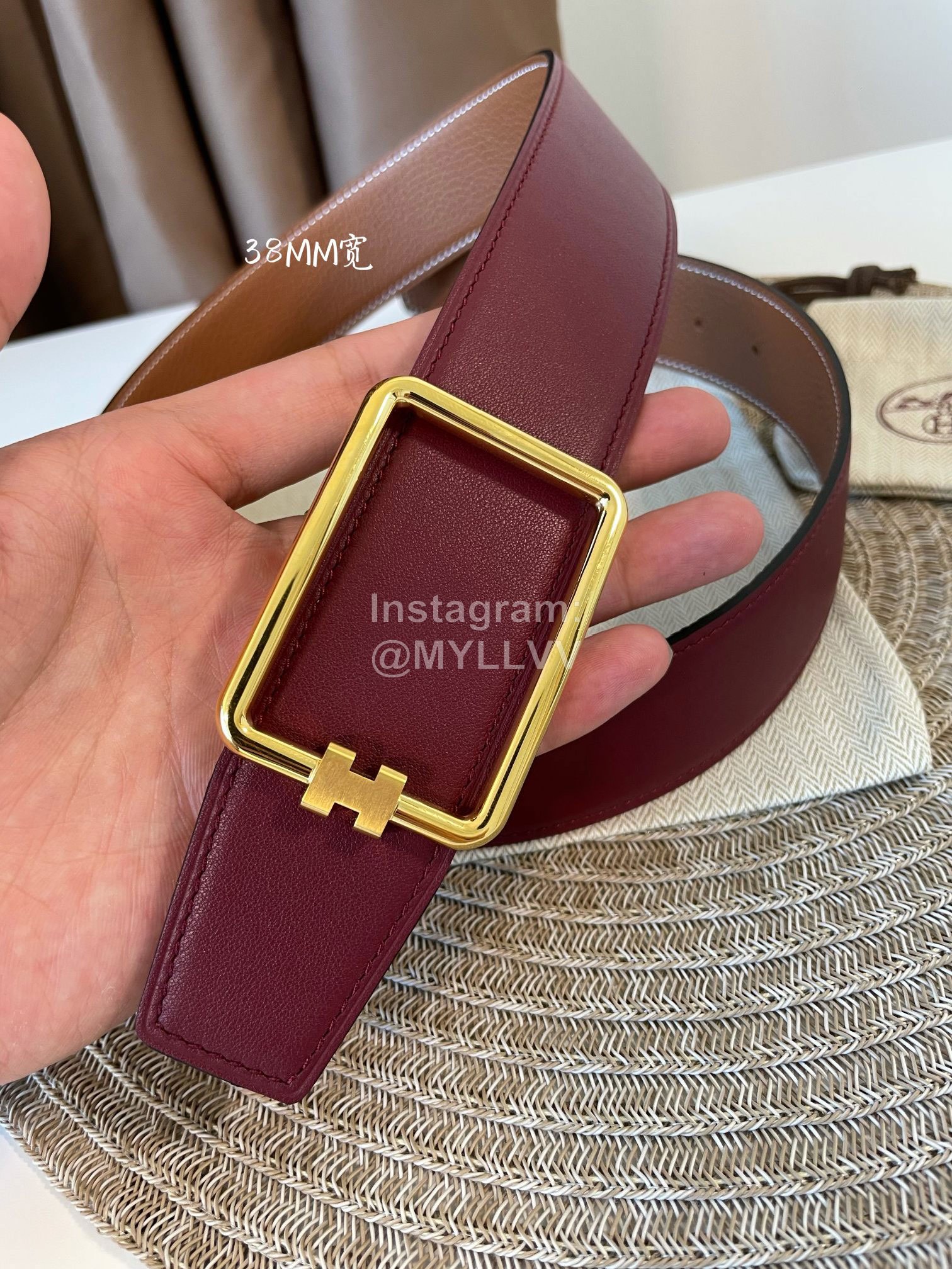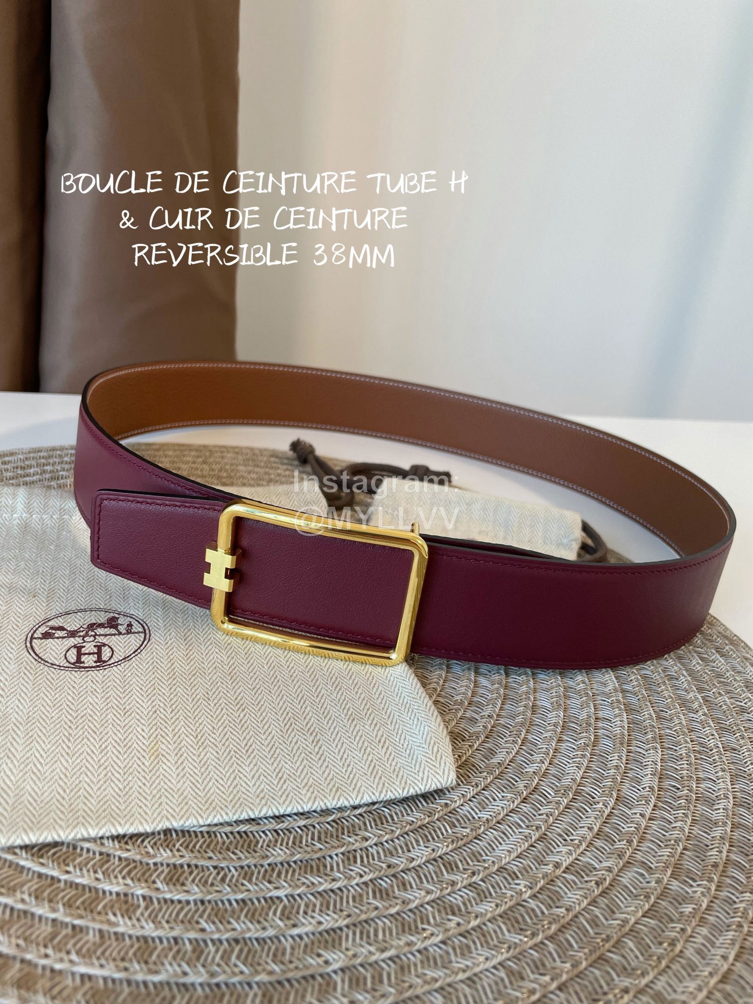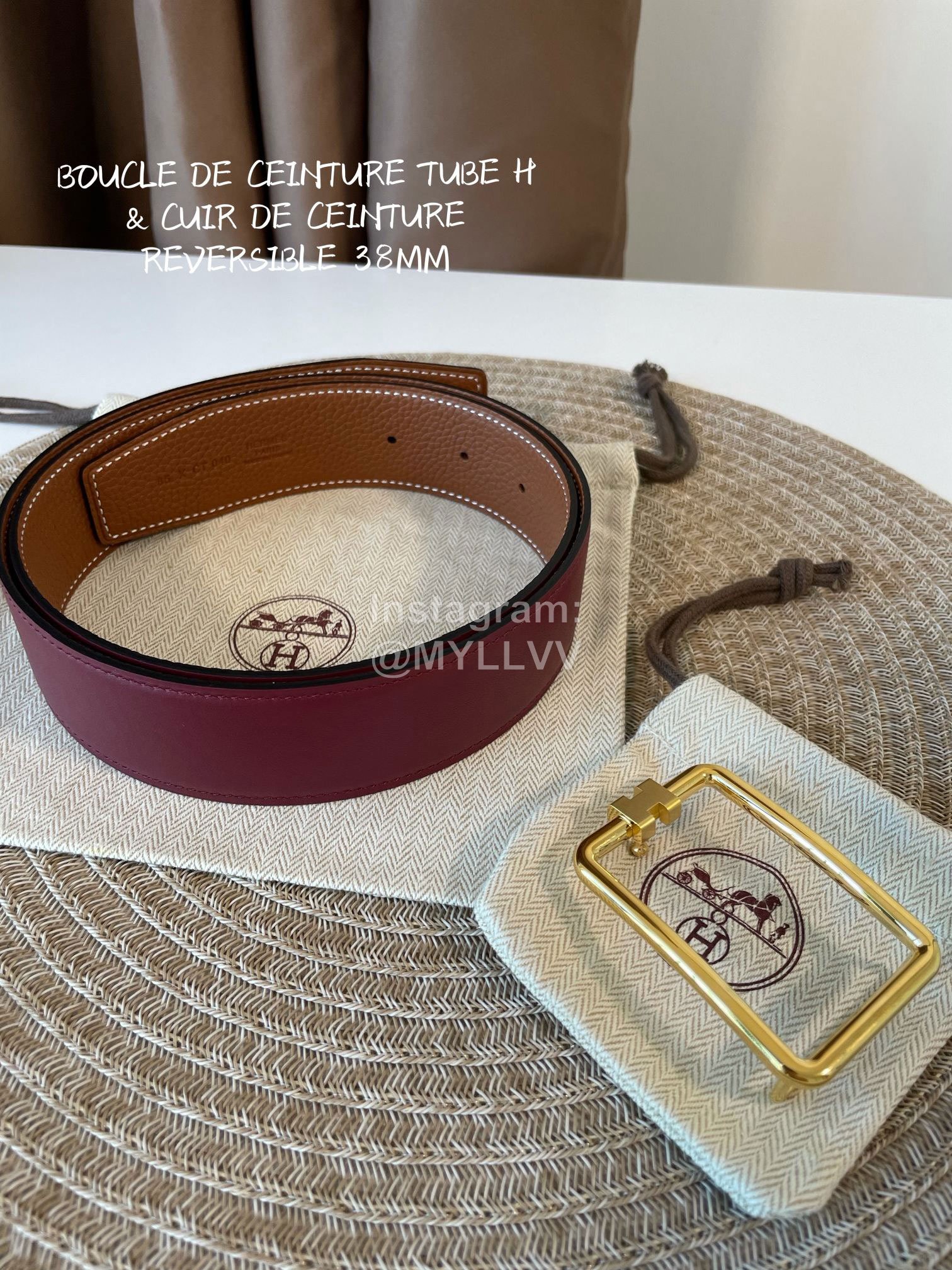 Hermes Fashion Leather Gold Buckle Reversible Strap 38mm Wine Red