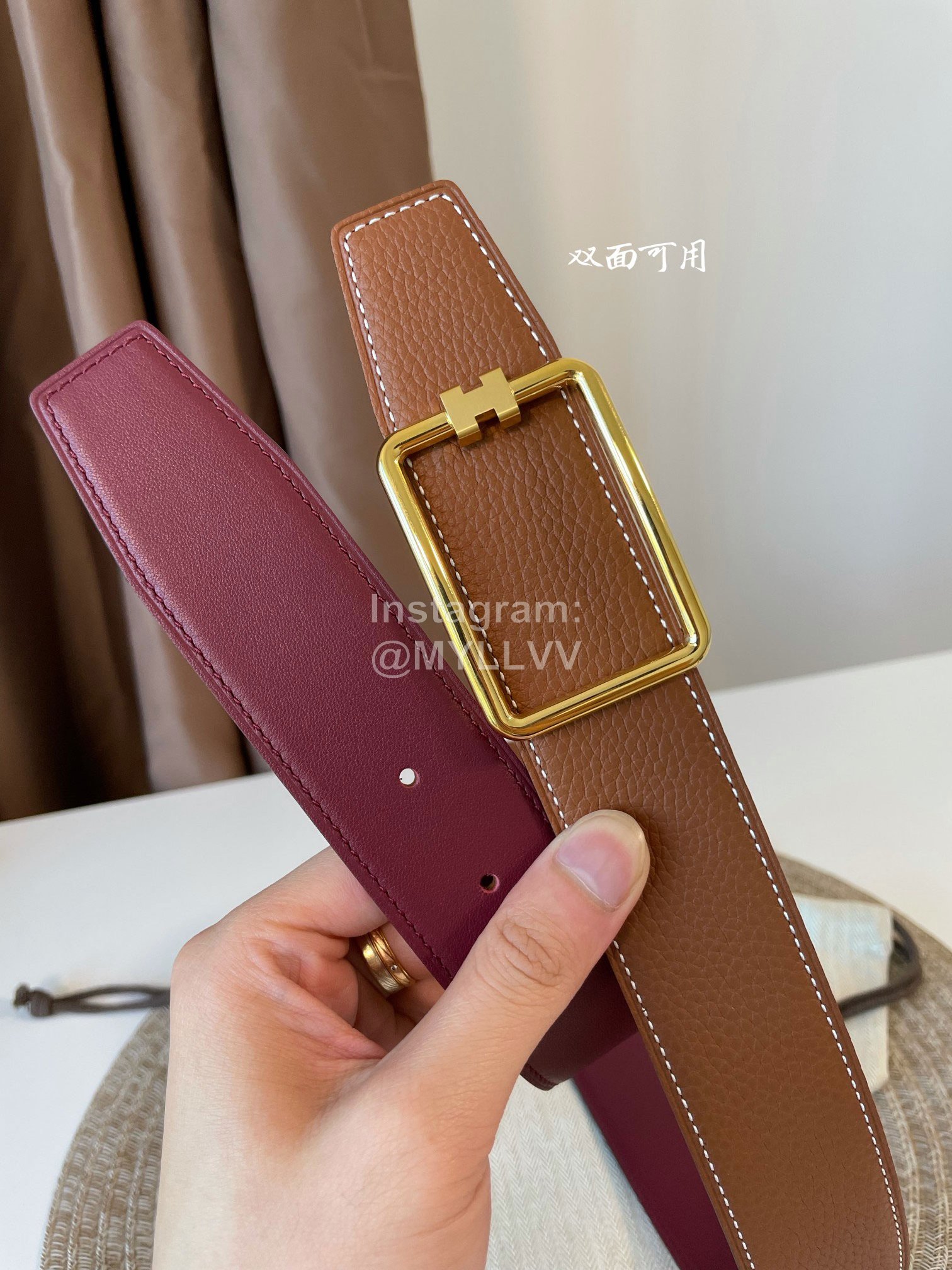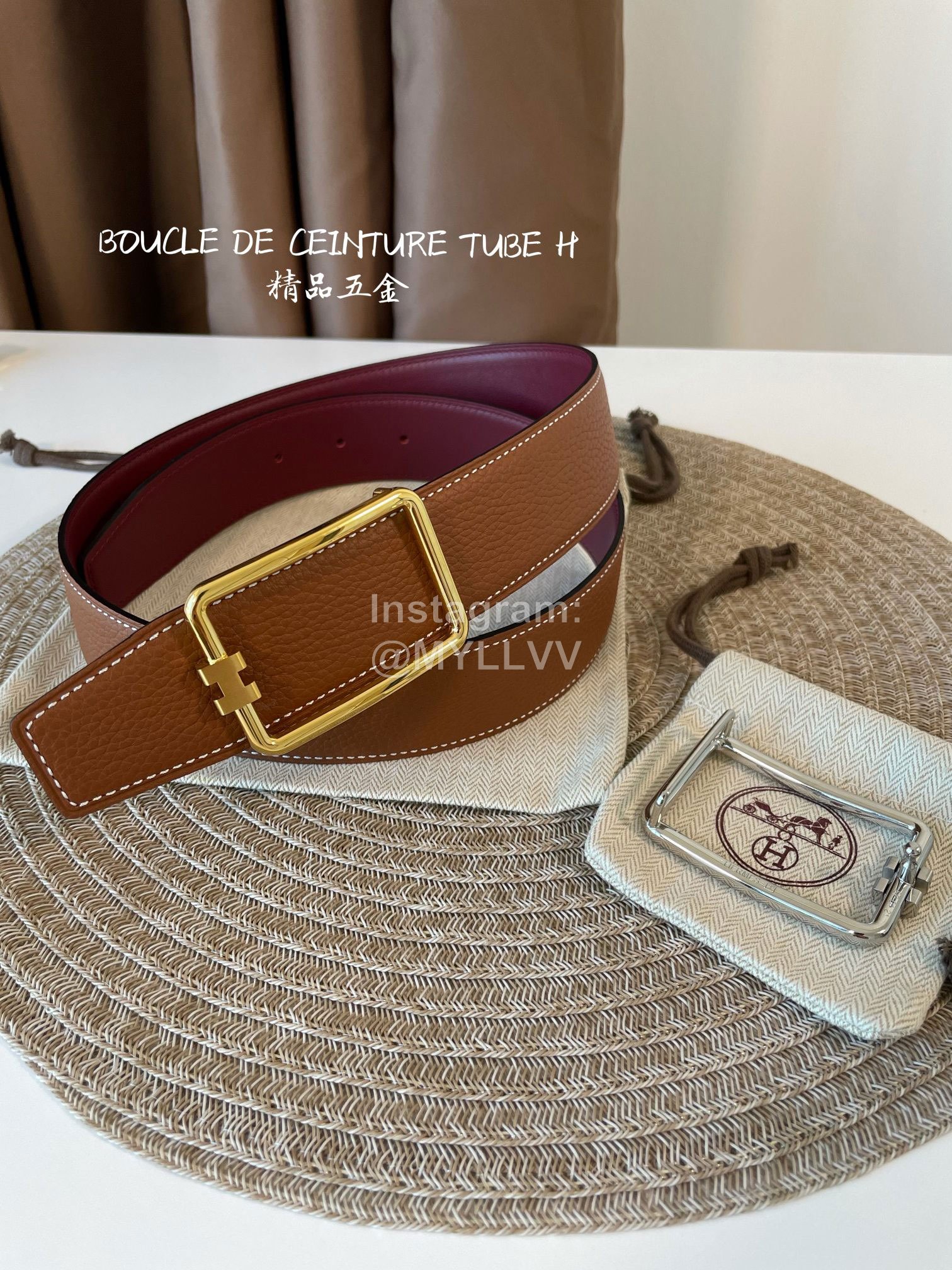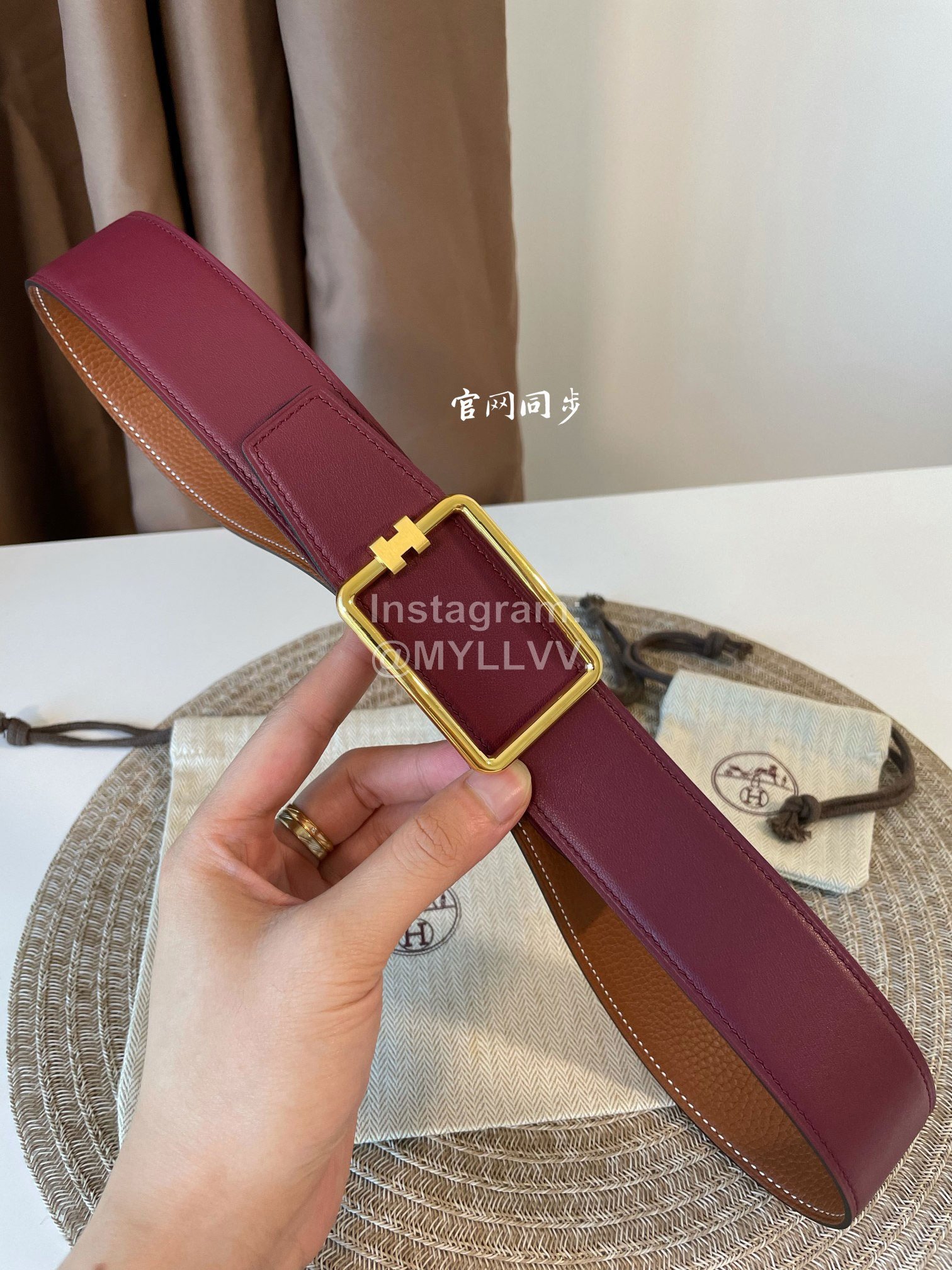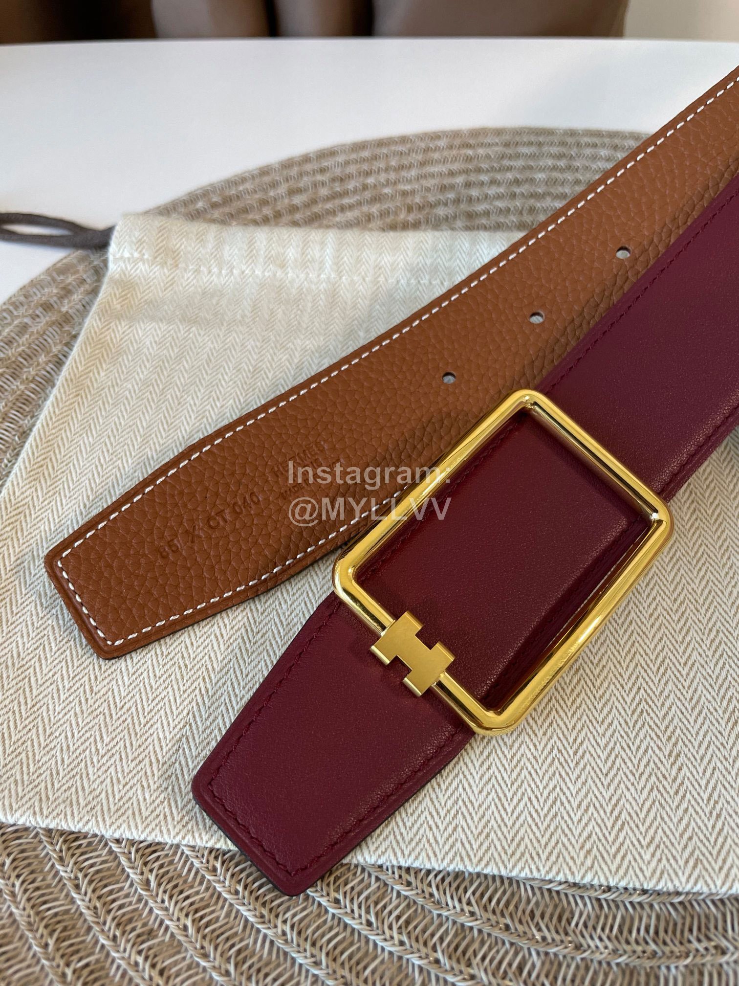 Hermes Fashion Leather Gold Buckle Reversible Strap 38mm Wine Red