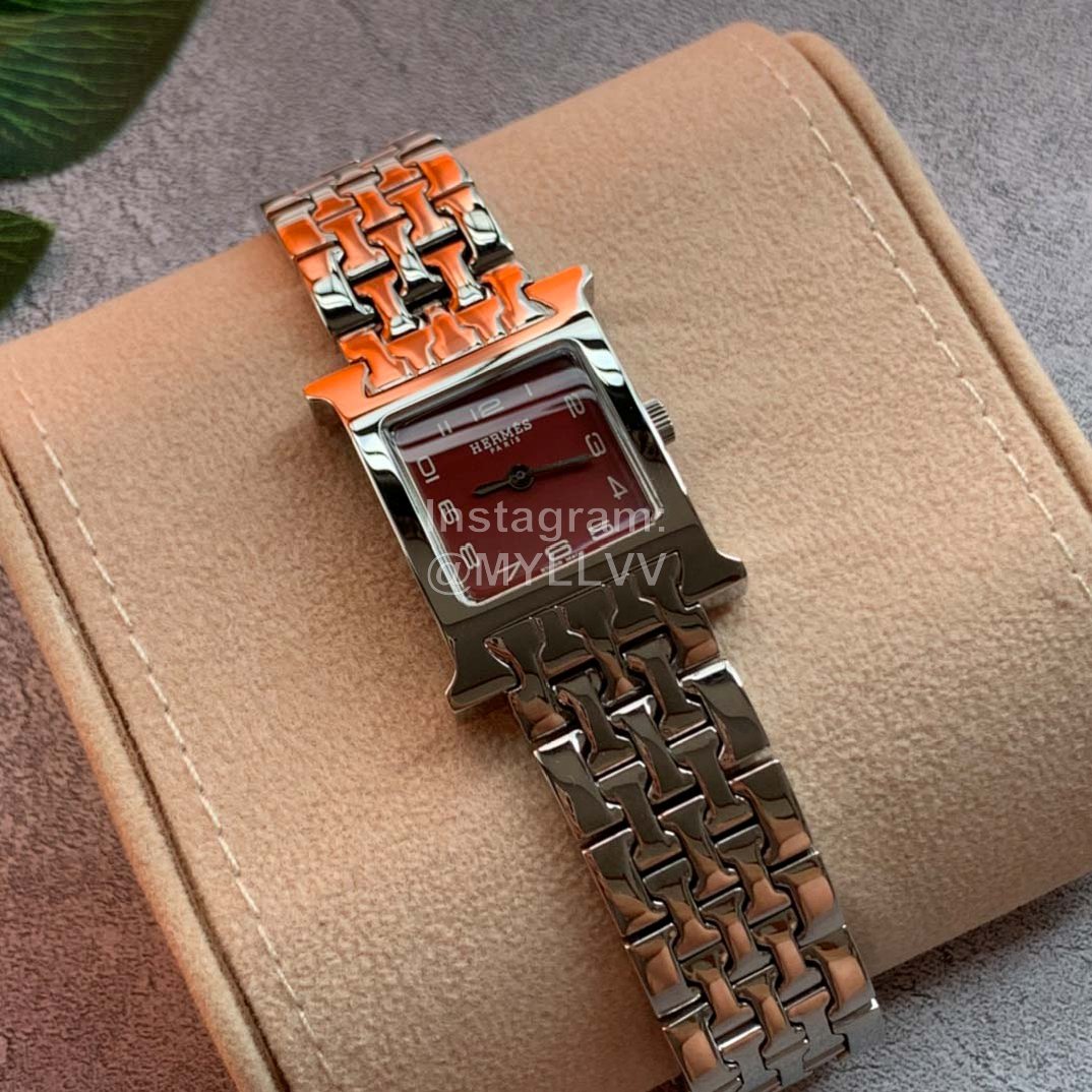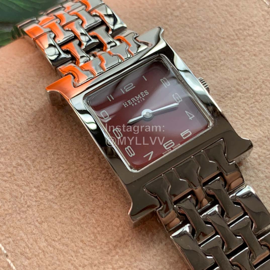Hermes Fine Steel Watch Chain Square Dial Watch