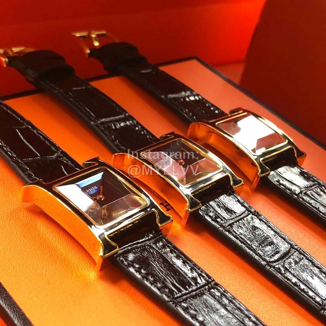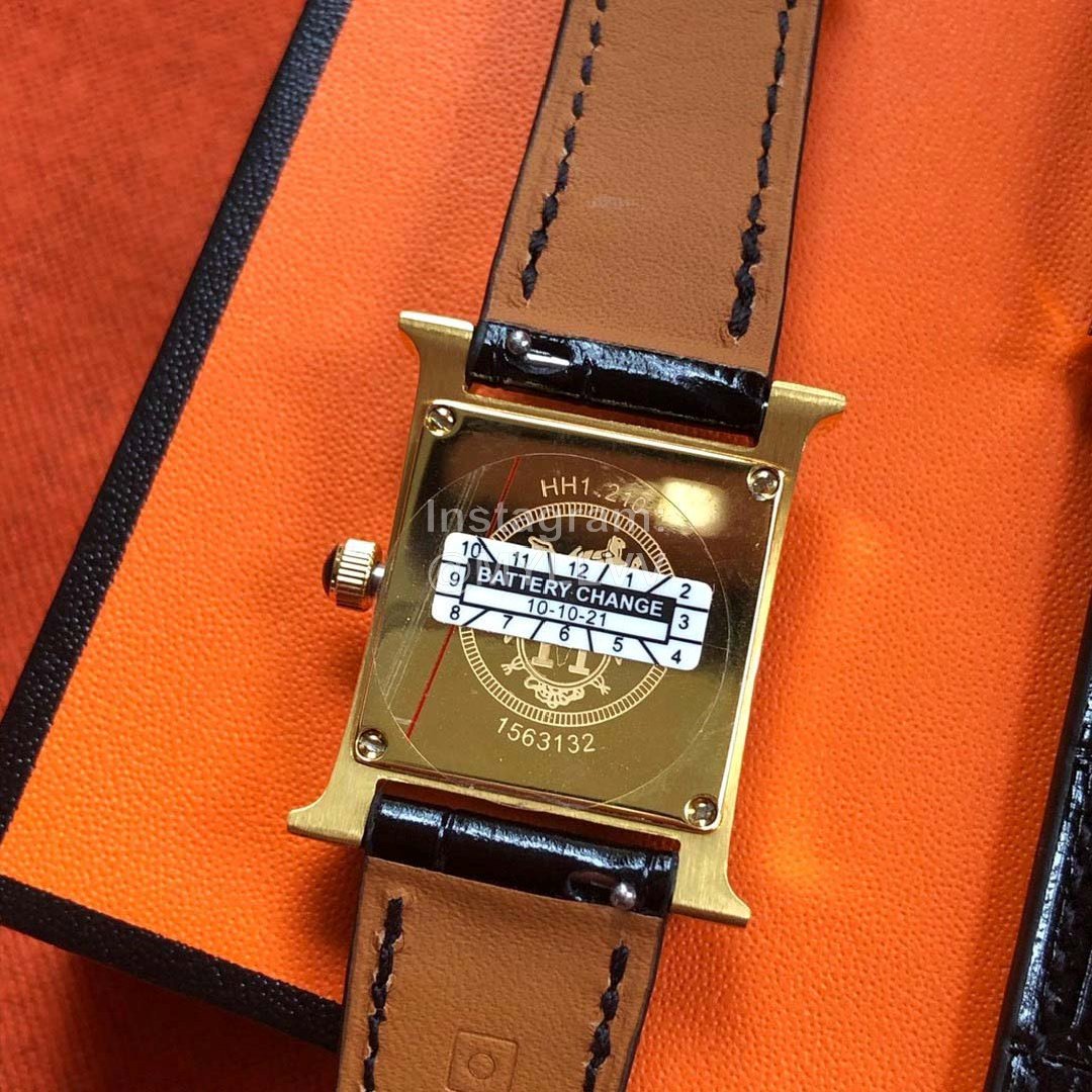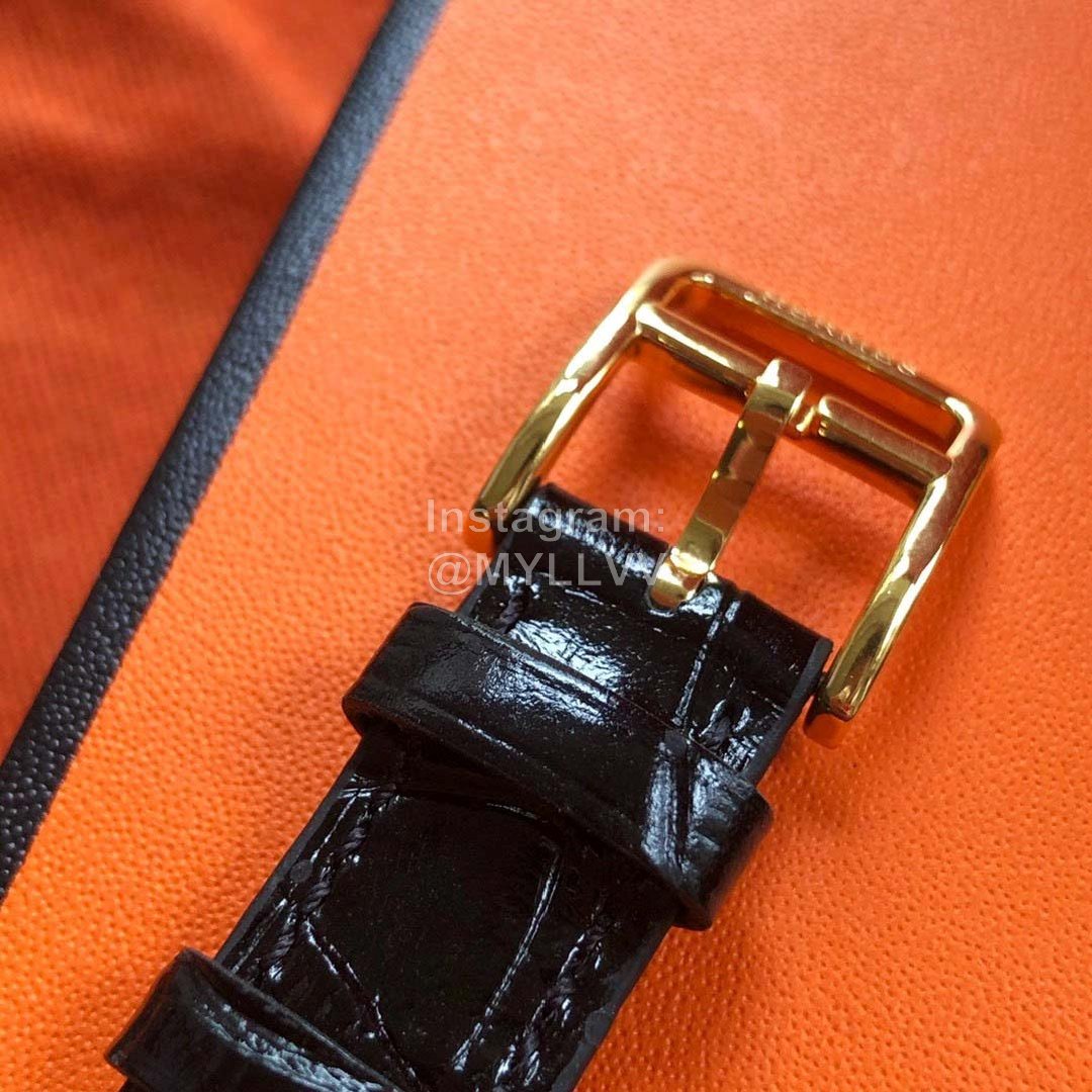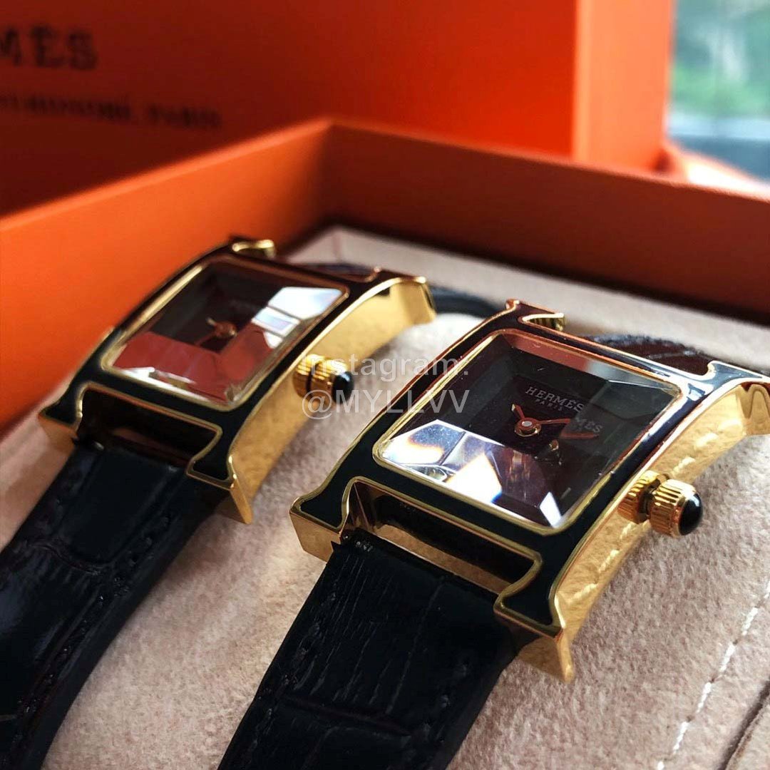Hermes launched a new heure h wristwatch, which adopts a deep black lacquer dial, light and shadow anti glare yellow faceted glass, with a diameter of 21mm. It is an imported original gold quartz movement and matched with a new black imported calfskin strap, which is low-key but charming, setting off the beauty of the watch.