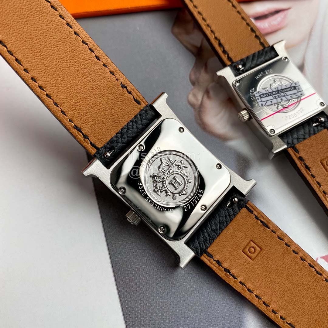 The new model starts with Hermes heure H series, equipped with Swiss ETA original quartz movement, the case is made of imported 316L fine steel, and the dial size is 2626mm large and 21mm small; Barenia calf leather strap, soft, delicate and shiny; White pad printed Arabic numeral time scale and rhodium plated pointer, anti dazzling sapphire crystal mirror.