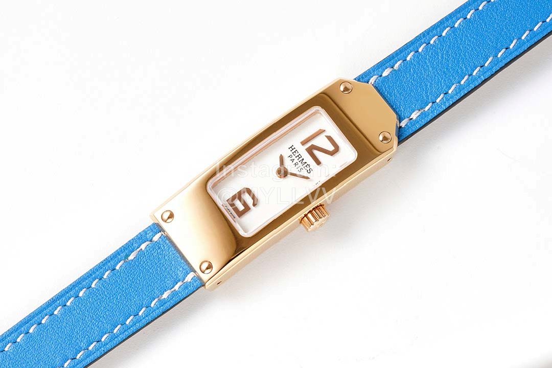 Hermes Kelly 2 Series Sapphire Crystal Glass Blue Leather Strap Watch