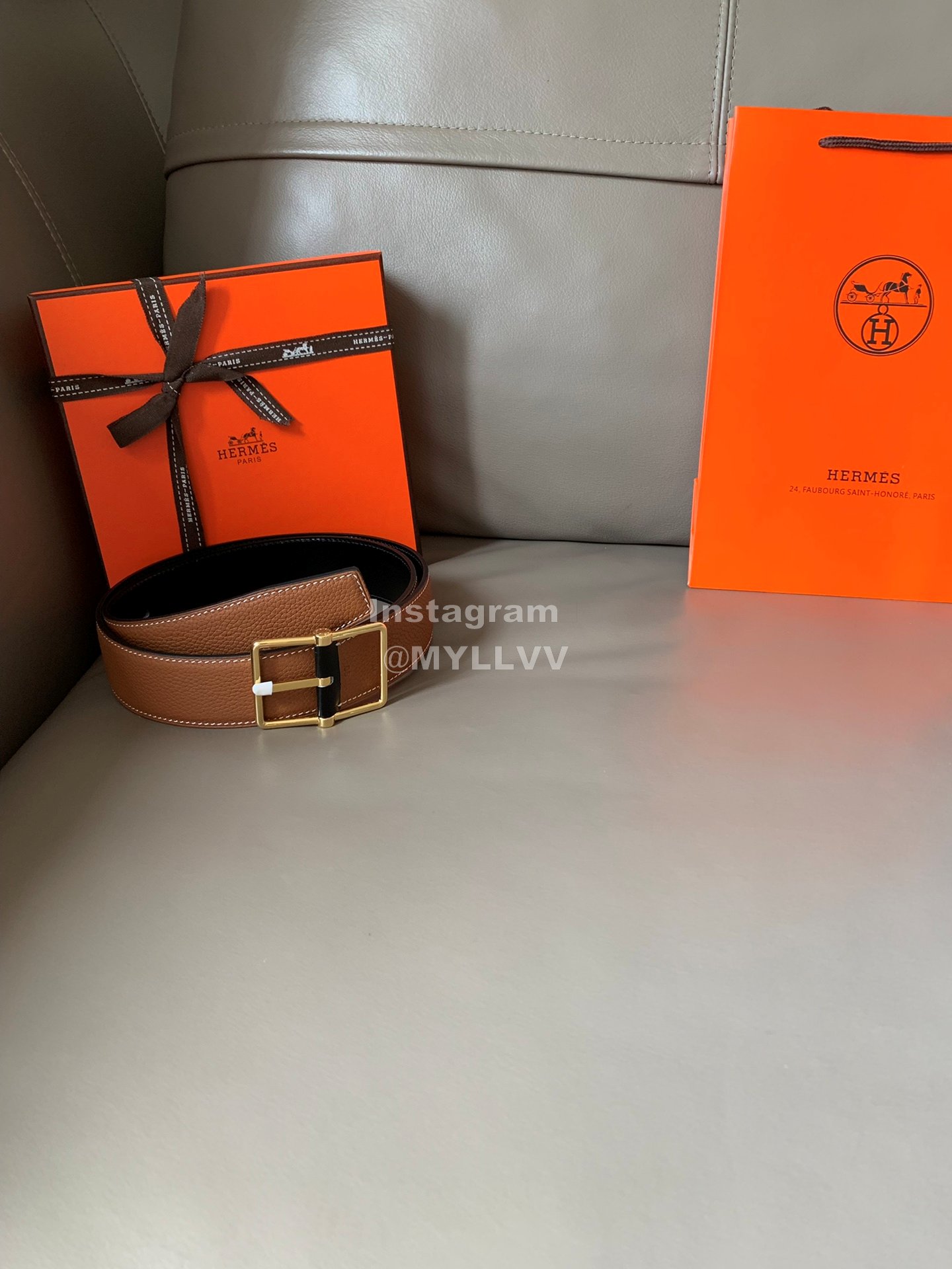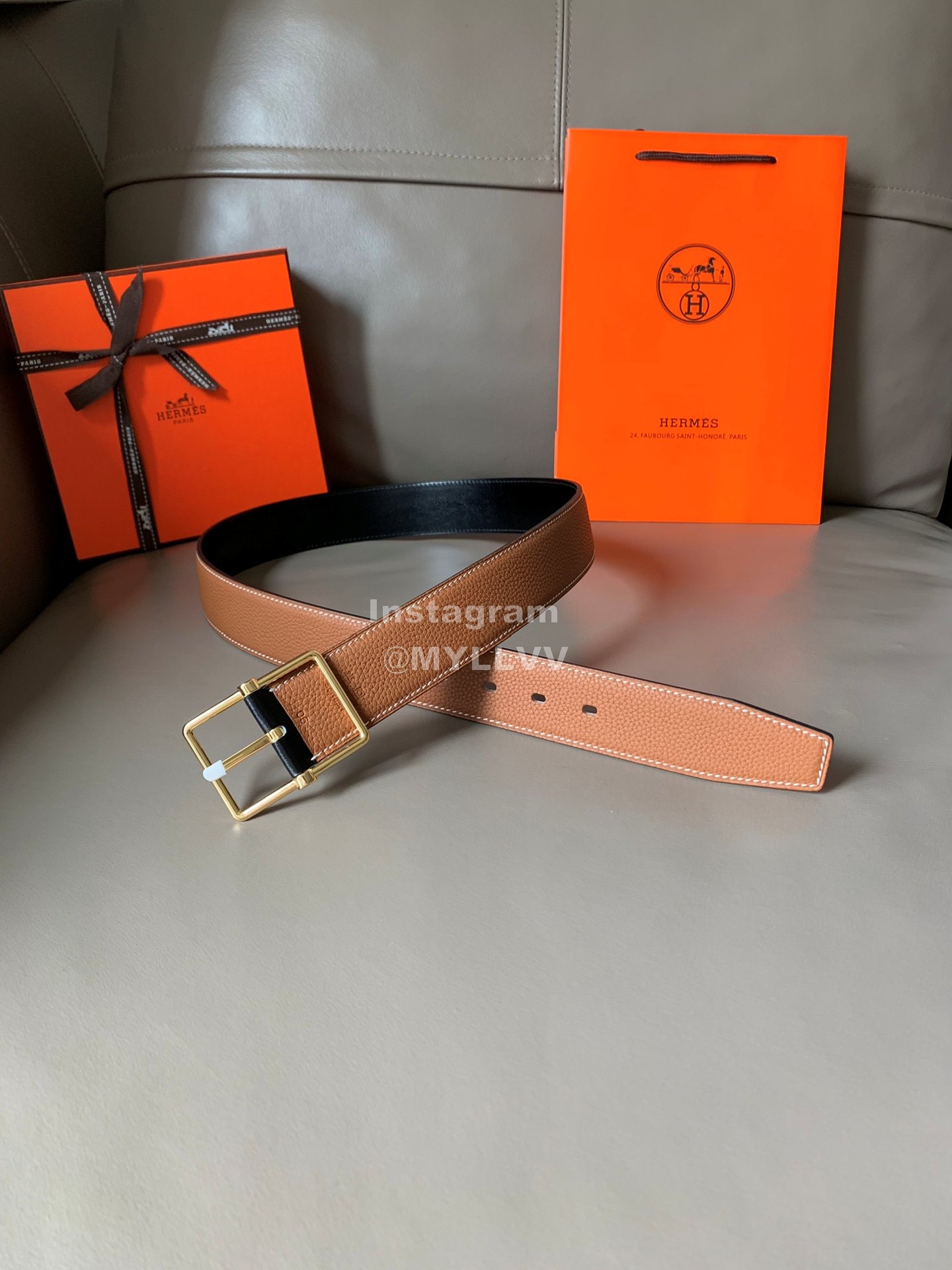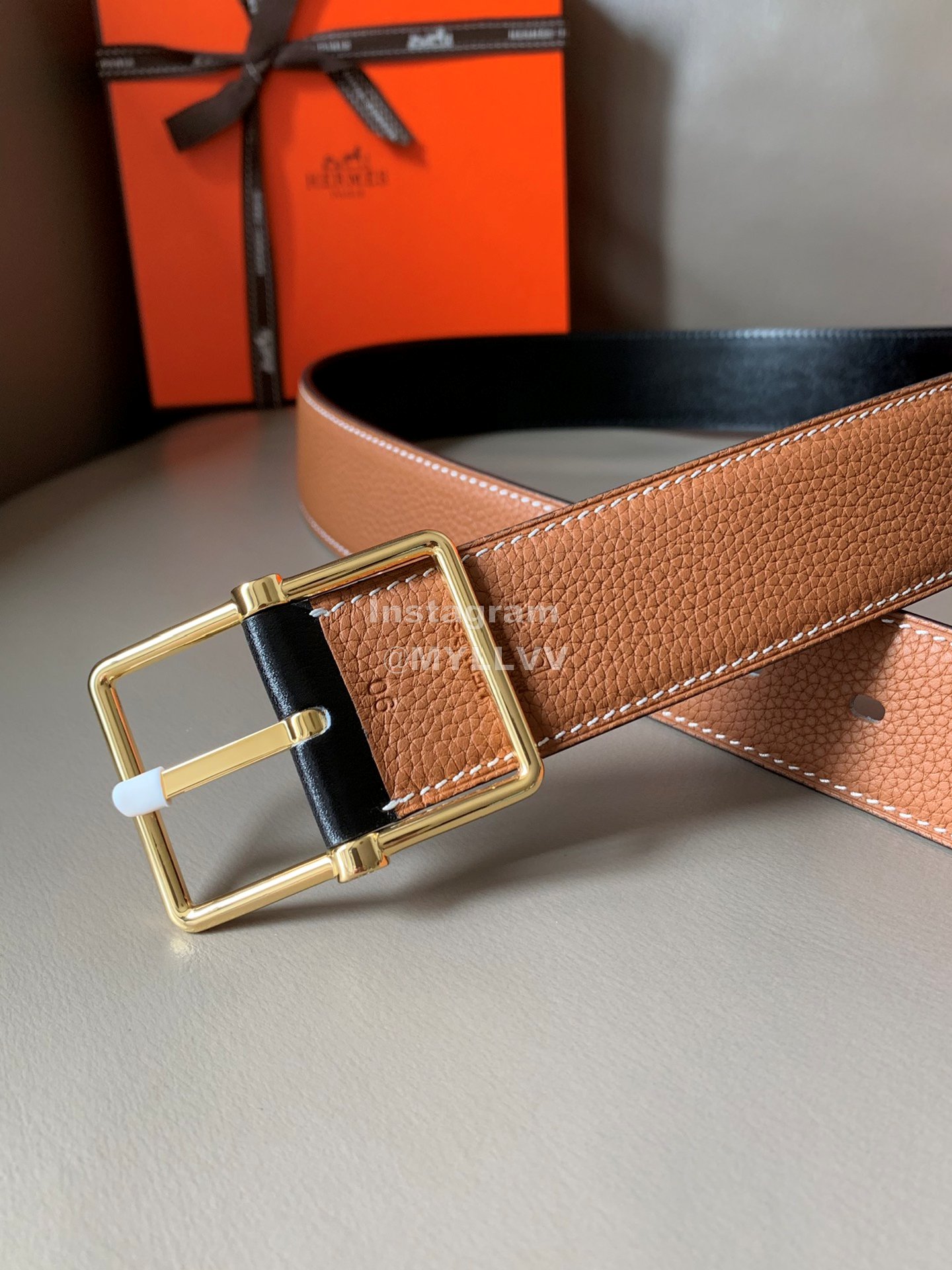 Hermes Saddle Calf Leather Palladium Plated Gold Pin Buckle 38mm Belt Brown