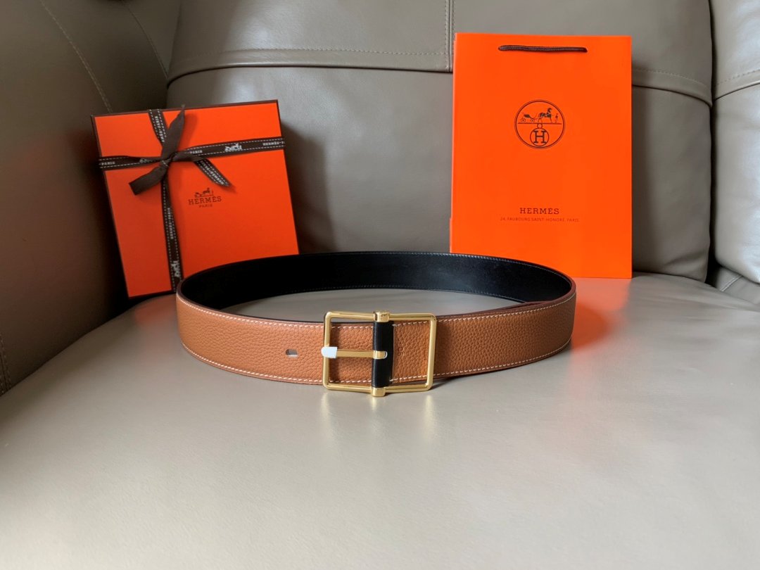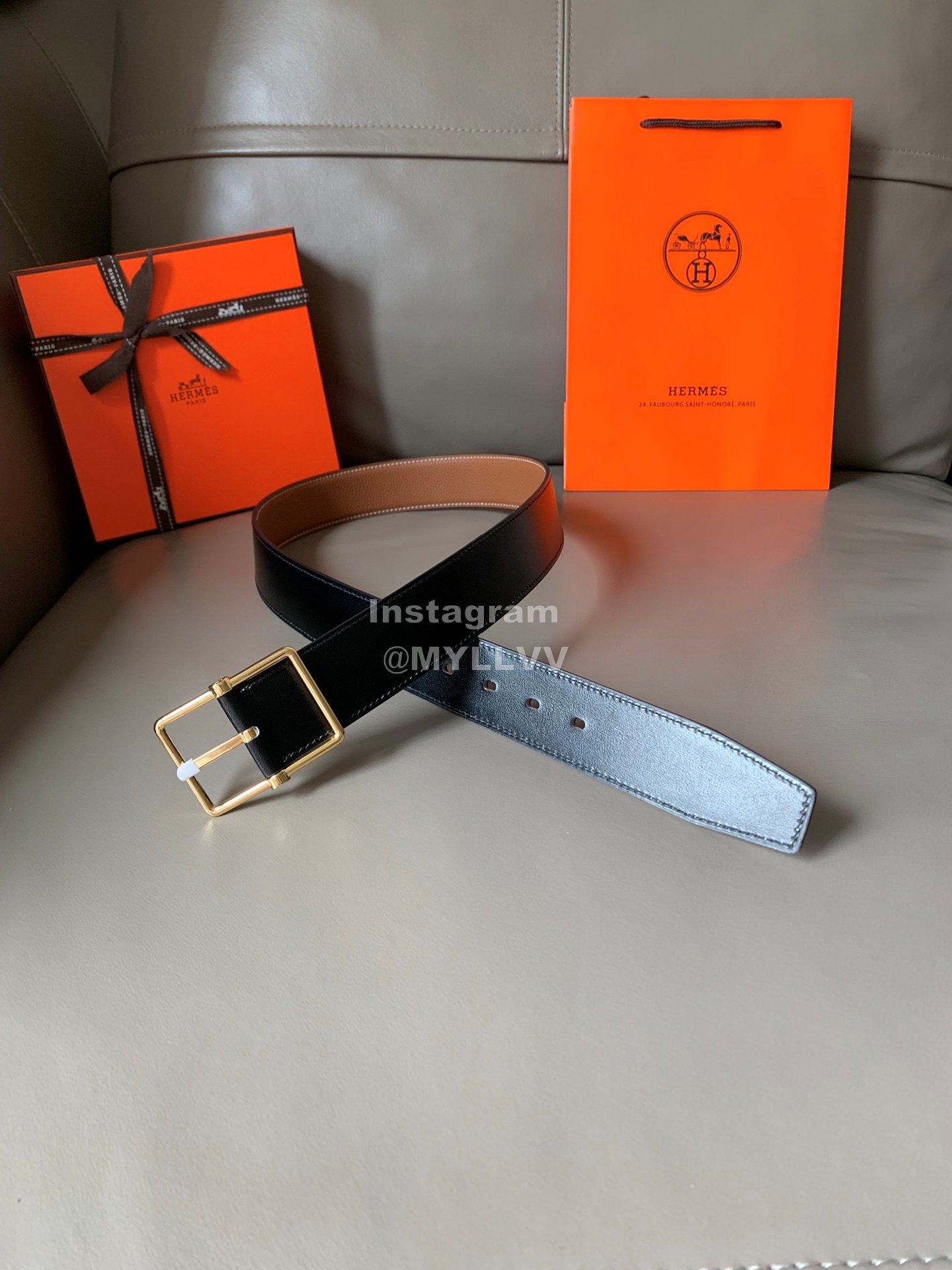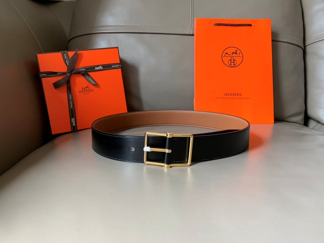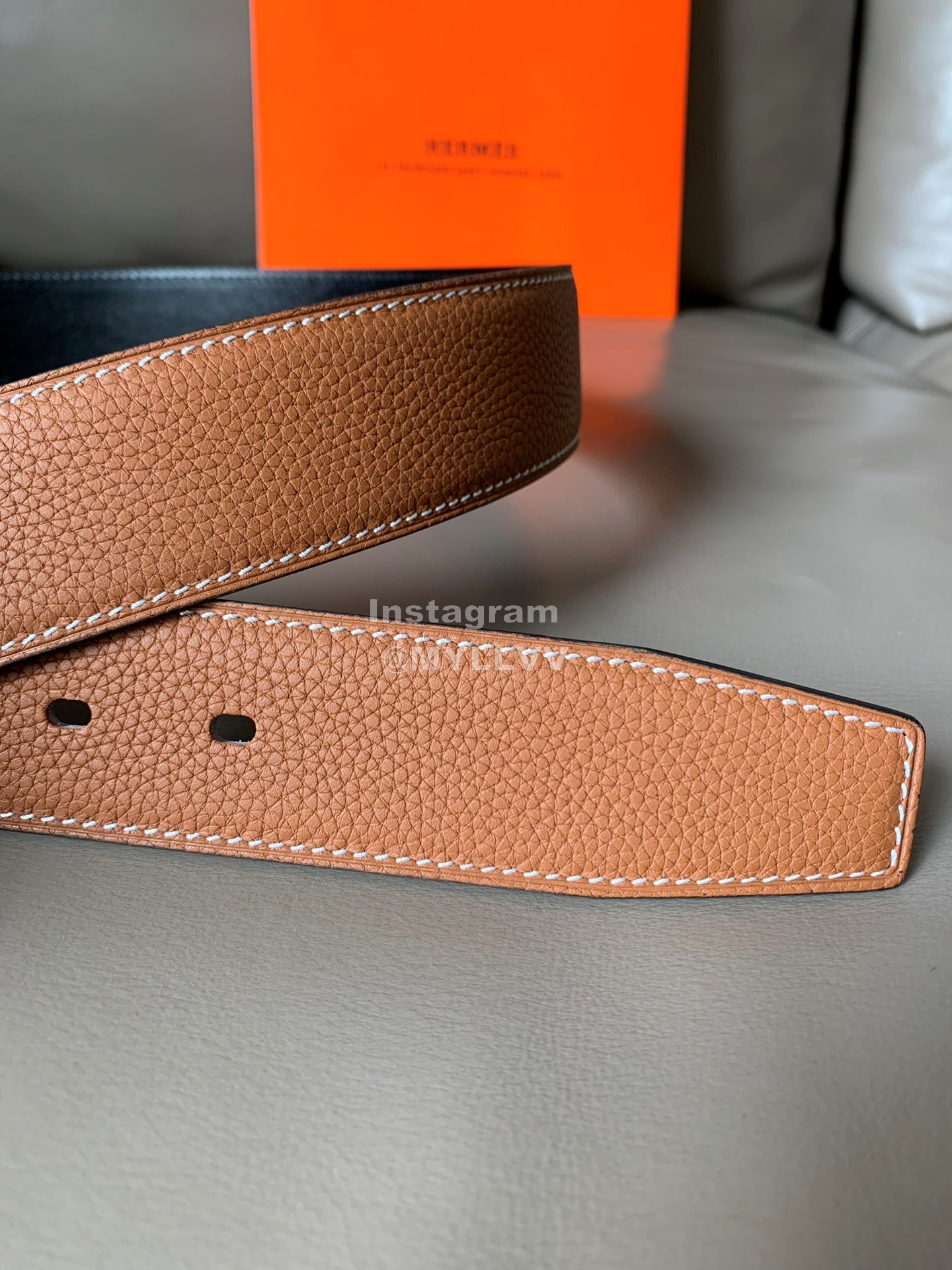 Hermes Saddle Calf Leather Palladium Plated Gold Pin Buckle 38mm Belt Brown