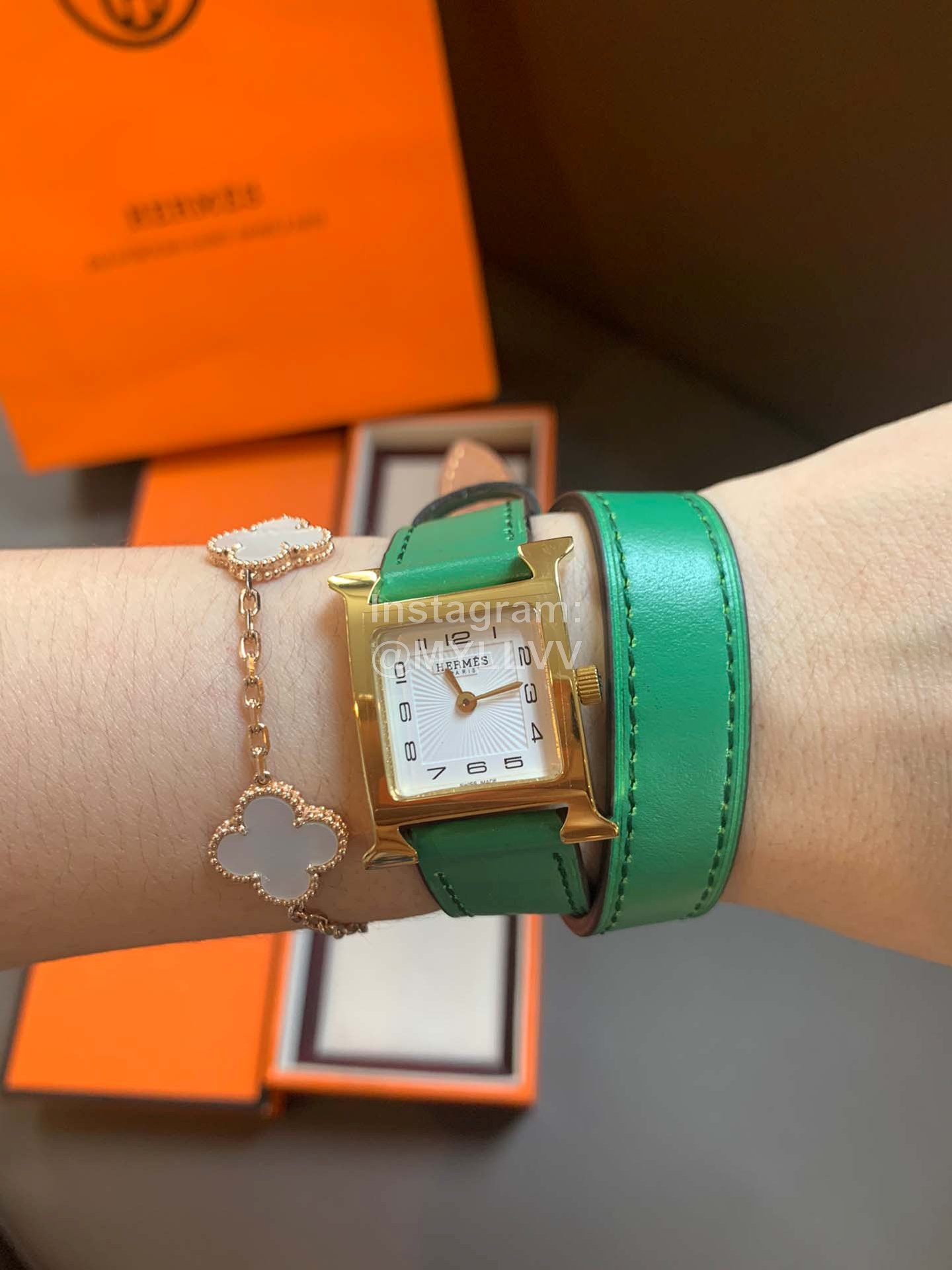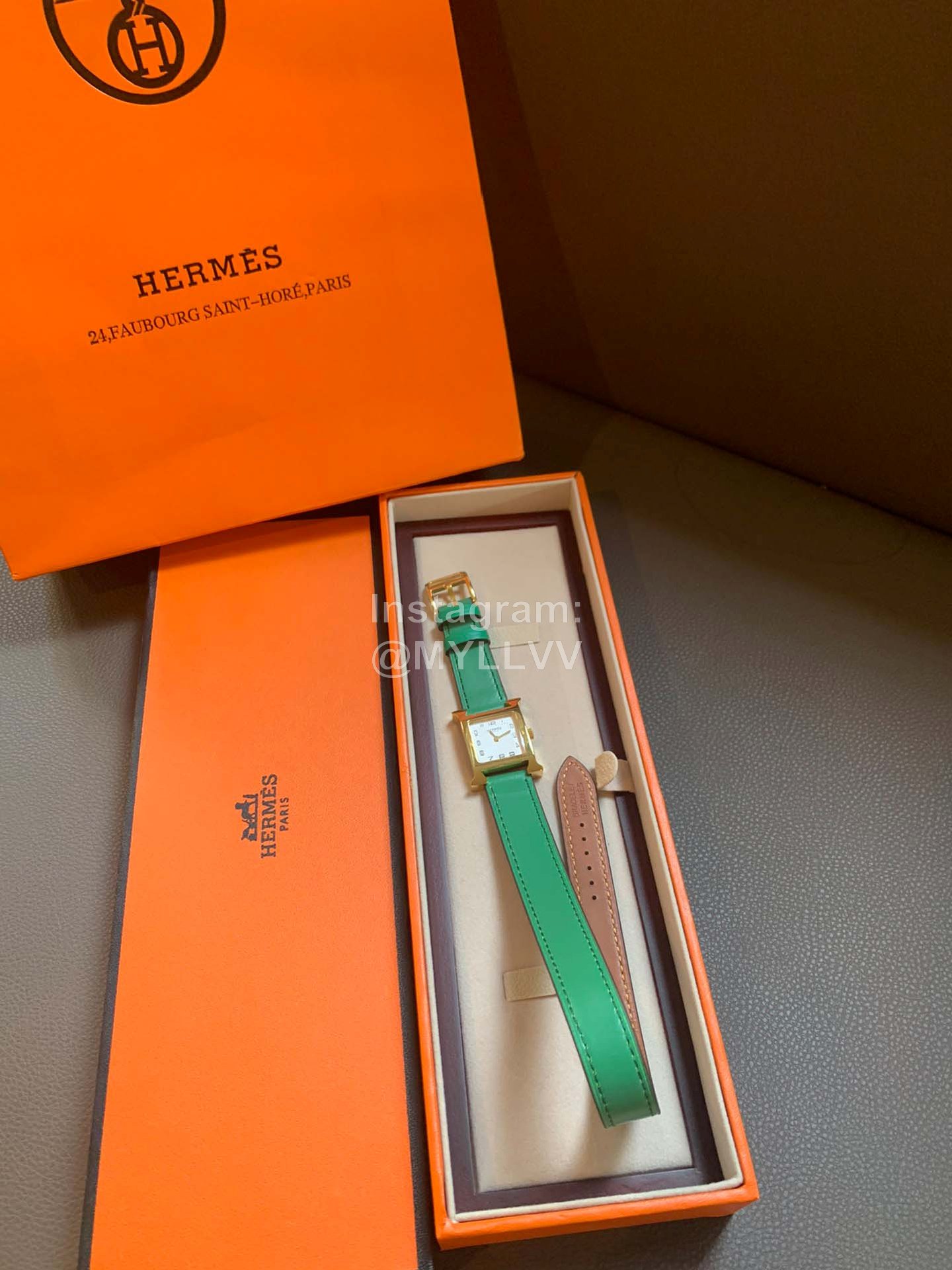 Hermes heure H series was launched simultaneously at DFS global duty-free shop in Hong Kong in 2021. The bright color strap surrounds the unique “H” case. The digital time scale and Pearl Fritillaria dial are additionally inlaid with 11 diamonds, Swiss quartz original gold movement, small 21mm, Italian pure handmade calf leather strap. The classic H shape is fashionable and versatile, with good starting temperament