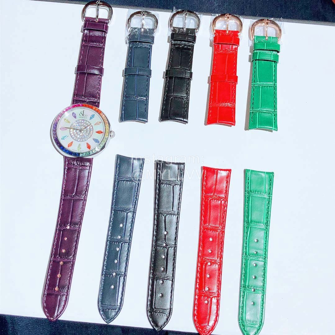 Italian calfskin. There are black, purple, green, bright red and dark blue. Five colors are as versatile as you want.