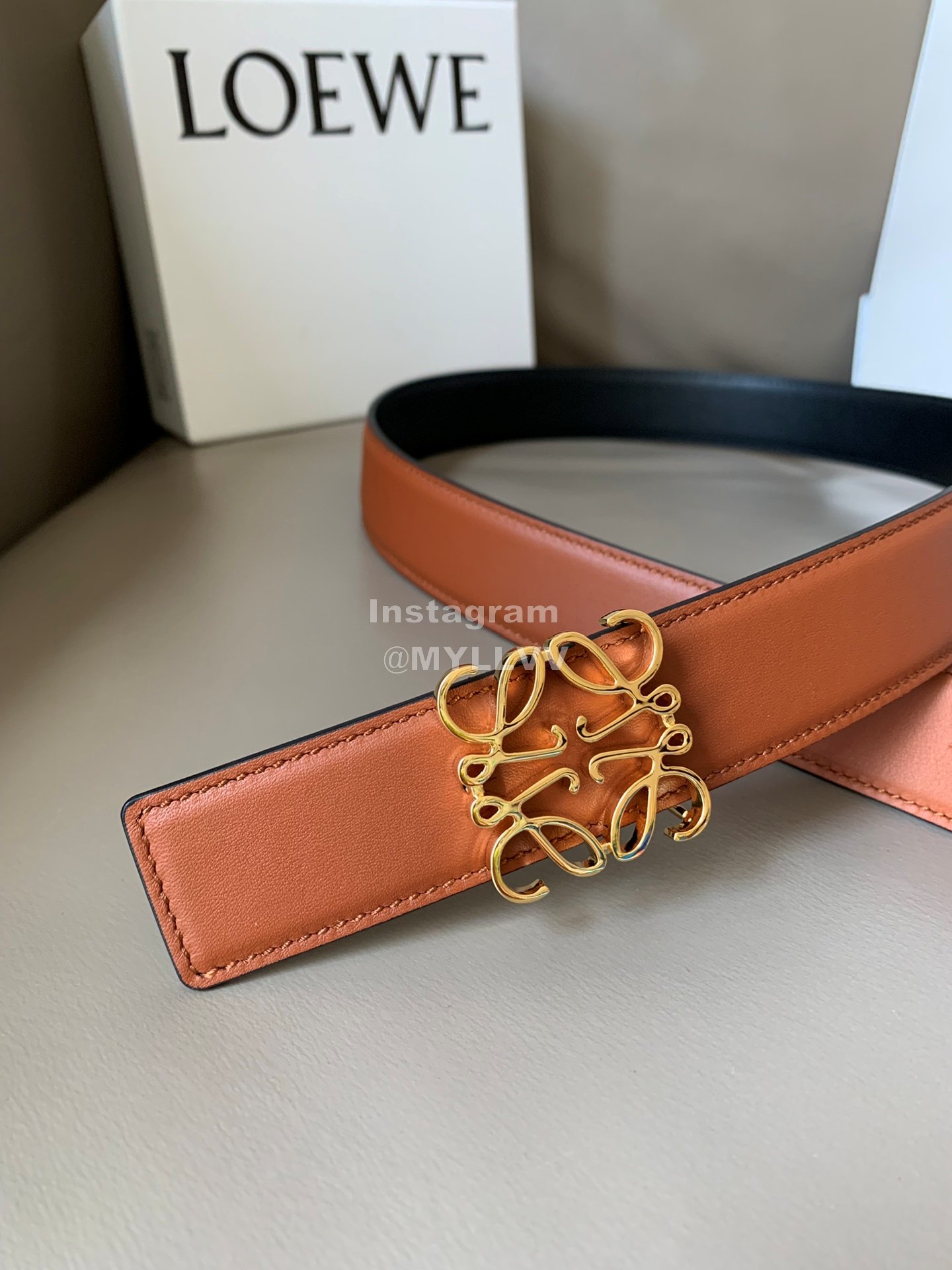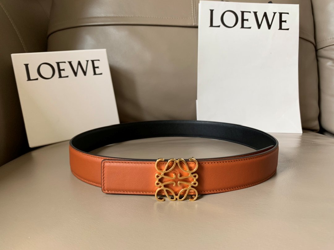 Loewe Soft Leather Gold Anagram Buckle 32mm Belts Brown