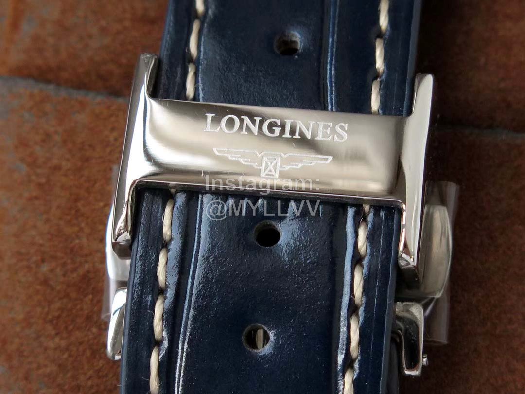 Italian calfskin strap with Longines classic butterfly style fine steel buckle.