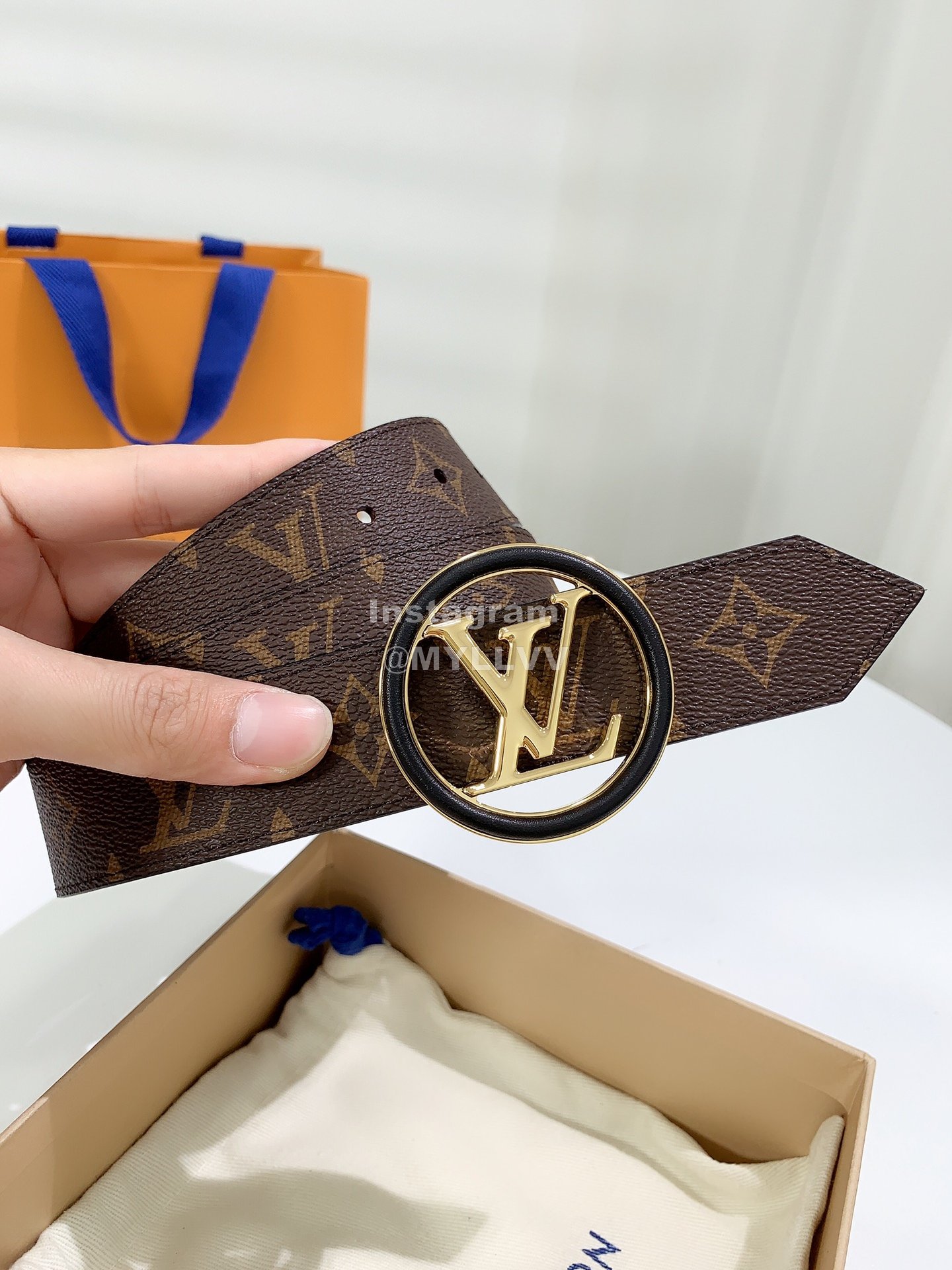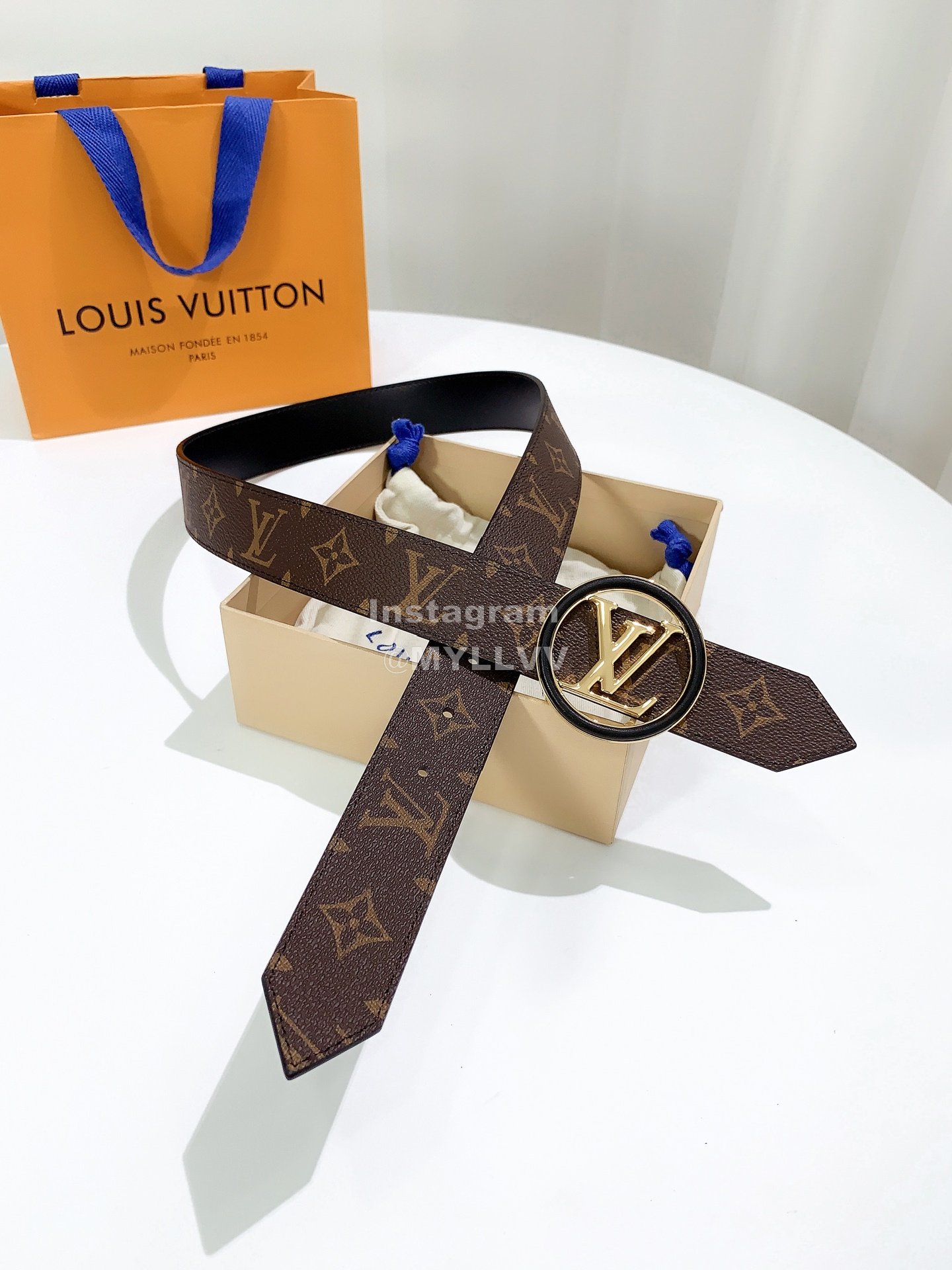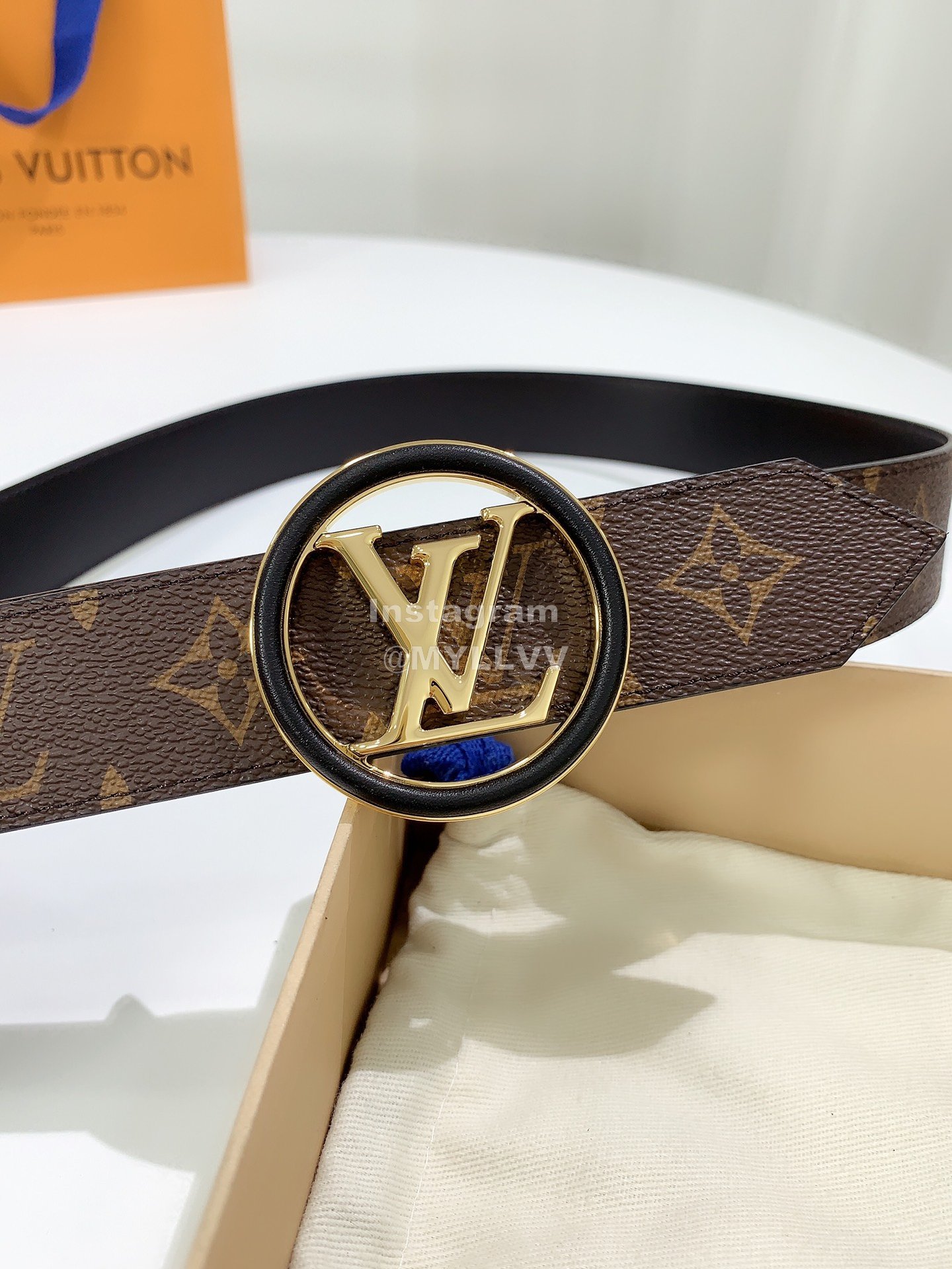 Lv Monogram Canvas Leather Round Letter Buckle 35mm Belts Black