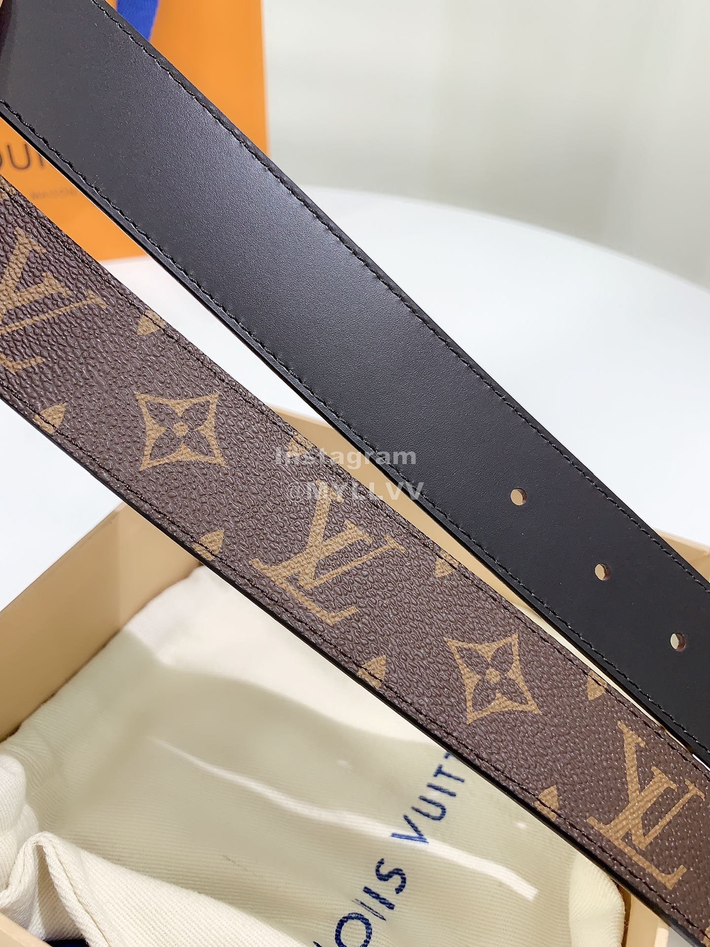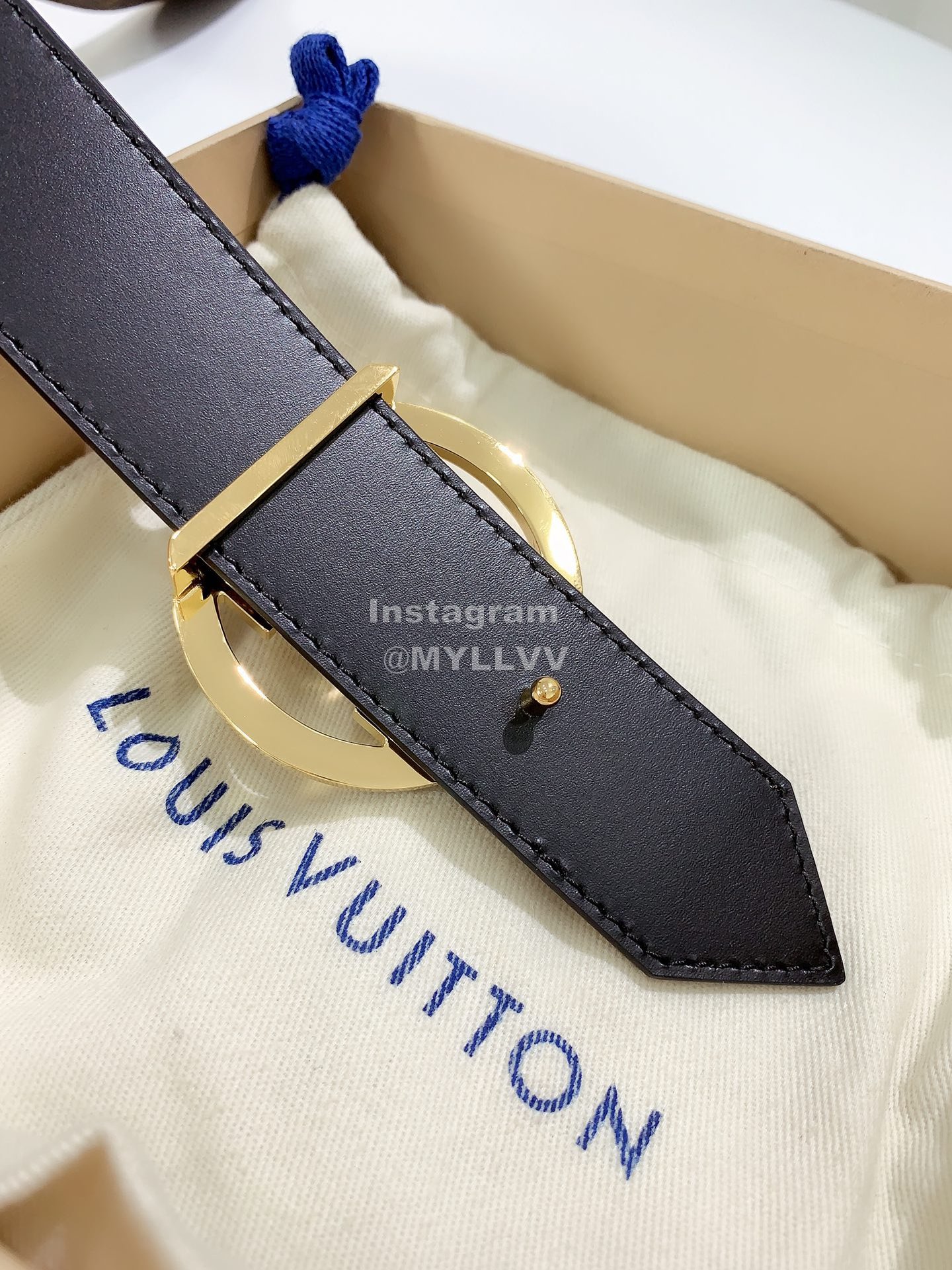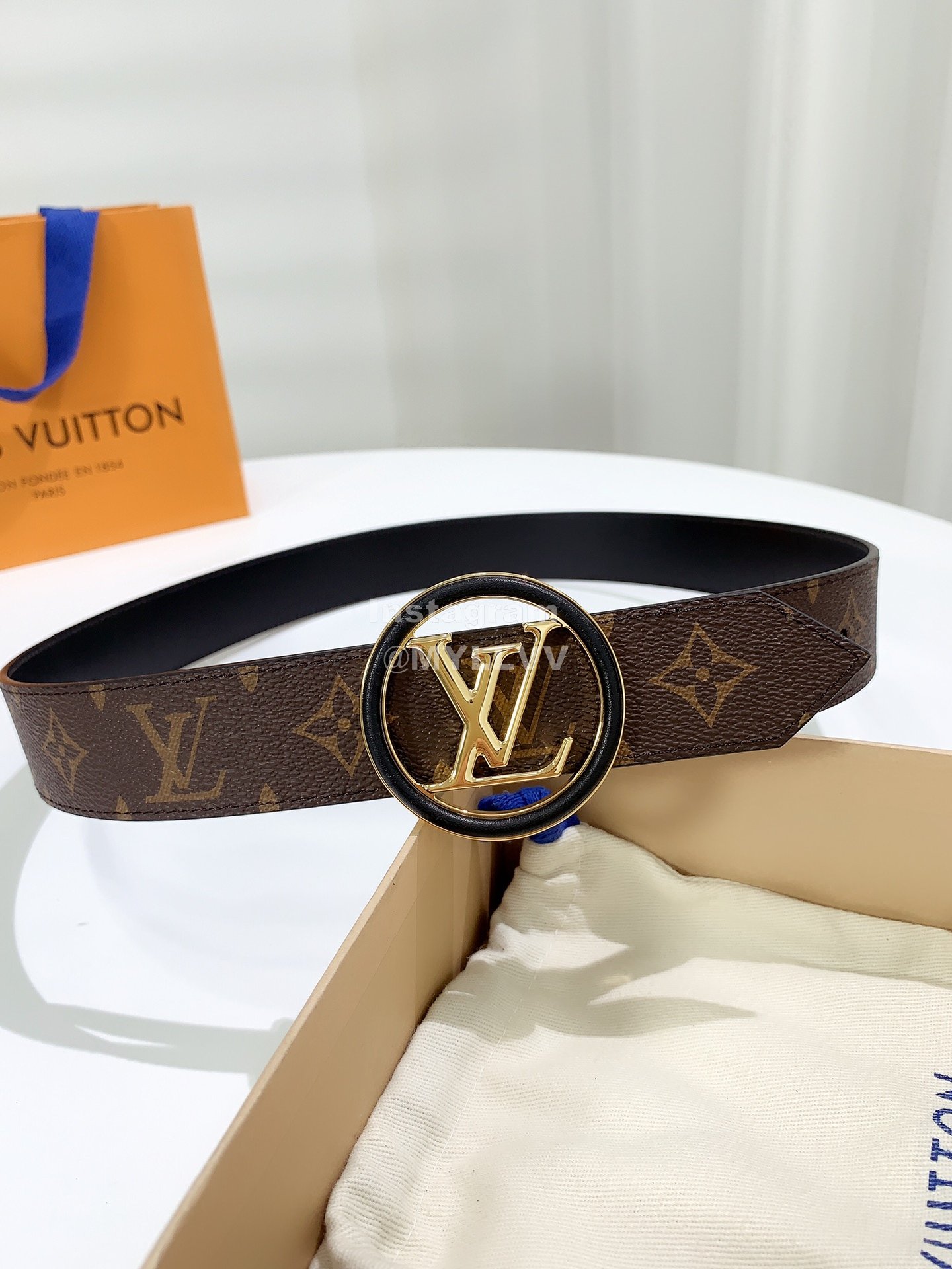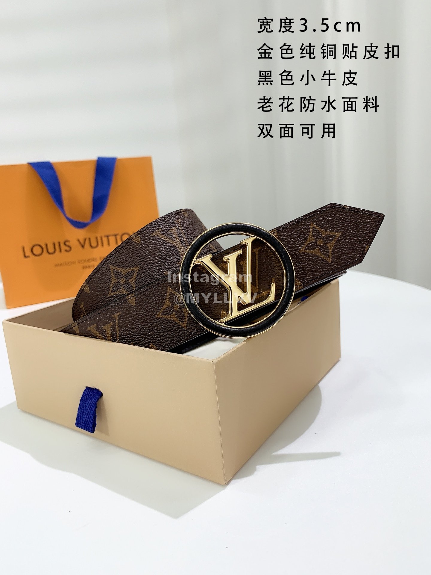 Lv Monogram Canvas Leather Round Letter Buckle 35mm Belts Black