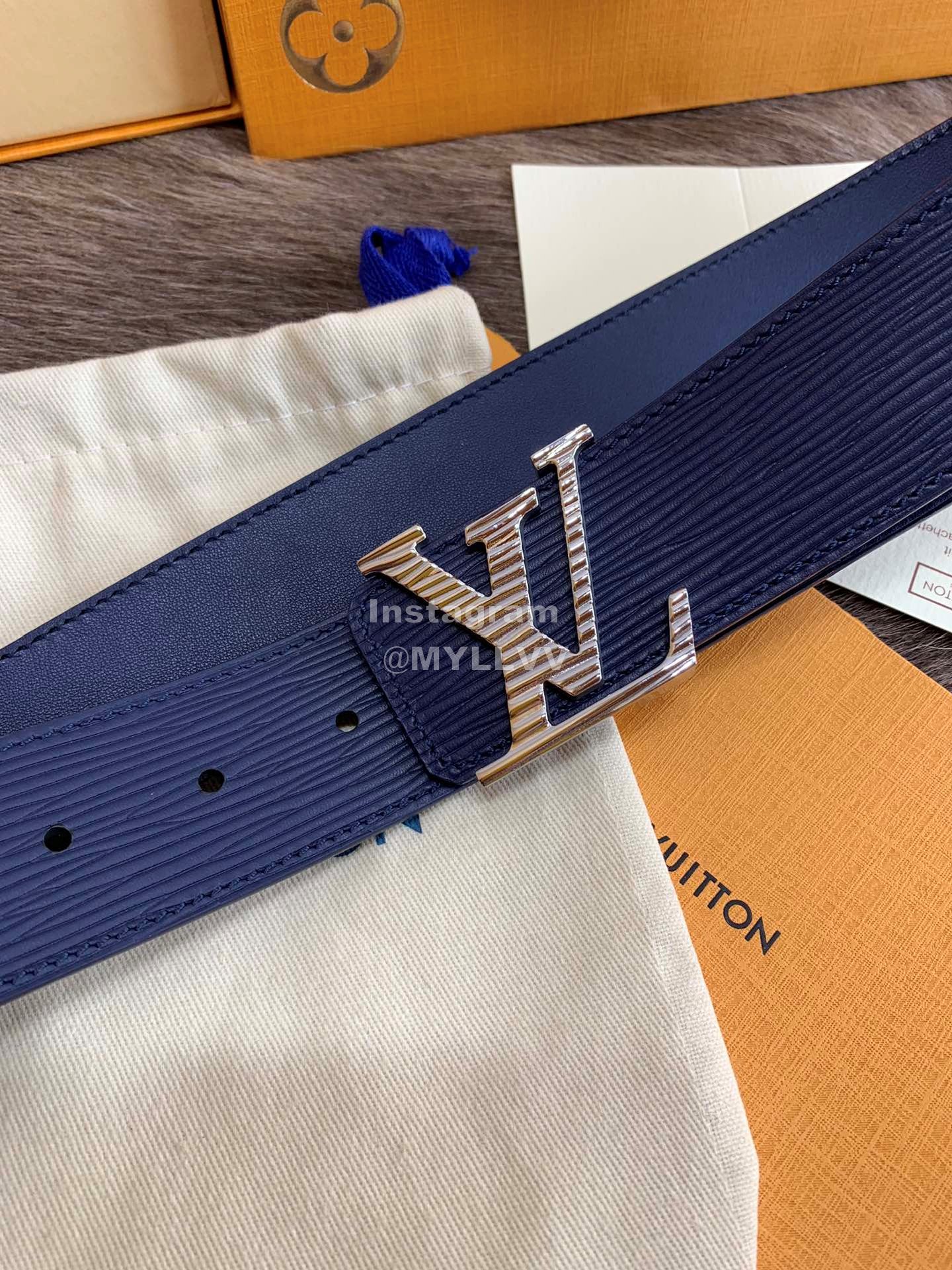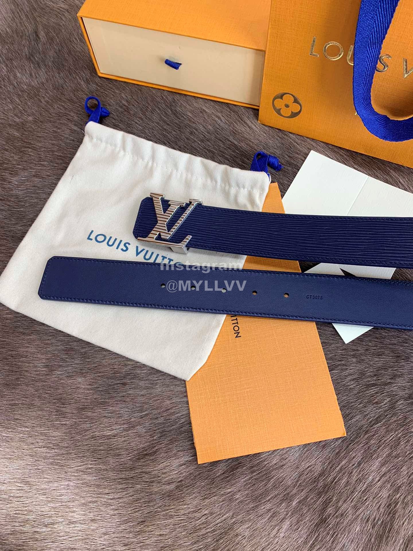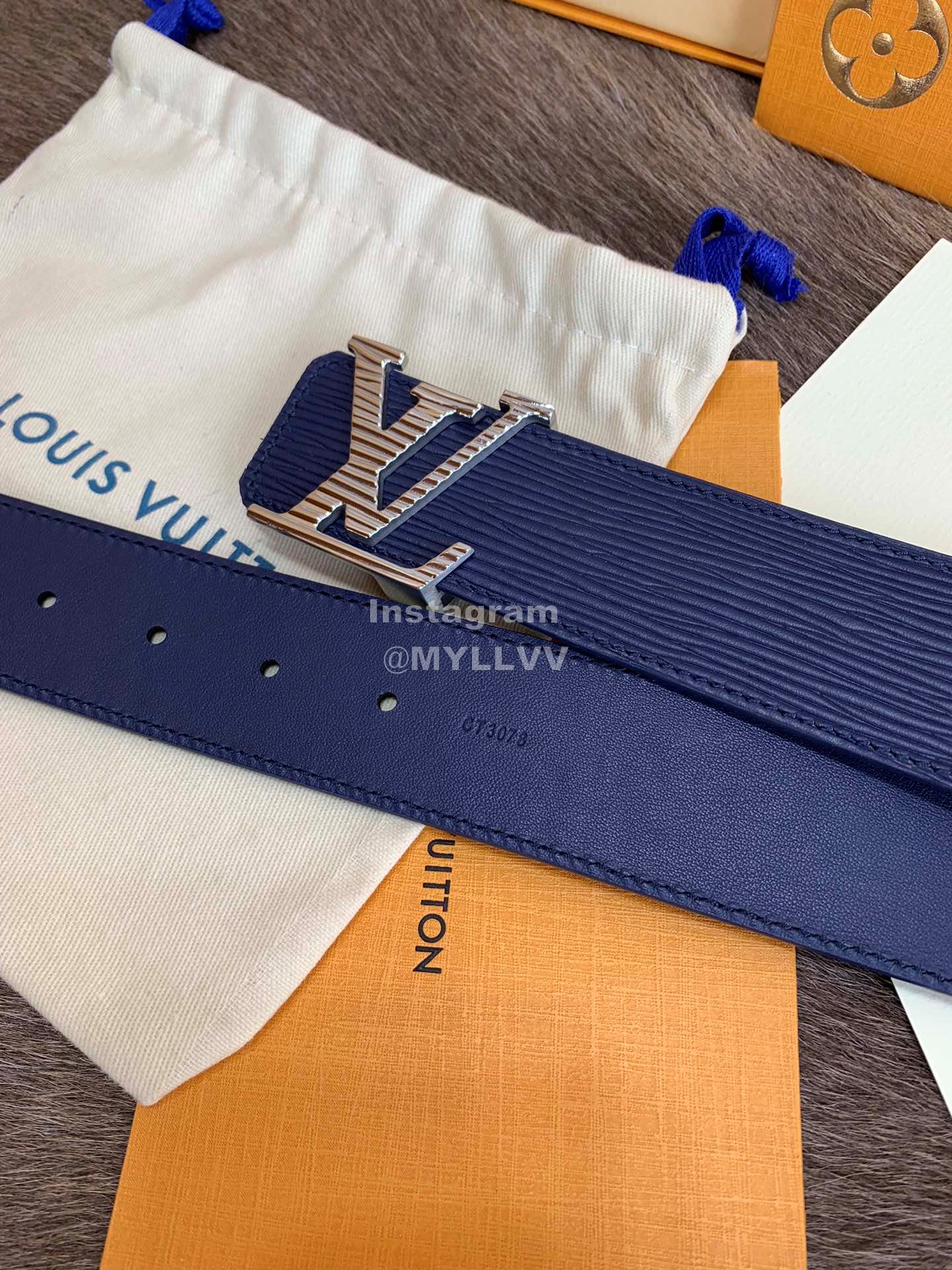 Lv New Leather Fine Steel Letter Buckle 40mm Belts For Men Blue