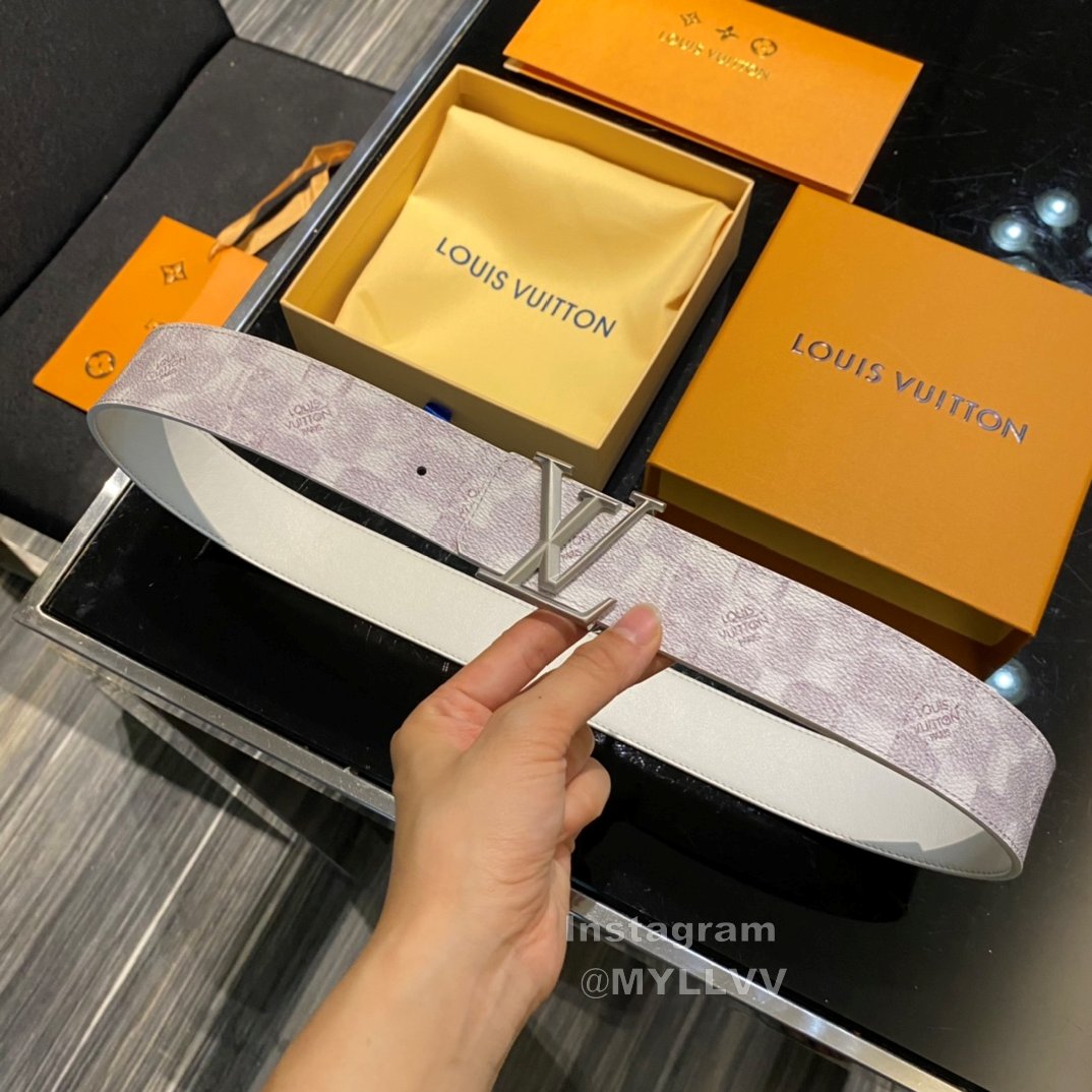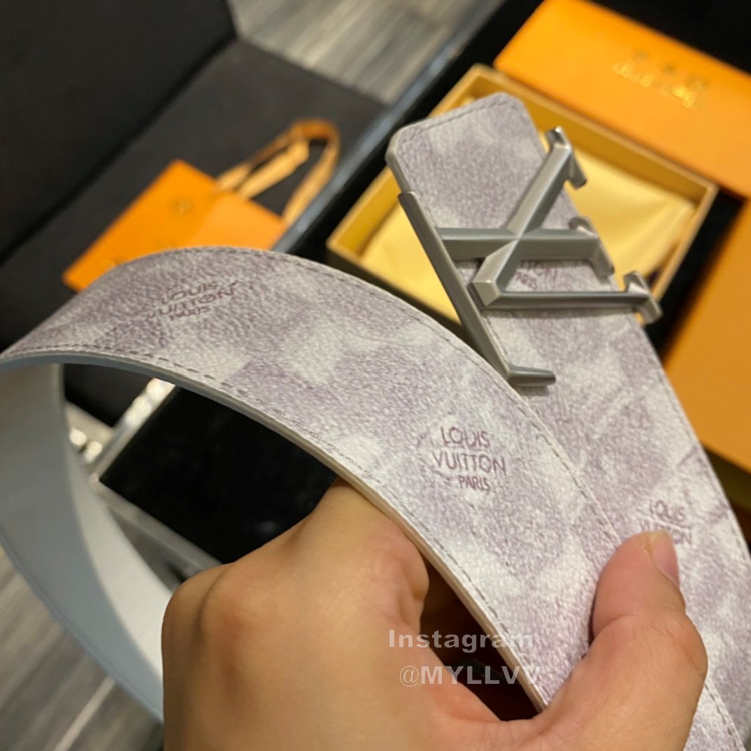 Lv White Printed Canvas Leather Gray Buckle 40mm Belt