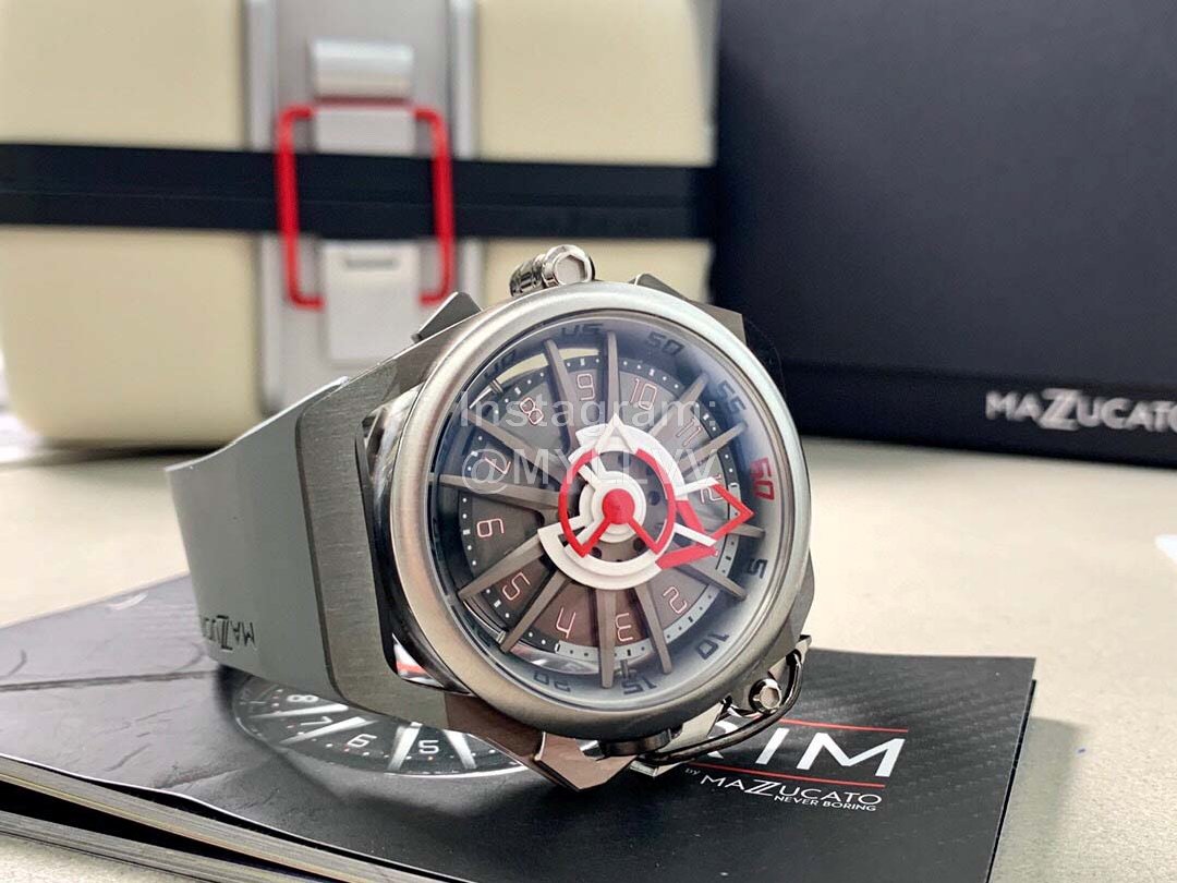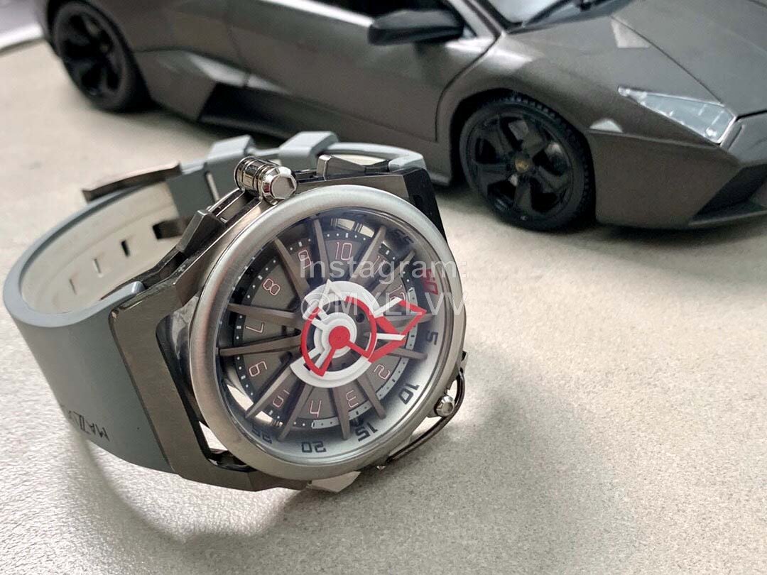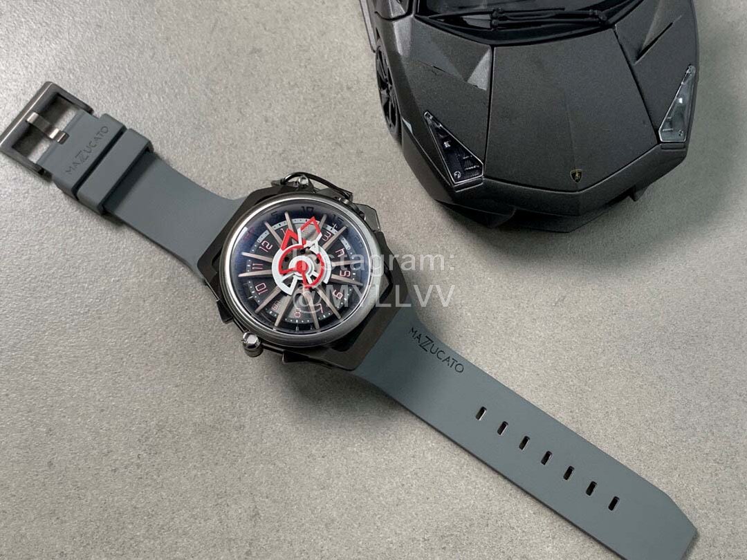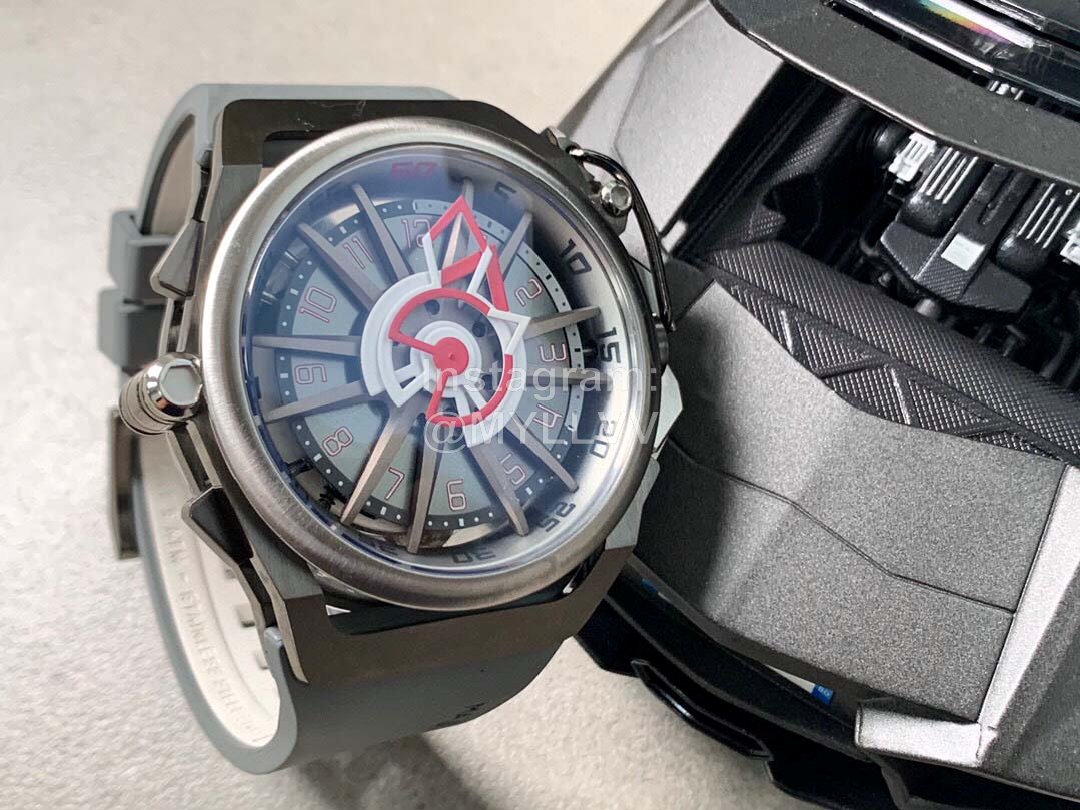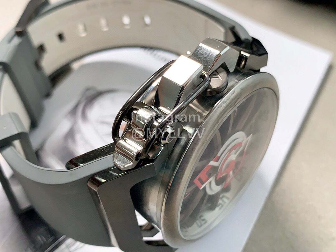 Mazzucato rim series, an Italian watch brand, puts the automatic mechanical movement and quartz movement in the same table with a special structure. It is a unique creativity. The brand comes from Italy, the kingdom of super running. The design of watches is to pay tribute to super running. The 9015 automatic movement is 28800bps, the high-frequency movement needle is relatively smooth, and the disk design is like a racing wheel rim, with a strong sense of three-dimensional, and the other side is quartz. Miyota jsoo timing movement can be used for daily timing purposes. The transformation process of the watch is very simple. Just pull out the 2-hour position and connect the crown guard bridge. You can easily rotate the dial to the other side along a pair of branches, only to hear a click, which means that the dial is in the correct position. At this time, you can lock and fix the protective bridge again. The whole transformation process takes only 5 seconds