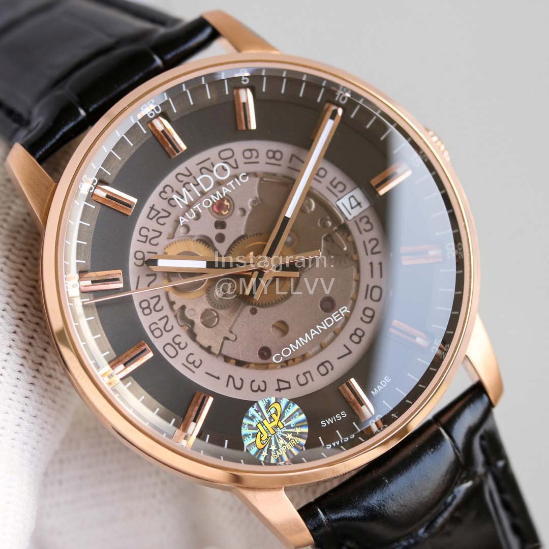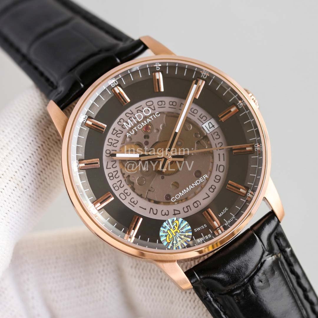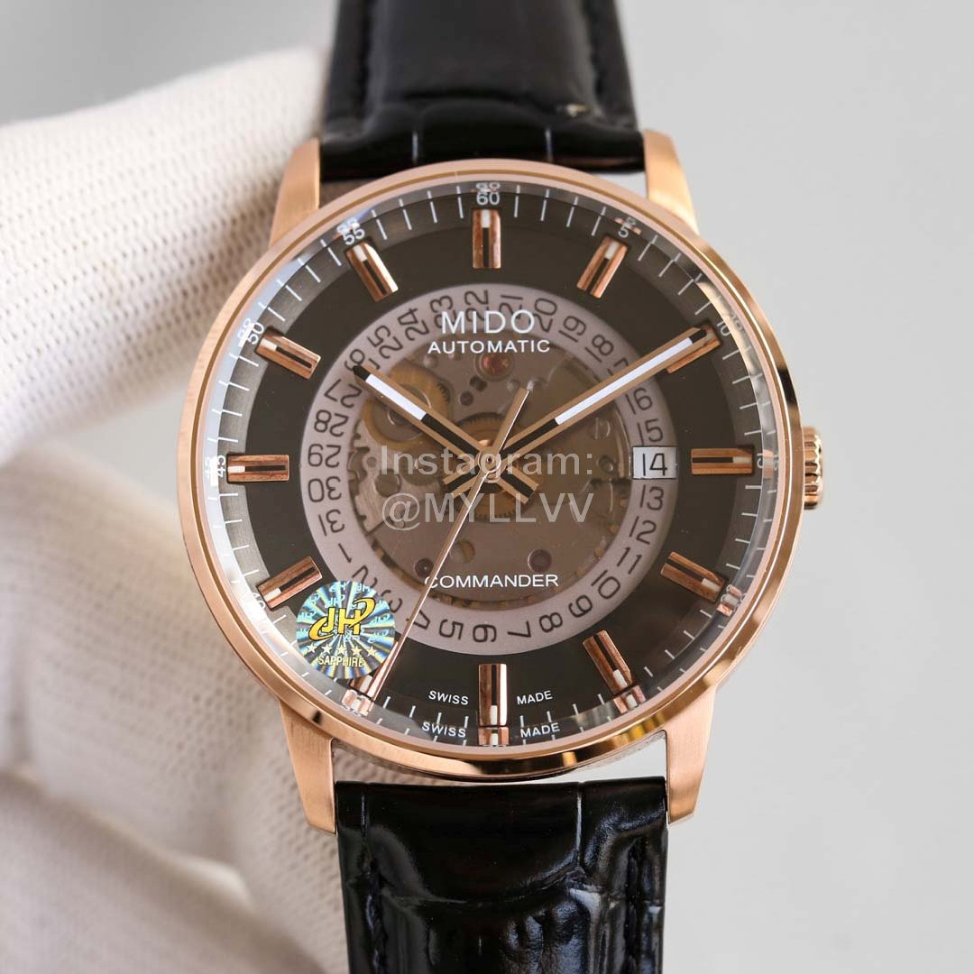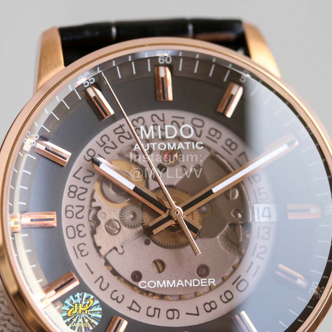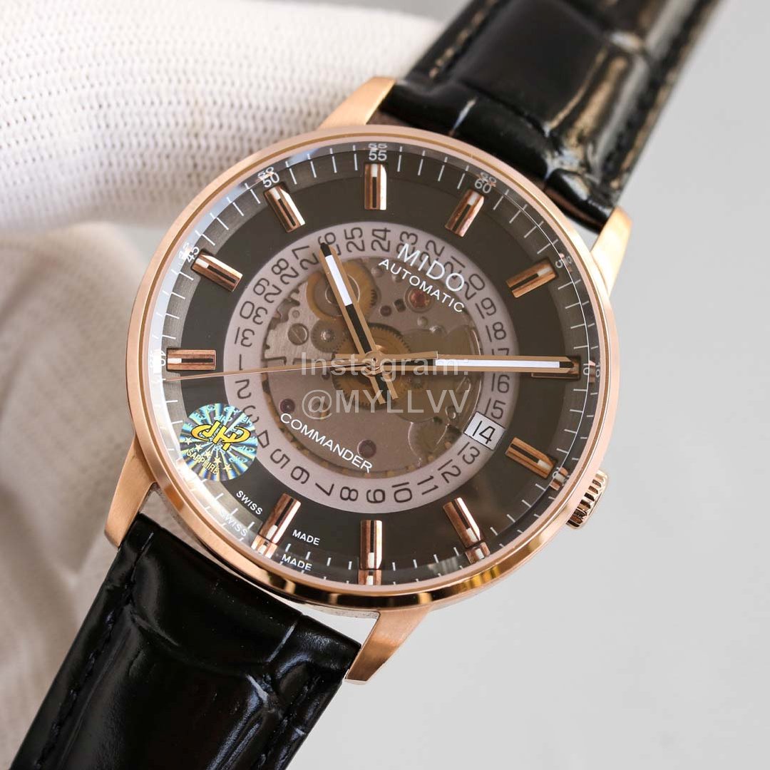 Mido watch newly launched the commander gradient champs series progressive watch, which blurs the boundary between the hollowed out and the face plate through the progressive semi transparent smoked face plate, showing a mysterious and charming visual effect. The exposed movement is superimposed with a translucent smoked progressive face plate, and then carefully protected by a sapphire crystal glass mirror to deduce the beauty of perspective under the progressive tone. Skillfully presents the movement structure, and the carefully carved movement gear has a panoramic view through the semi transparent dial and back. At present, a total of four models with a surface diameter of 40mm, smoke color gradual layer dial, hour, minute, second and date, Eta2824 automatic chain movement, sapphire crystal glass mirror, perspective bottom cover, waterproof 50m