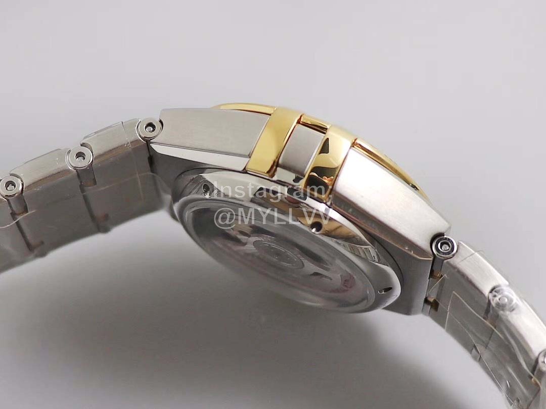 Omega Constellation series! 29mm. As a major change of constellation, the unique button of watch buckle can adjust the length of watch strap at will (2mm); The new watch case design is more slender and slender, and it looks thinner with the glass at the bottom of the pot cover; The upgraded 8700 movement deck is equipped with shock absorbers consistent with the authentic ones, and the extremely stable nh05 movement is used inside the deck;