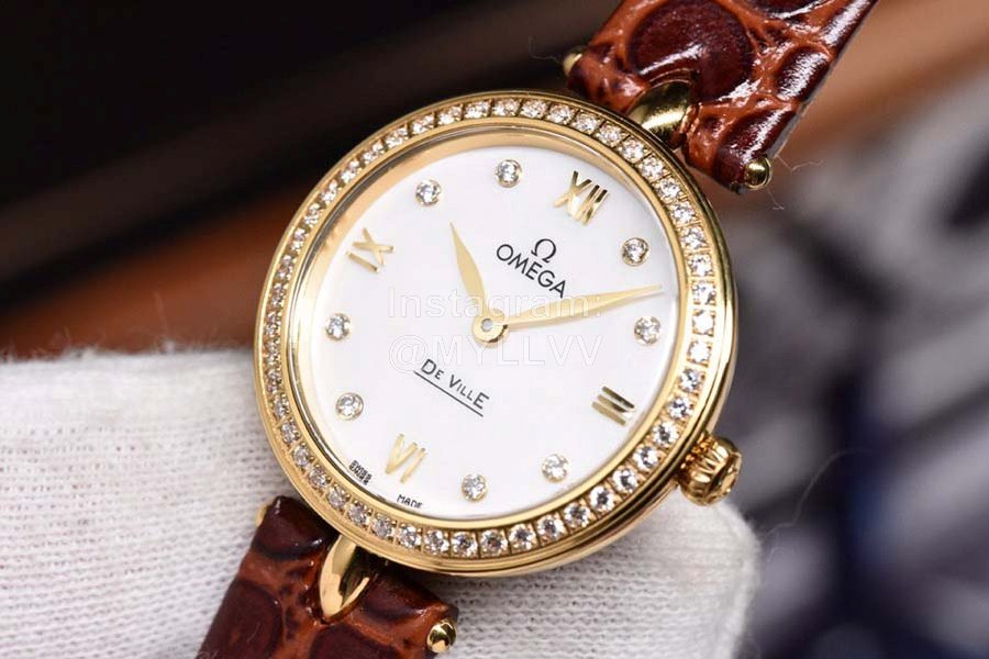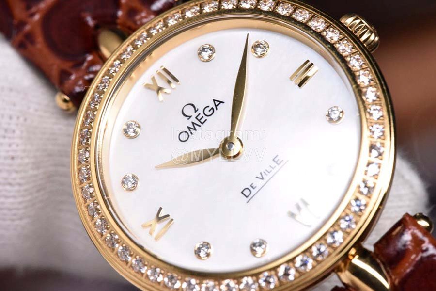 Omega Dewdrop 27.4mm Dial Diamond Watch Gold