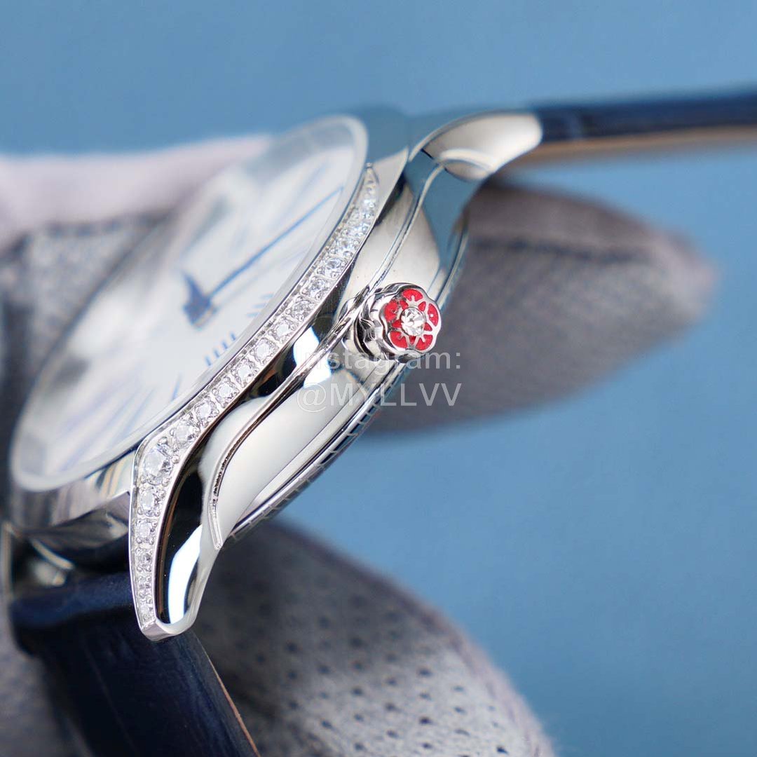 The new Omega classic series was launched for the first time, and the new Omega launched a new de Ville tr é sor women’s watch, presenting a simple and slim appearance. The watch case is 36mm in design, and 19 gradually sized diamonds are inlaid on both sides of the watch ring to outline the gorgeous diamond streamline and set off the elegant femininity.