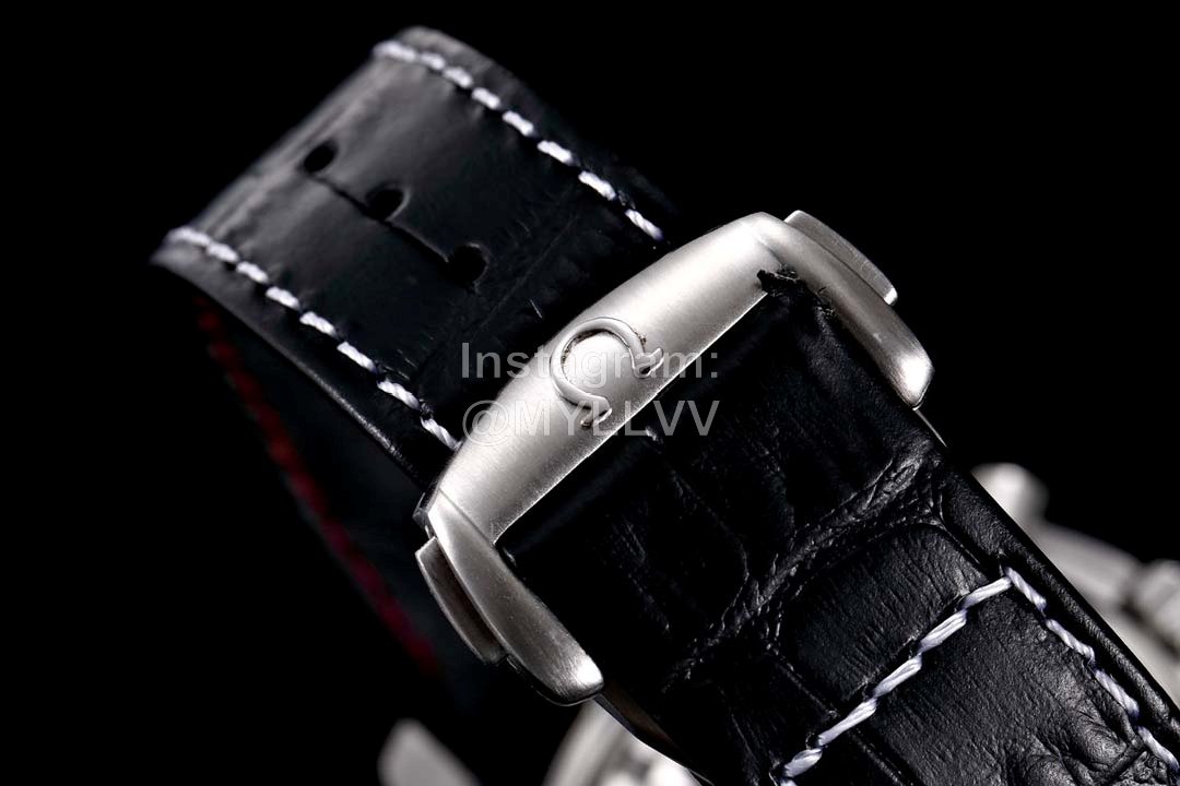 Omega Speedmaster Leather Strap Luminous Watch Black