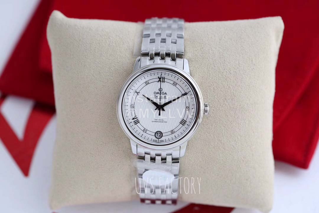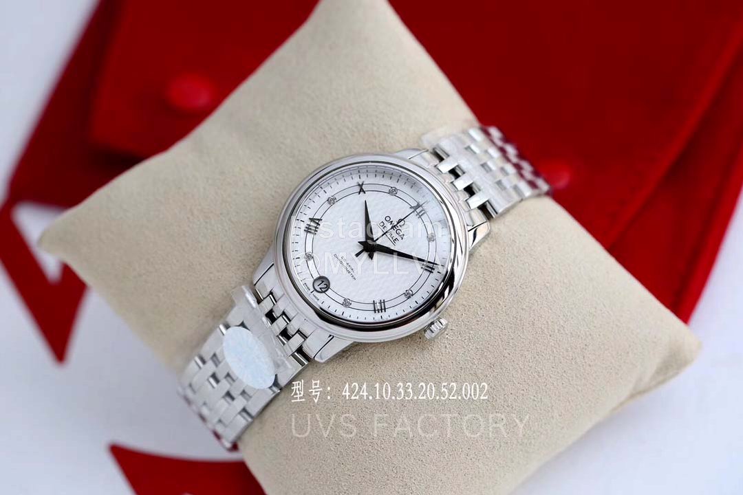 Omega 424.10.33.20.55.002 is equipped with Haiou 2892 movement, which is consistent with the original 2500 movement, including the height of the middle position, the direction of calendar adjustment and calendar jump. The calendar adjustment of 2500 rotates downward, and the calendar jumps from right to left. The four trimming lines of the watch case need to be roughly ground, followed by CNC and then finely ground. The God of time at the bottom of the cover Cronus Relief is the most Kung Fu. The bottom cover has been changed 11 times to pursue perfection