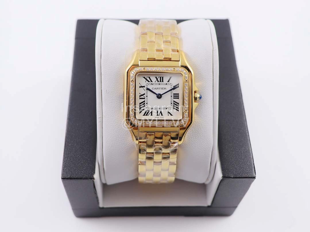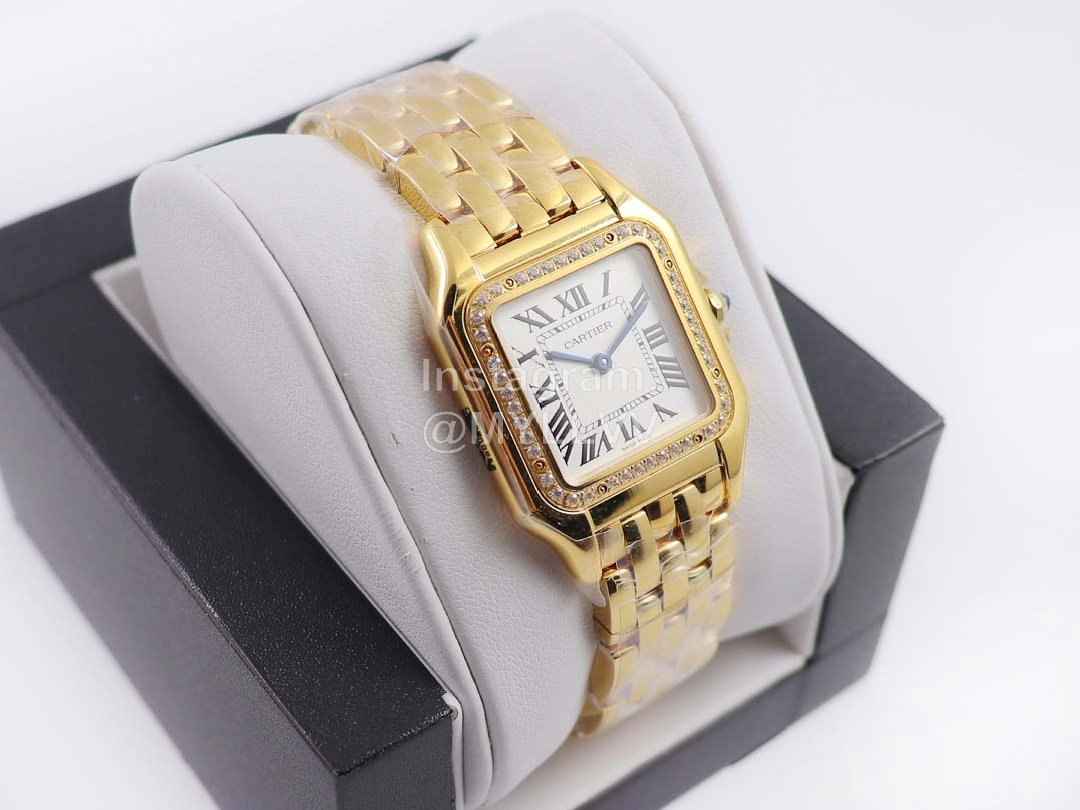 PanthèRe De Cartier 316l Refined Steel Case Square Dial Diamond Watch Gold