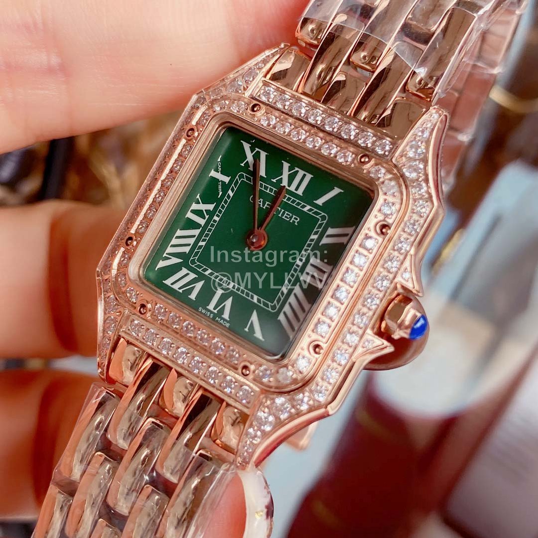 The latest high-quality Cartier Panth è re de Cartier cheetah series watch, genuine original size, quartz movement imported from Switzerland. 316L fine steel case medium: 27 x 37mm. The crown is inlaid with a synthetic spar, the three-color dial is perfectly matched, the sword shaped blue steel pointer and the refined steel bracelet