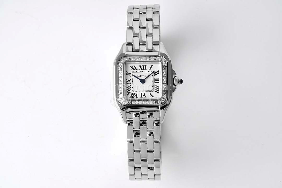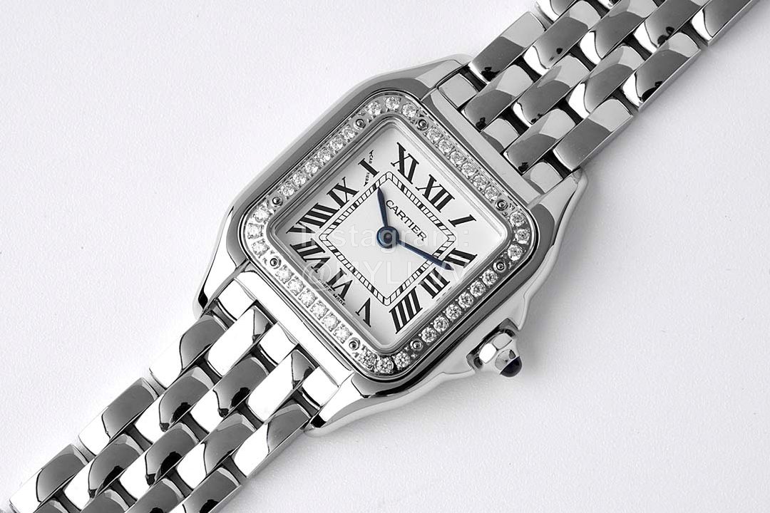 PanthèRe De Cartier Square Dial Diamond Water Resistant Watch Silver