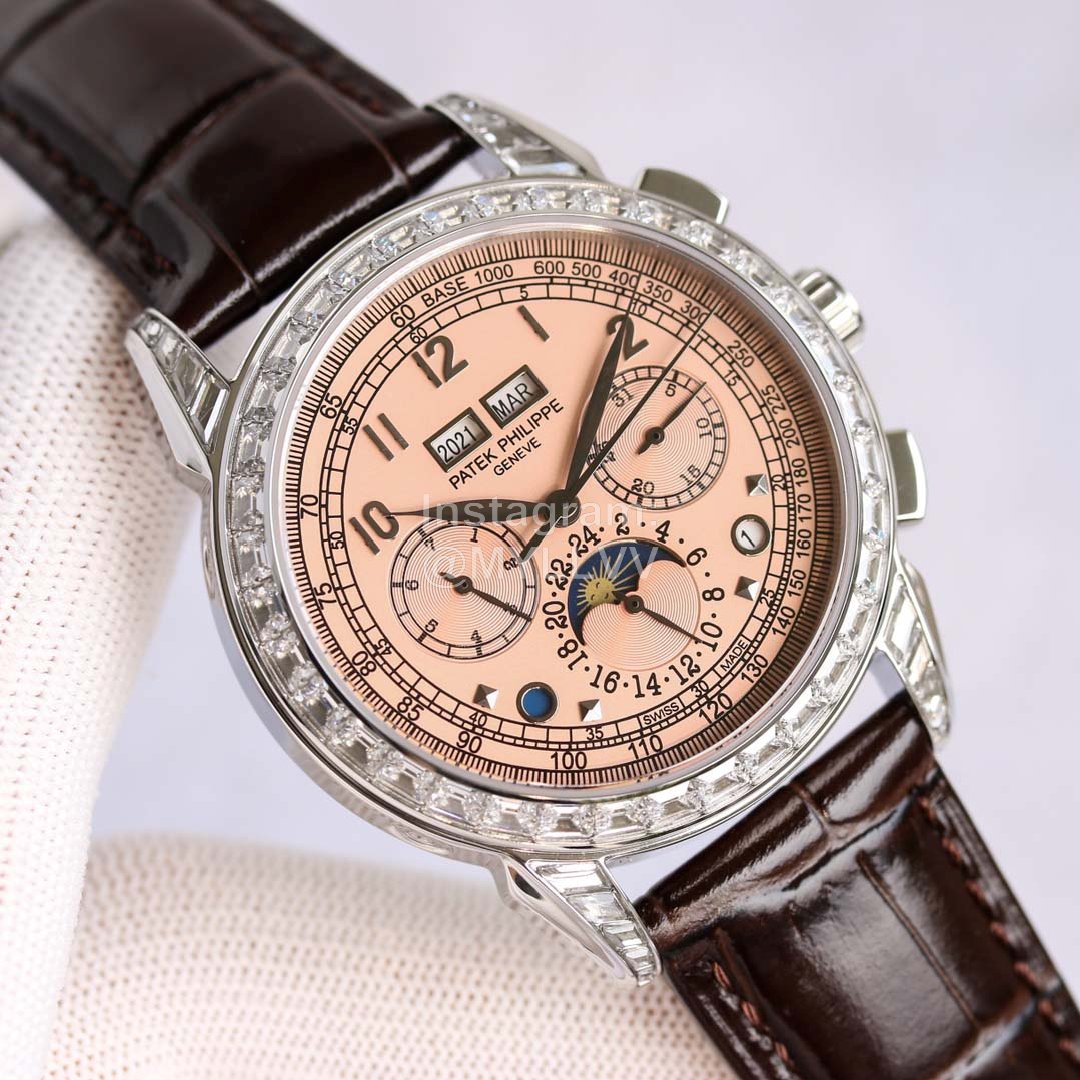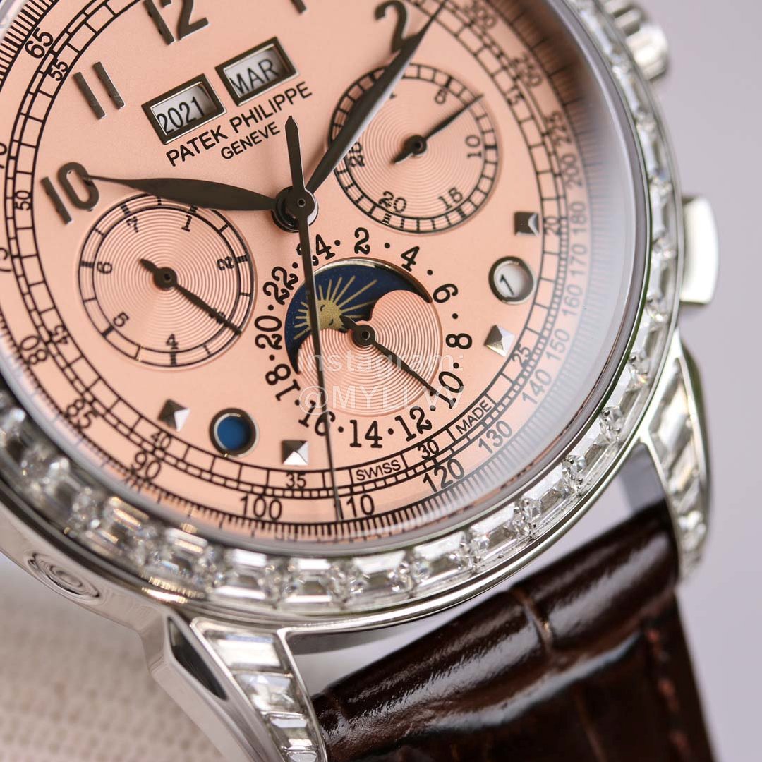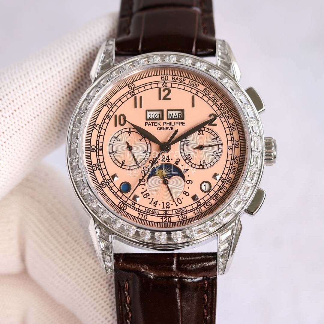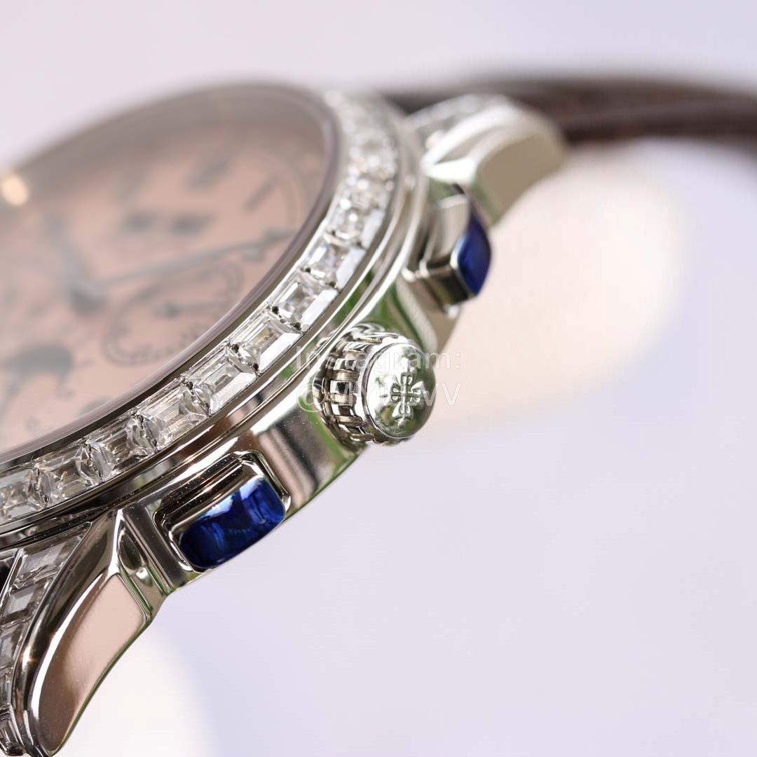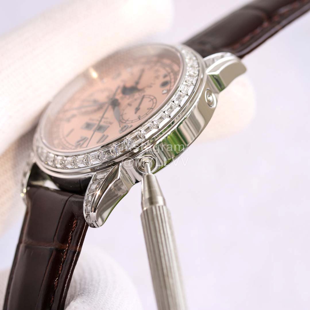 3: The case is 316L all steel plated nano platinum watch technology, and the ring mouth is dotted with South African diamonds to show the noble atmosphere. The strap is matched with Italian calf leather! More atmospheric grade!