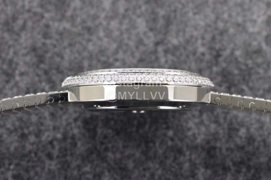 Literally hand inlaid diamond, imported Swiss quartz movement, imported basket gem crystal glass mirror, case material: refined steel, 18K platinum plating! Hand inlay, bright cut diamond! Surface diameter 34mm