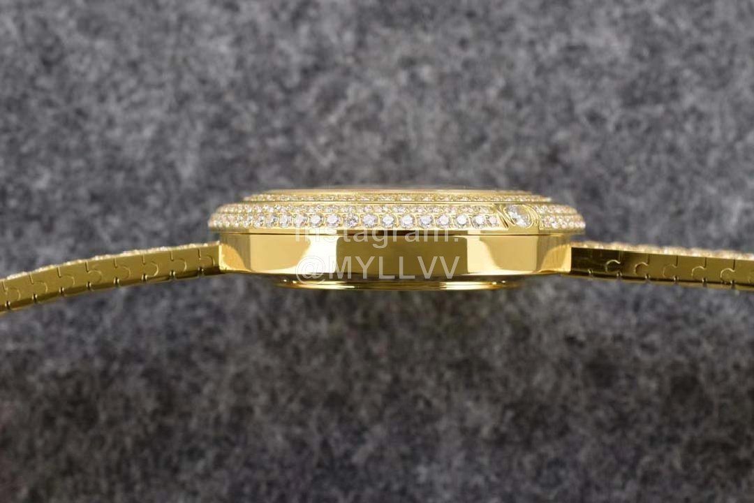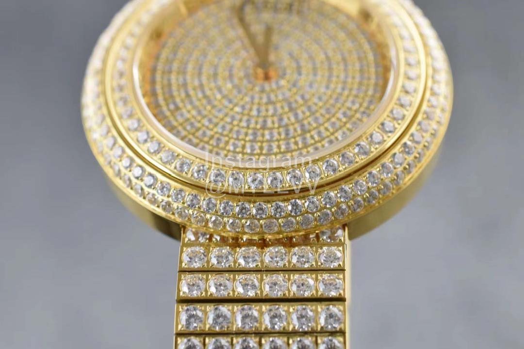 Literally hand inlaid diamond, imported Swiss quartz movement, imported basket gem crystal glass mirror, case material: refined steel, 18K platinum plating! Hand inlay, bright cut diamond! Surface diameter 34mm