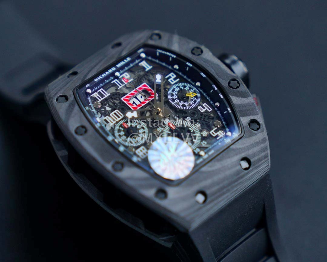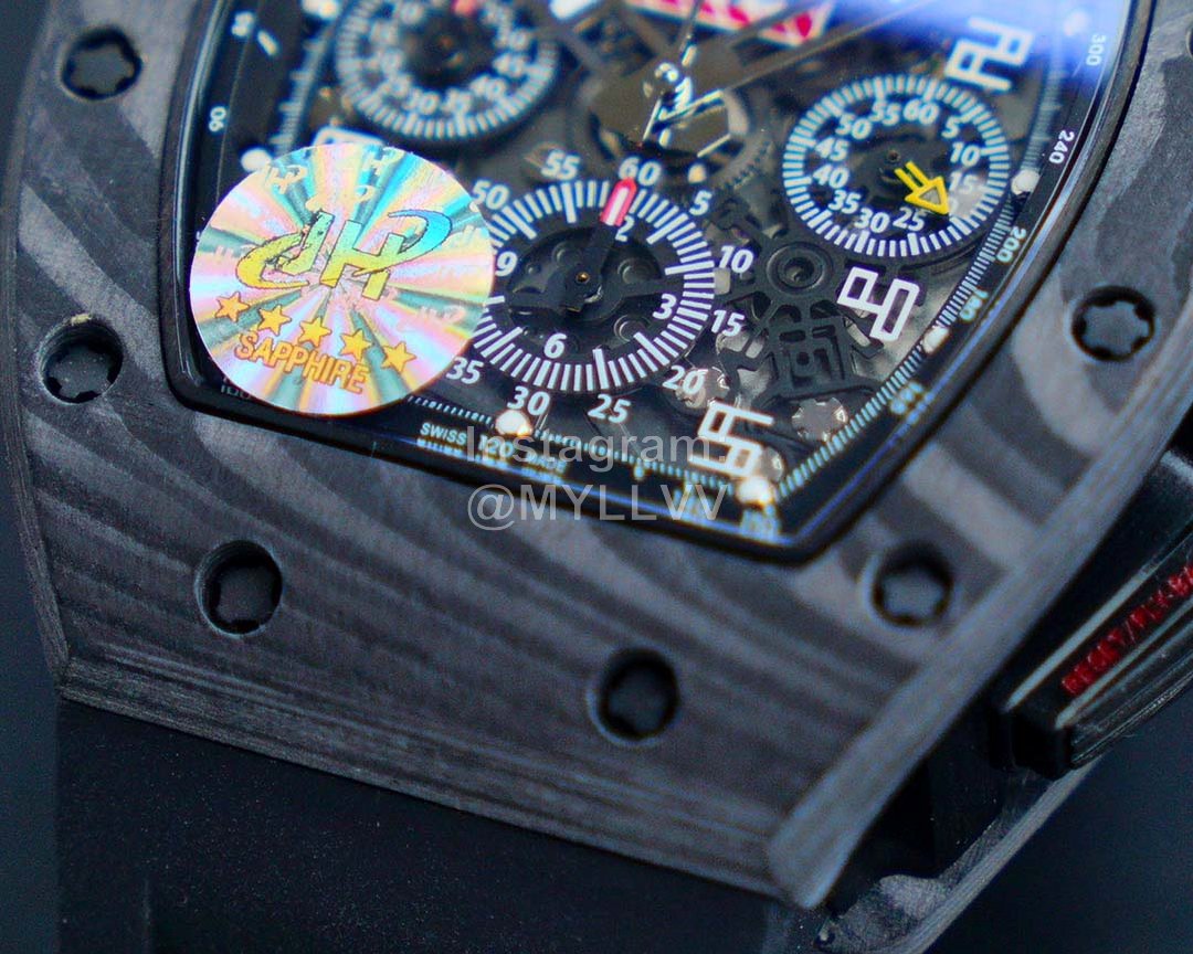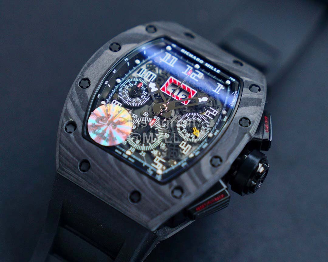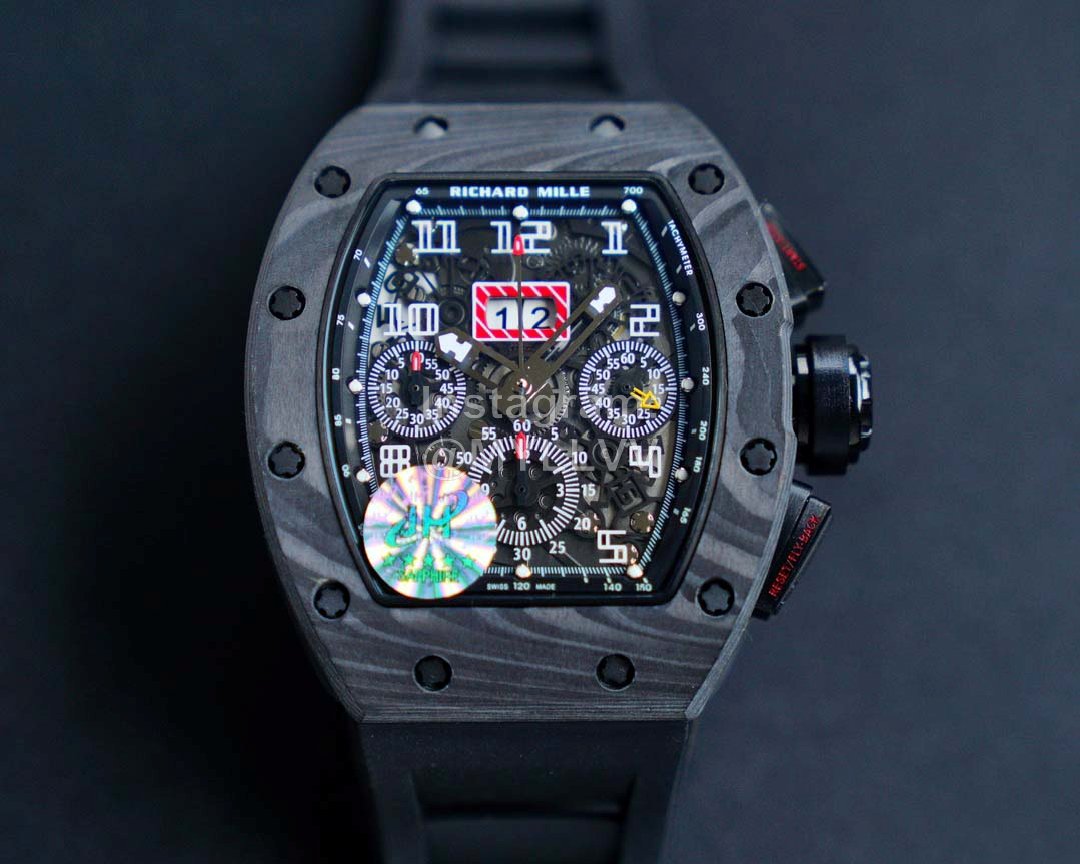 Richard Miller rm011-03 art has raised a new level. The top carbon fiber case has the most perfect texture and the most perfect workmanship. It is equipped with 7750 calendar timing return reverse jump multi-functional eta7750 automatic mechanical movement, imported rubber strap, original folding buckle, 50x40mm high-end atmospheric upper grade timing watch, showing the classic connotation of Richard brand, sunny and attractive