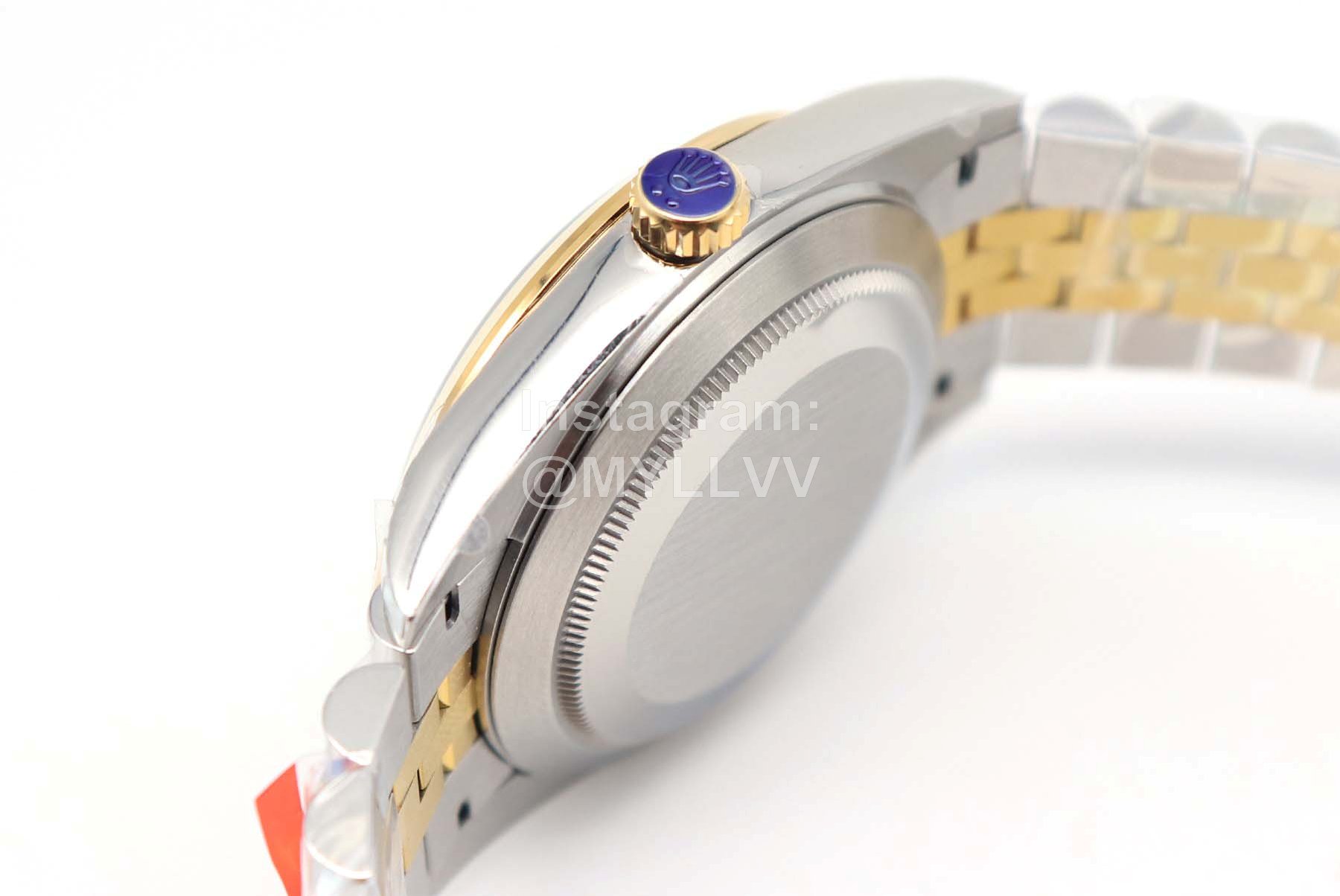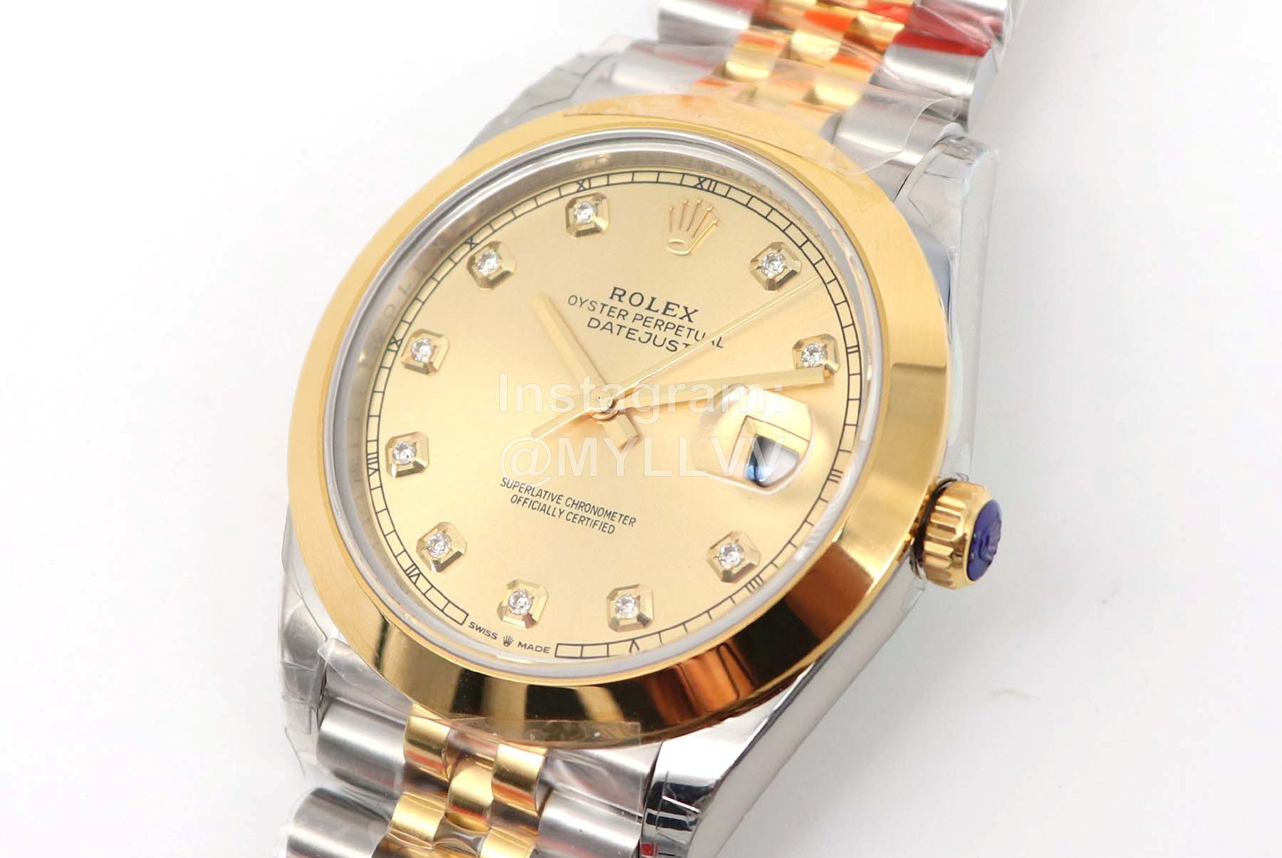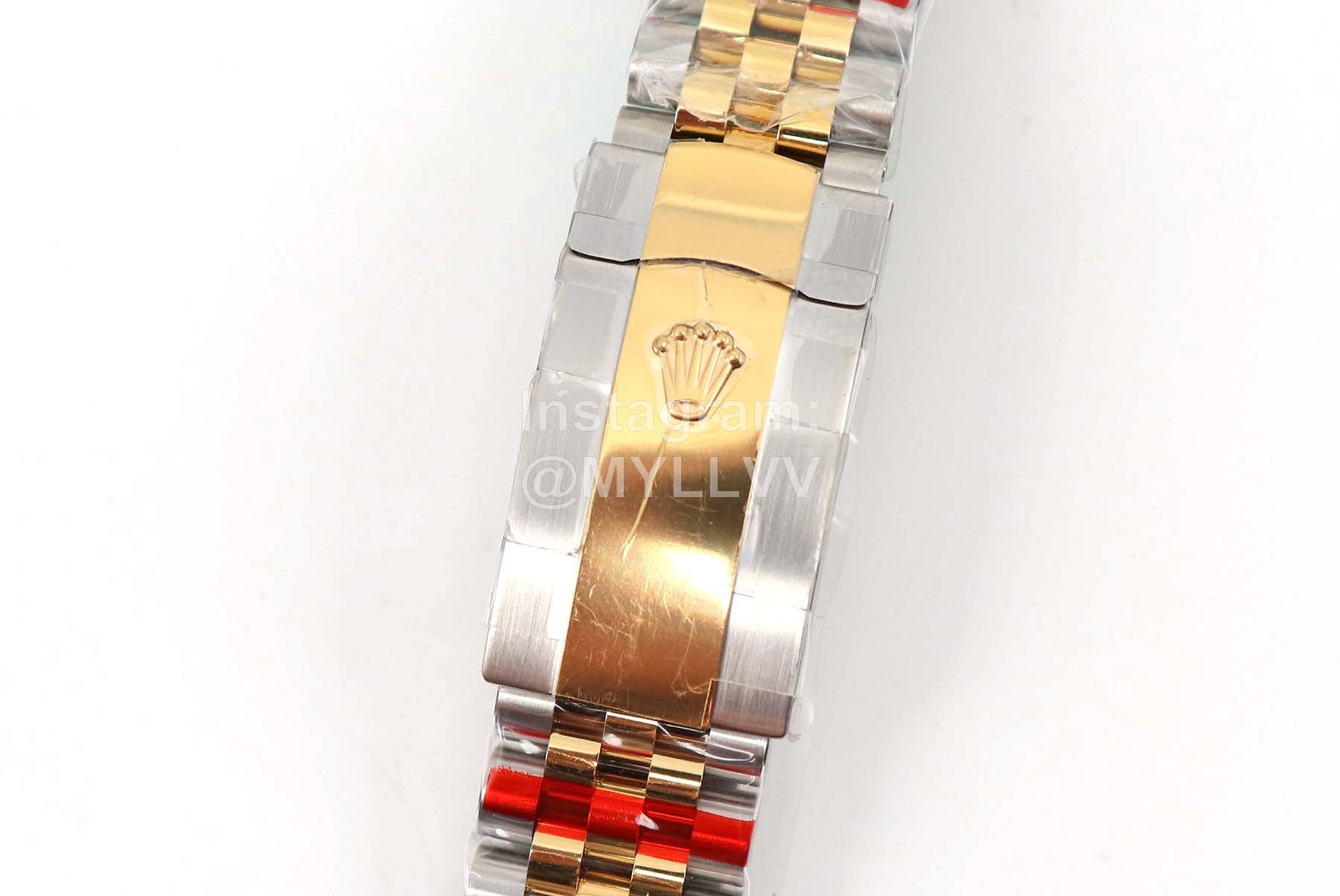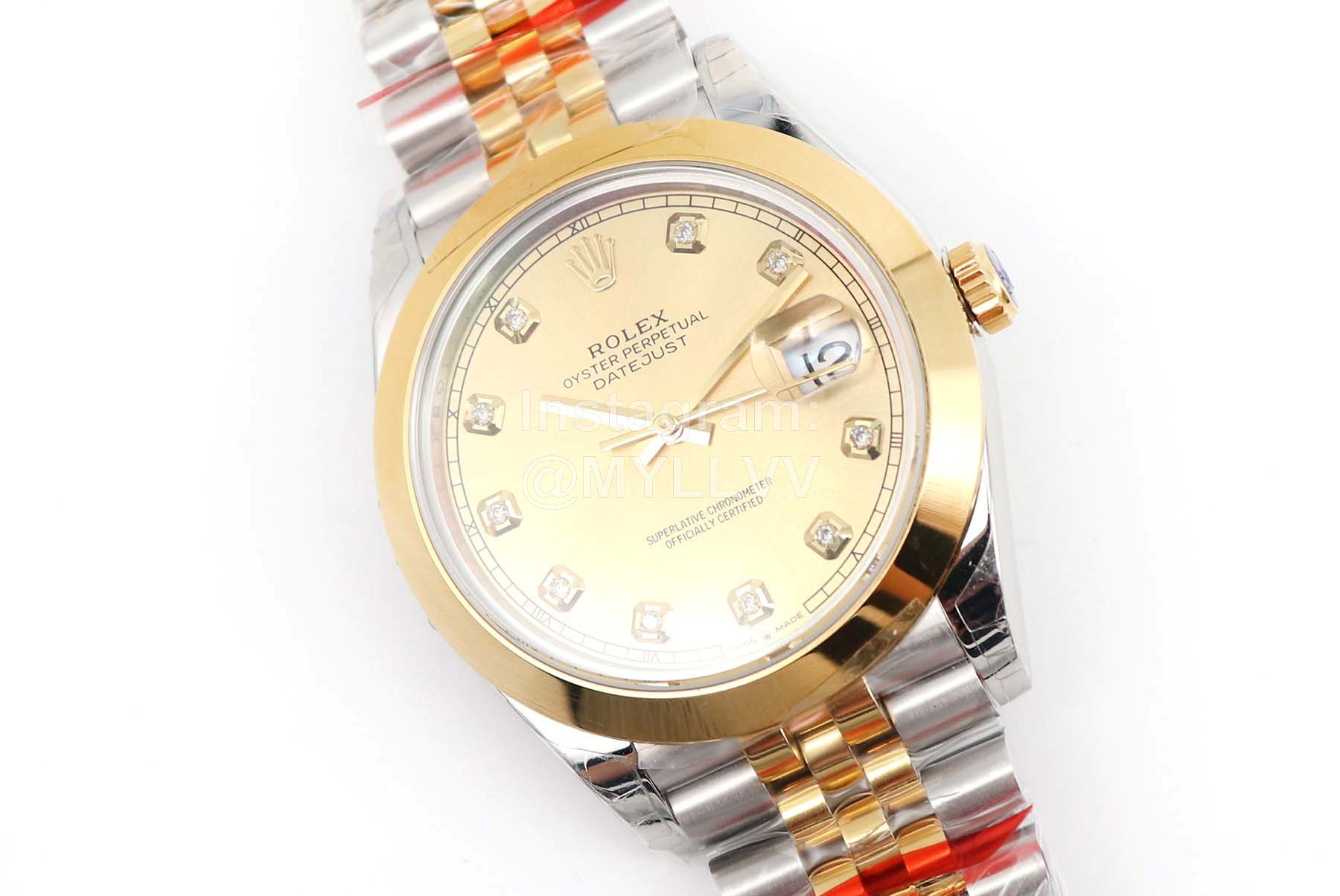 [case] 41mm in size, made of 904L oyster steel and platinum dog tooth ring. Oyster buckle with 5mm adjustable chain link extension system to ensure 100 meters of water resistance