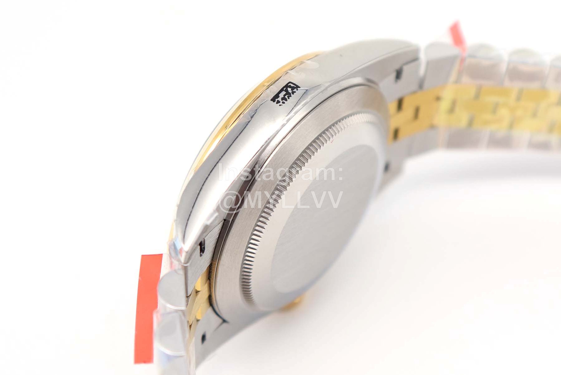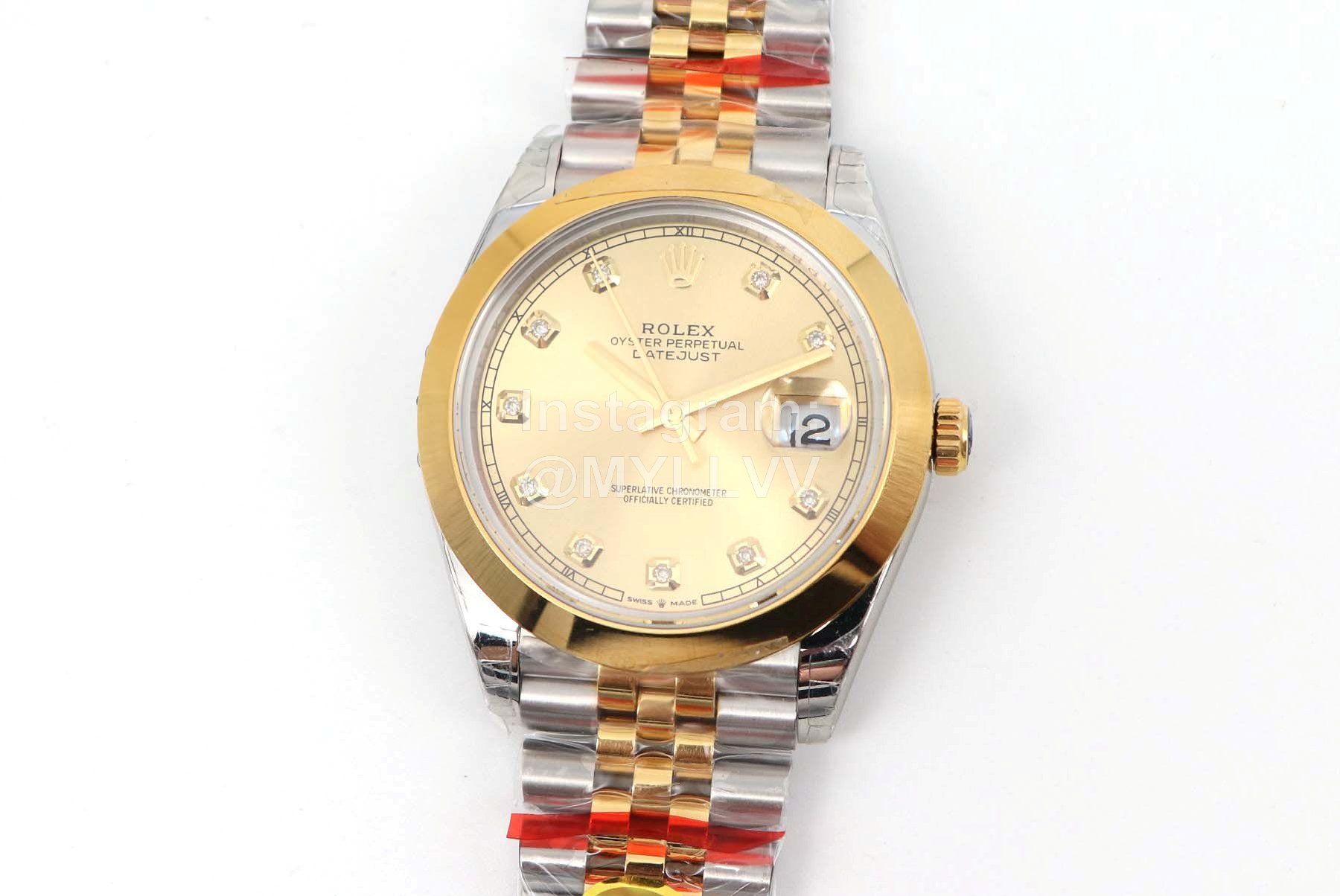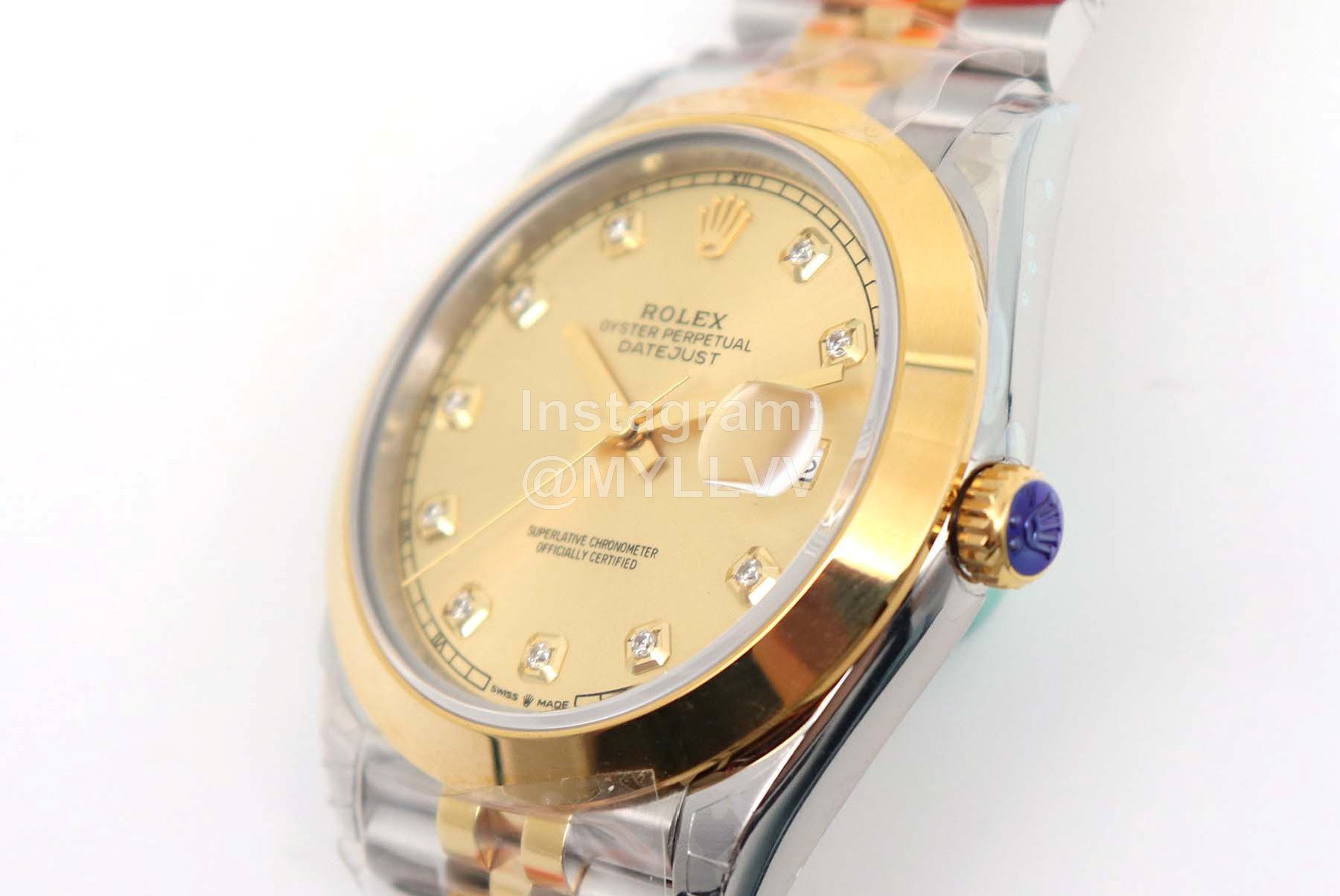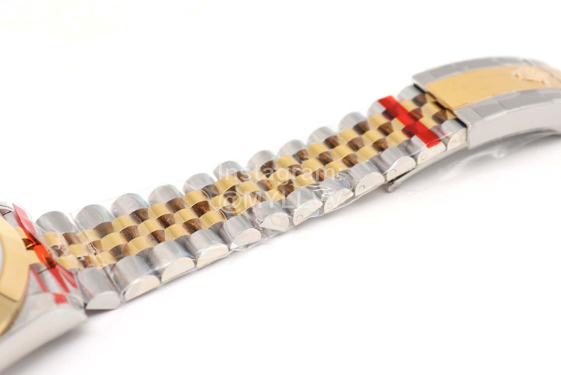 [case] 41mm in size, made of 904L oyster steel and platinum dog tooth ring. Oyster buckle with 5mm adjustable chain link extension system to ensure 100 meters of water resistance