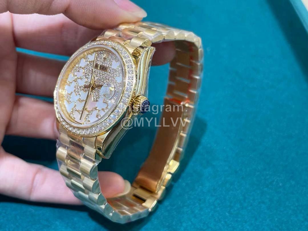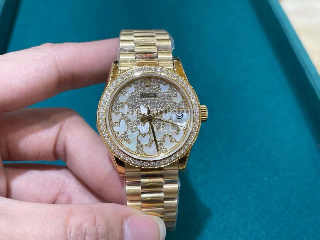 4: The mirror is made of scratch resistant blue crystal. A small window convex lens (2.5 times) is installed at 3 o’clock. The women’s log type waterproof oyster case gives the best protection for the high-precision movement!
