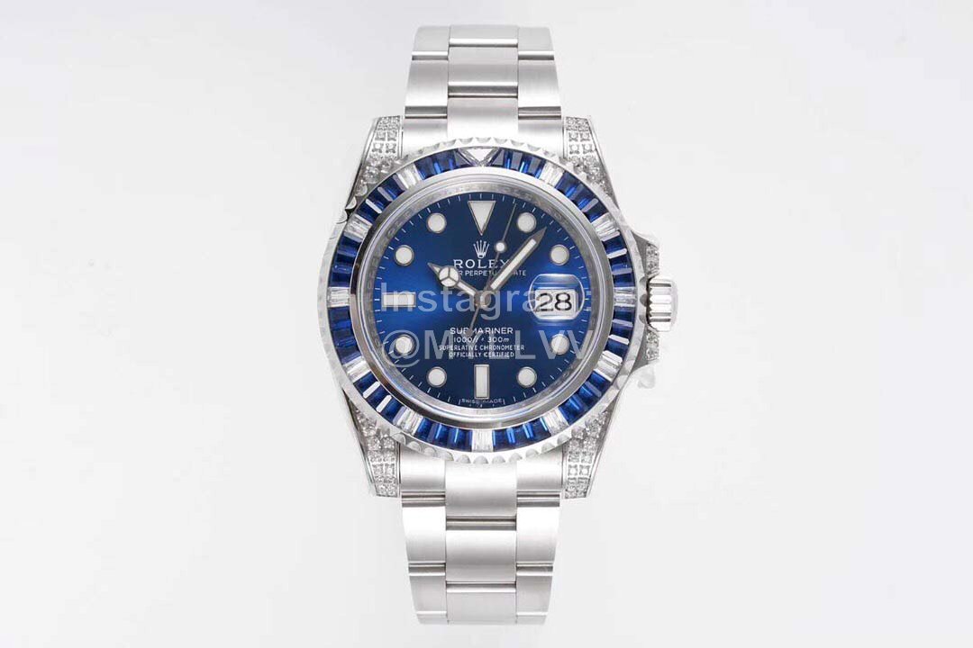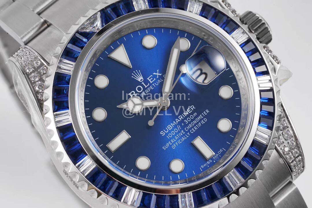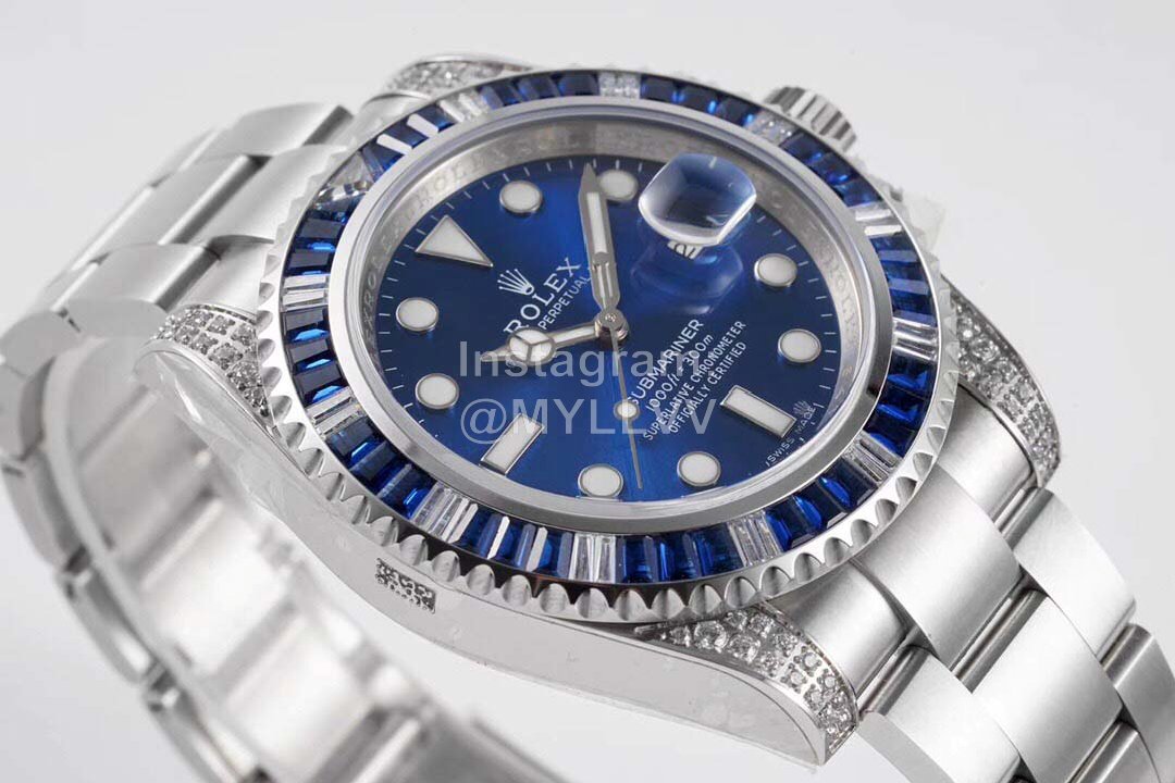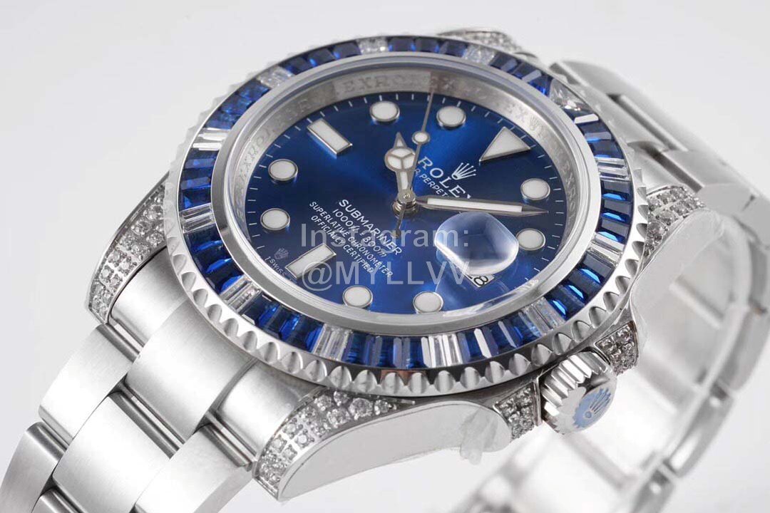 Rolex sub diver back diamond customized version! R is the combination of luxury, shine and never fade, and it is also the best choice for classic trends! R [case] the size of the watch is 40mm. Each diamond color treasure comes from Austria (origin of Swarovski). After strict screening, R ensure the unity of color, size and fire color. It is carefully inlaid by ROF jewelry inlayer. The R [strap] is synchronized with the case. The 904L oyster steel perfectly restores the strong and durable lineage of the genuine product. The R effect is comparable to the original product and can be used with the genuine universal R [movement]. The king of movement in the world of reproduction – the top seagull 2836 automatic upward rotation movement is adopted.