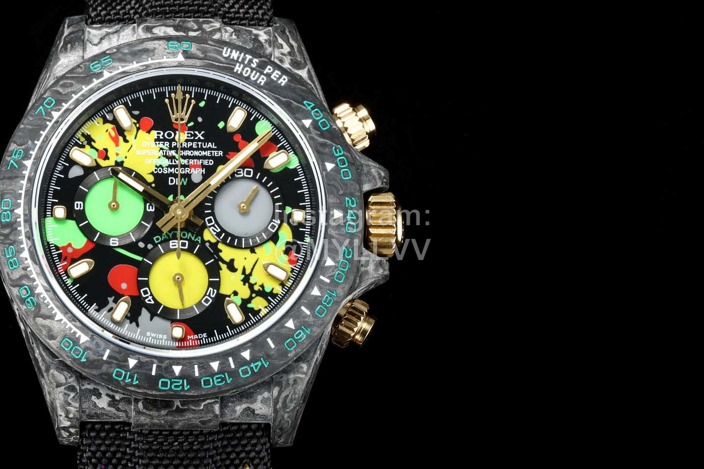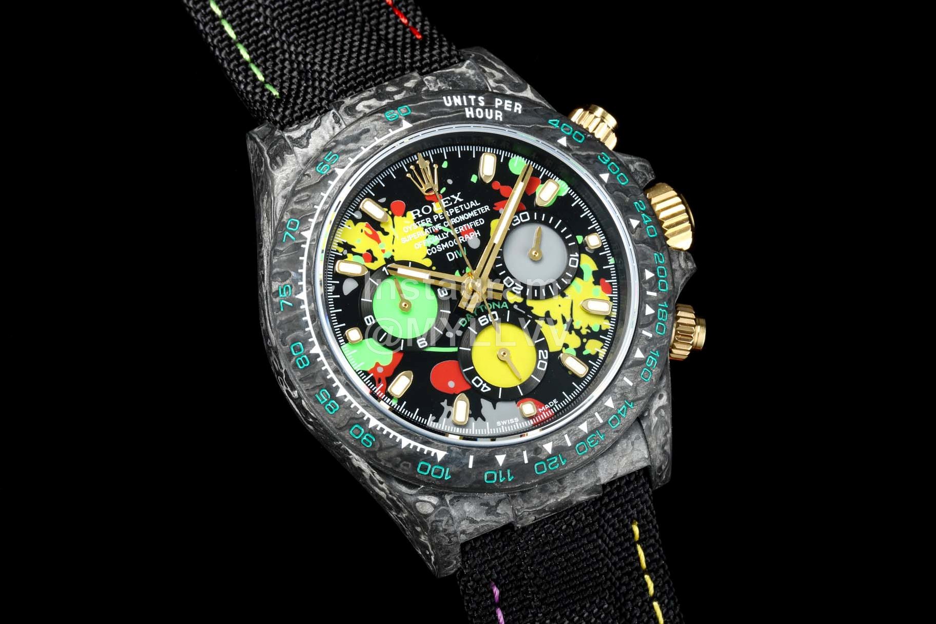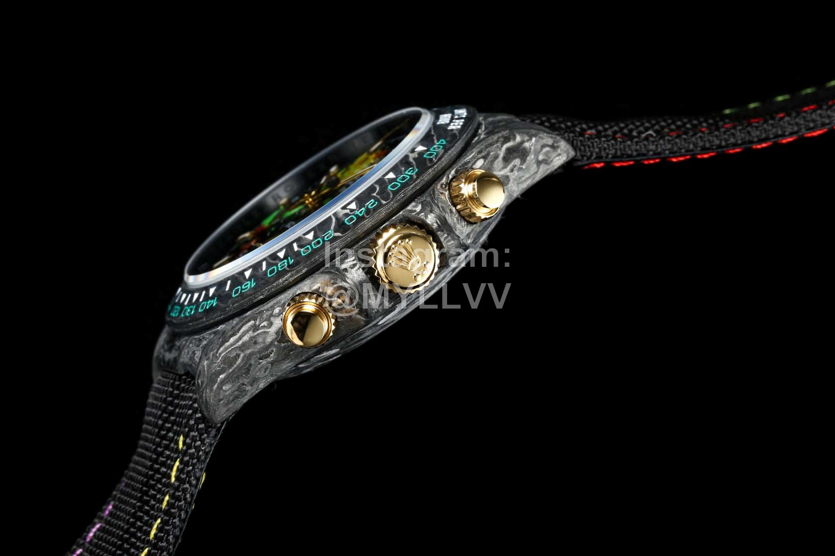 Rolex’s carbon fiber customized version is not only light to wear, but also hard to wear. And each watch has a unique carbon fiber pattern. [case] watch size 40×13 5. Match the original. Tw factory strength casts the unique style of carbon fiber Rolex. The whole shell cover, ring mouth and bottom cover are made of high composite carbon fiber and super luminous powder. The details are made by hand chamfering and polishing. Extraordinary texture. [strap buckle] the strap is made of artificial fiber woven belt, which is breathable, comfortable and soft. [movement] the precise and mature 7750 movement is adopted to perfectly realize the powerful function of genuine products!!!