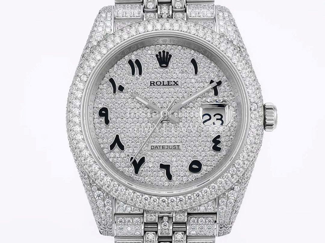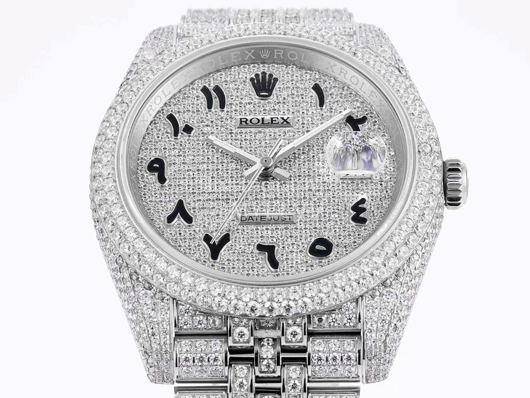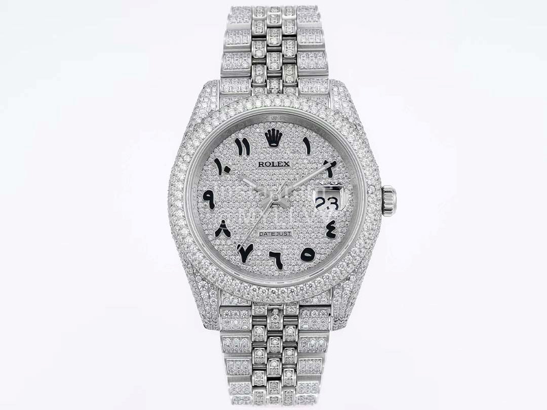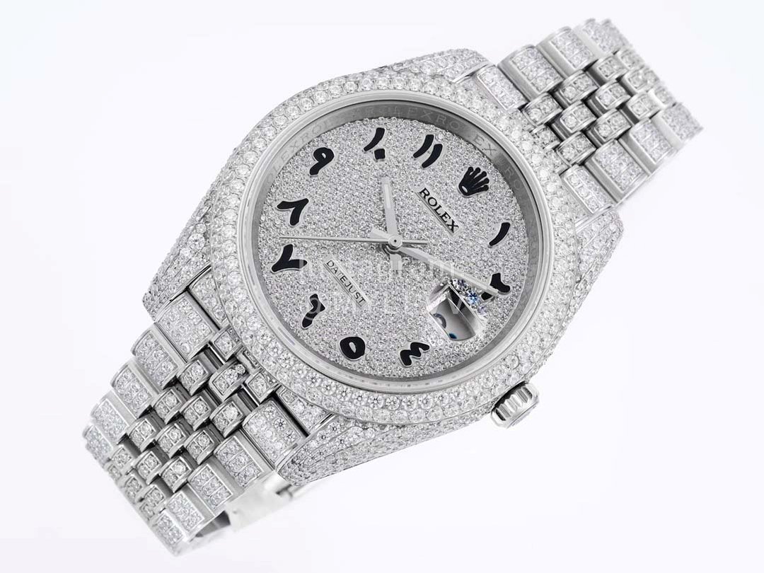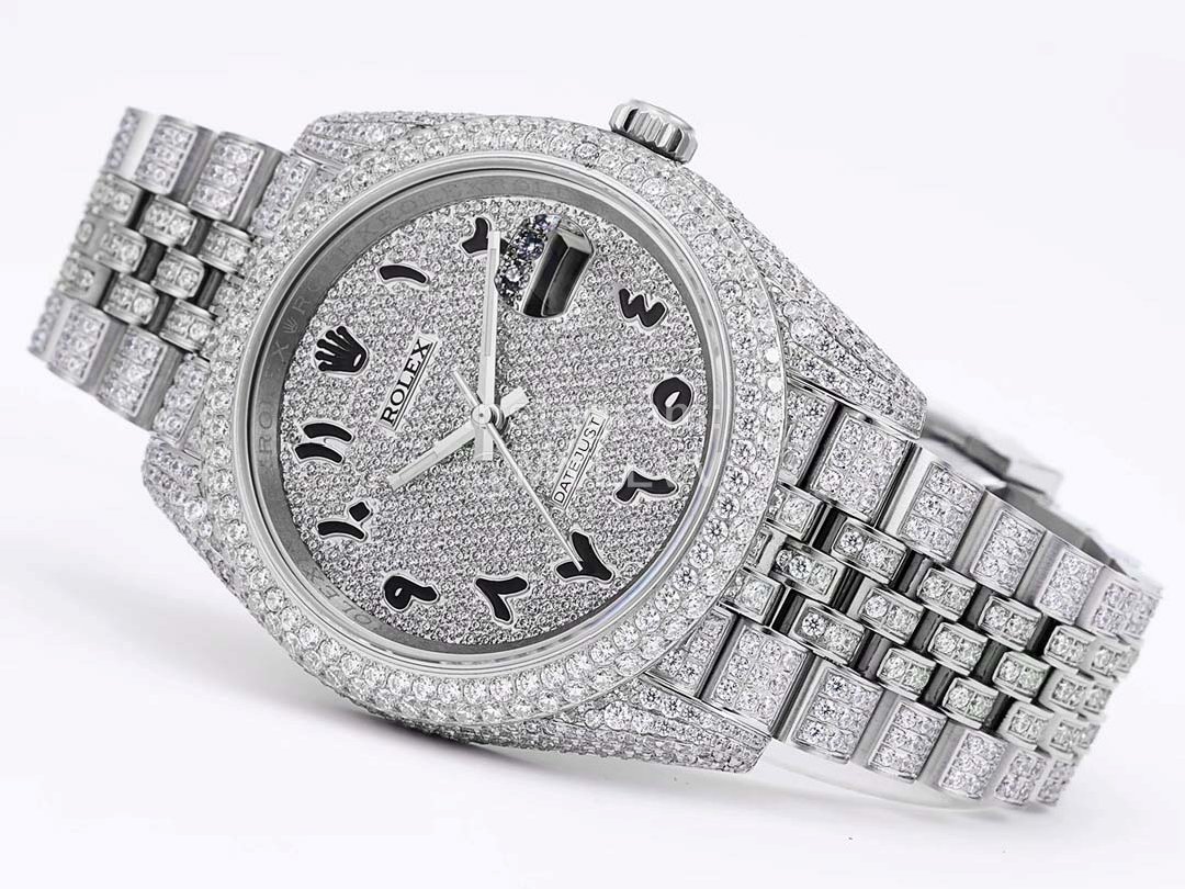 [case] the meter is synchronous with the original size of 41mm and is made of top-grade 904L refined steel. Densely inlaid with the finest Swarovski diamonds. The interpretation of extreme luxury is dazzling and charming.