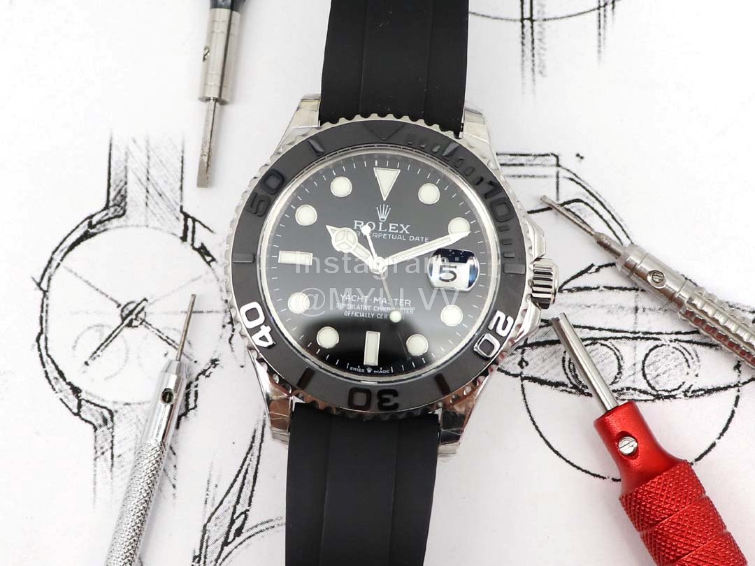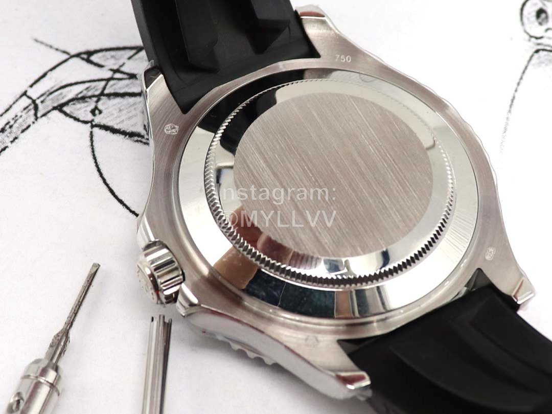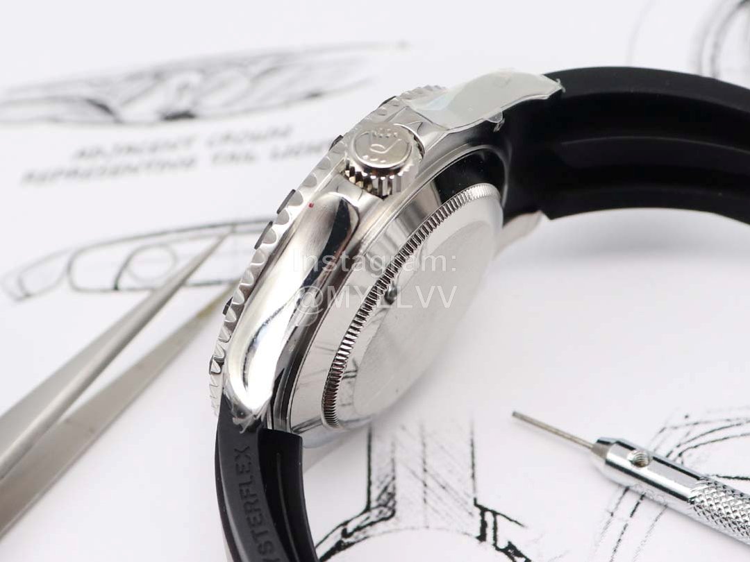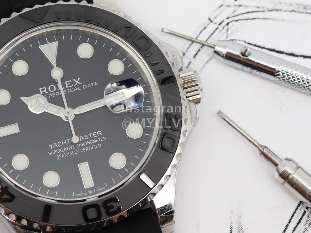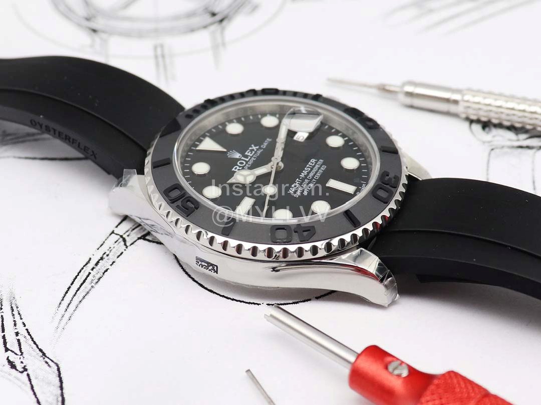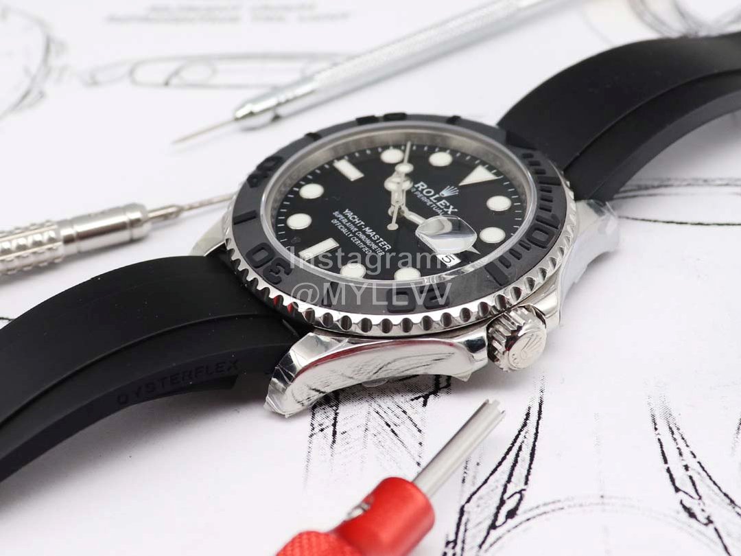 D1f new yacht 42mm arrival Rolex Rolex yacht Mingshi loaded with seagull 2836 movement, two-way rotation for 60 minutes, the scale outer ring is equipped with dumb black cerachrom ceramic ring mouth, highlighting polished three-dimensional numbers! Black lacquer dial and chromalight luminous material ensure clear reading. Pair it with an oysterflex strap for lightweight flexibility