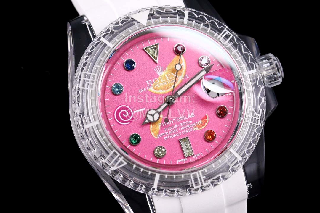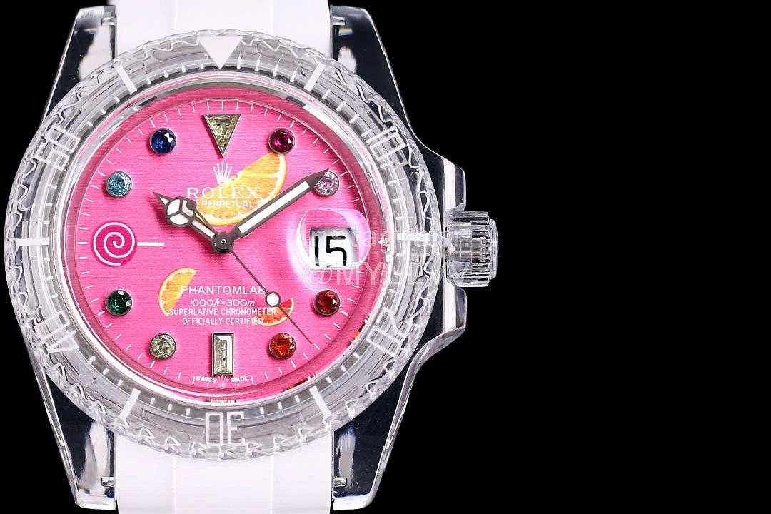 Rolex phantomlab refitted imported crystal “glass crystal series”, combined with elegant modern aesthetics and exquisite tabulation technology, launched imported crystal “glass crystal material” with excellent hardness and wear resistance for the first time. The texture is pure and transparent. The white tape is: fluorine glue is one grade higher than rubber, and a transparent tape is sent out: “TPE material”. On the premise that the overall structure of Rolex Water Ghost remains unchanged, For the first time, it breaks the Rolex MIDI structure and perfectly interprets the beauty of Rolex’s heart. The whole series adopts the Swiss Eta2824 automatic movement, literally, ring mouth, face Ding and needle. They all use imported blue luminous, sapphire glass (Blu ray magnifying glass) and craftsman’s core to create the ultimate luxury