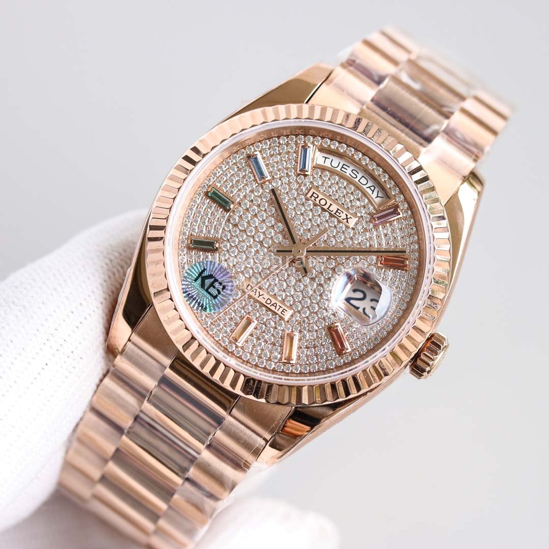 [TW 2021 new rainbow gradient sapphire all over the sky star] Rolex week log 36mm series. This watch carries many classic elements of Rolex: dog tooth ring, presidential chain, bubble mirror, rainbow gradient sapphire, big gold watch, etc. since its birth, this series of watches has been Rolex’s most iconic and recognizable Watch, highlighting the brand image, the appearance of the family, and reflecting personality, taste, charm strength!
