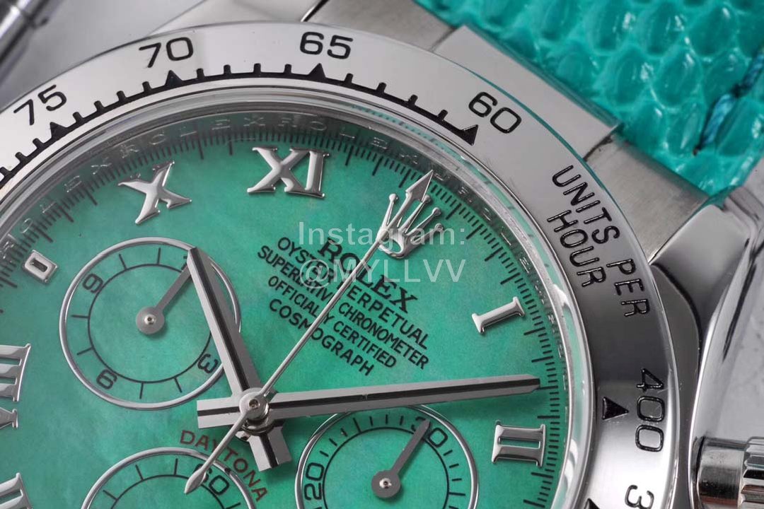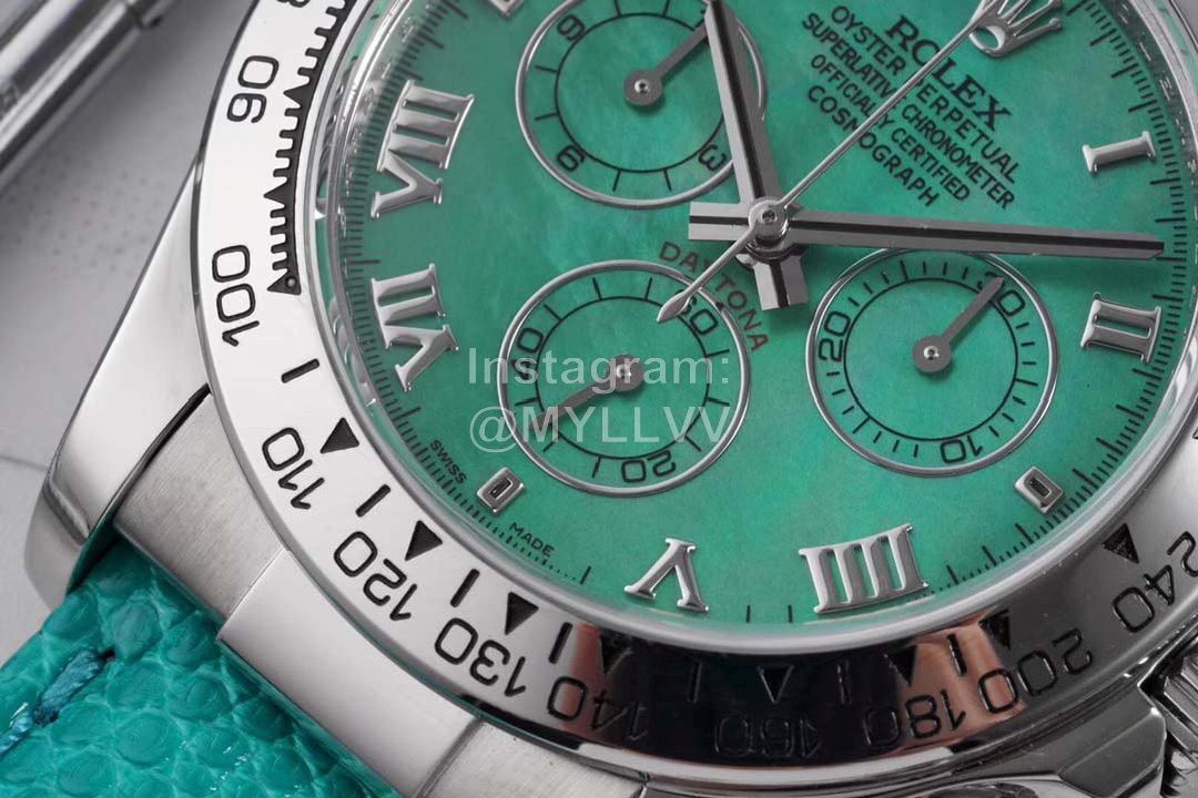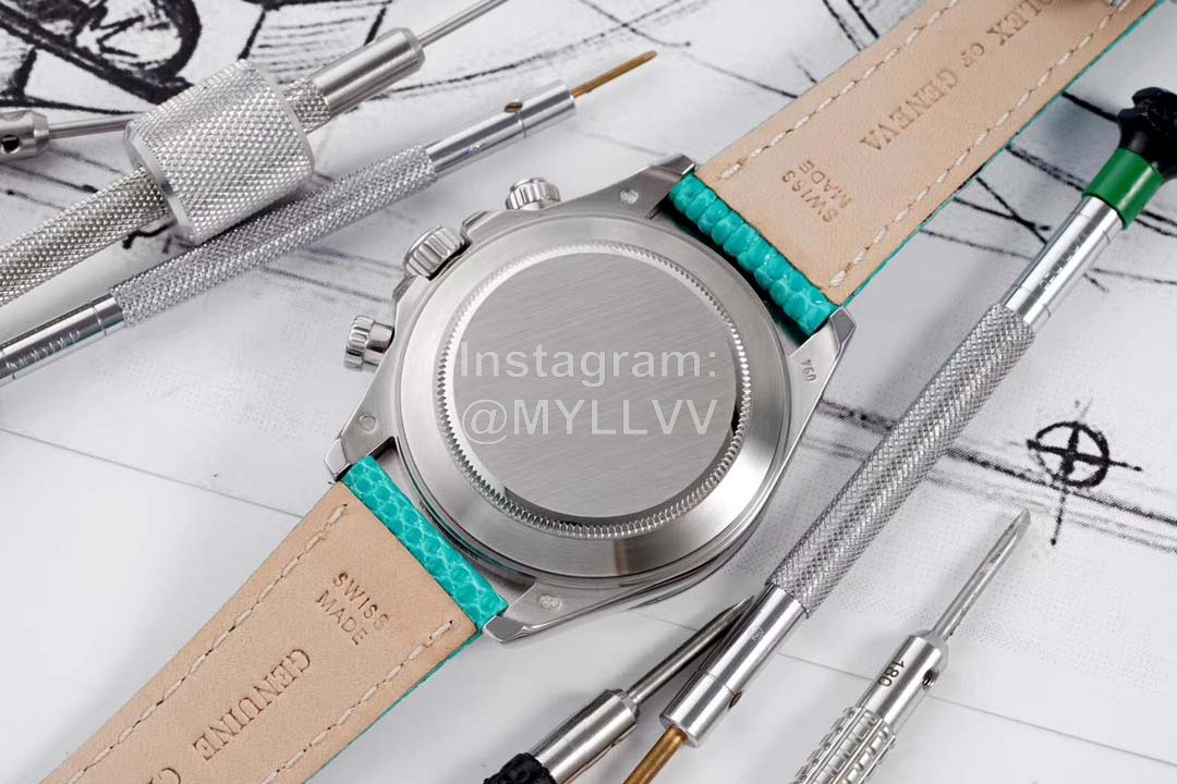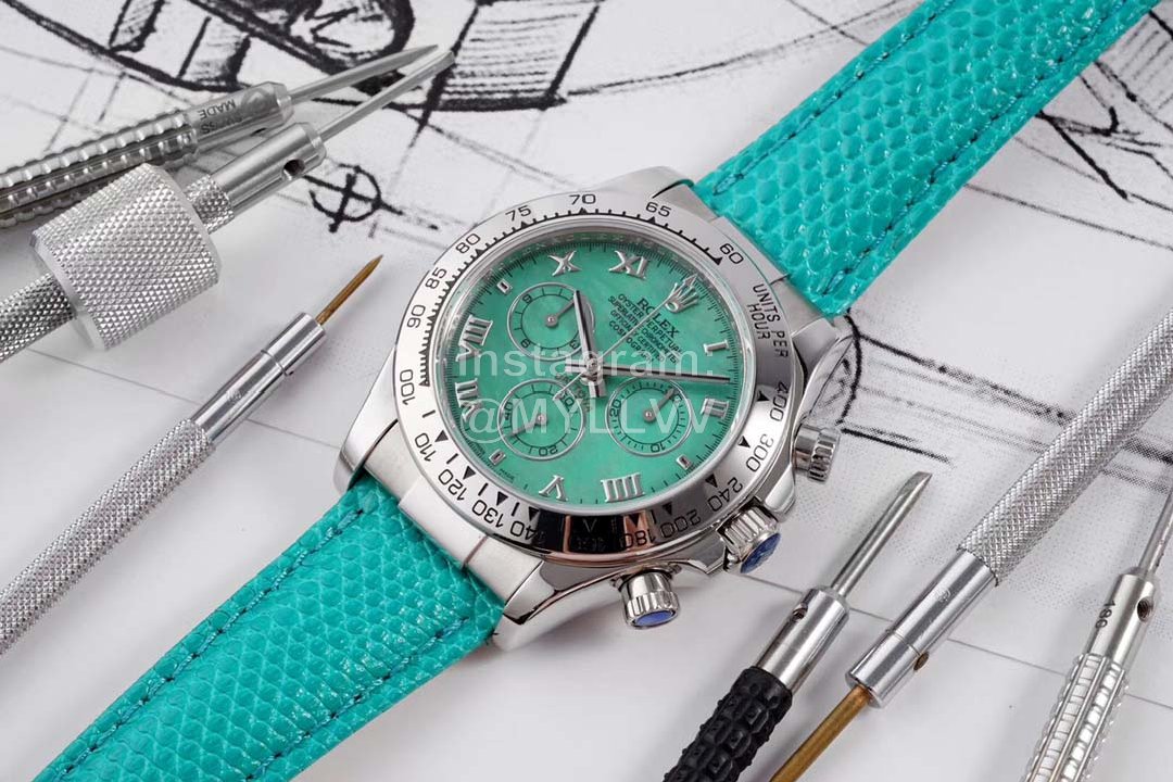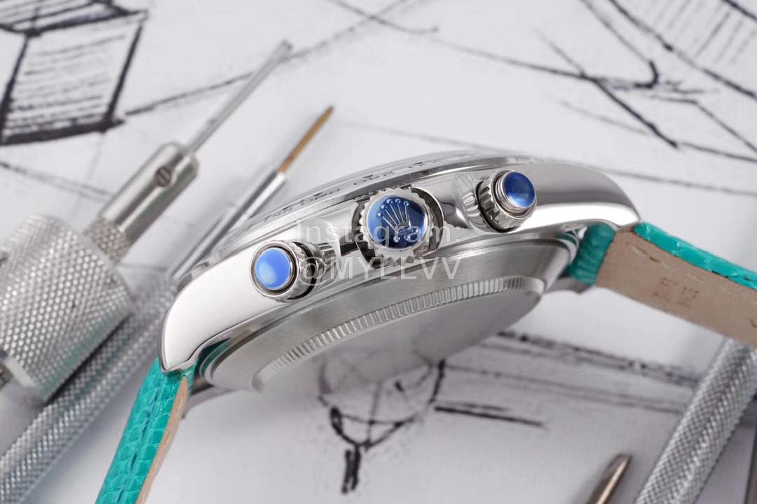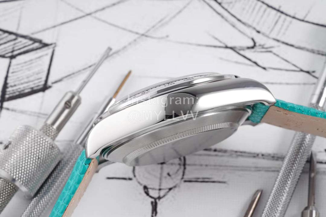2: The color of the color Fritillaria plate and the 904L fine steel case reflect each other. With the original lizard skin of the corresponding color, the whole watch is full of color, beauty and vitality! 3: The interior is equipped with a stable 7750 mechanical timing movement