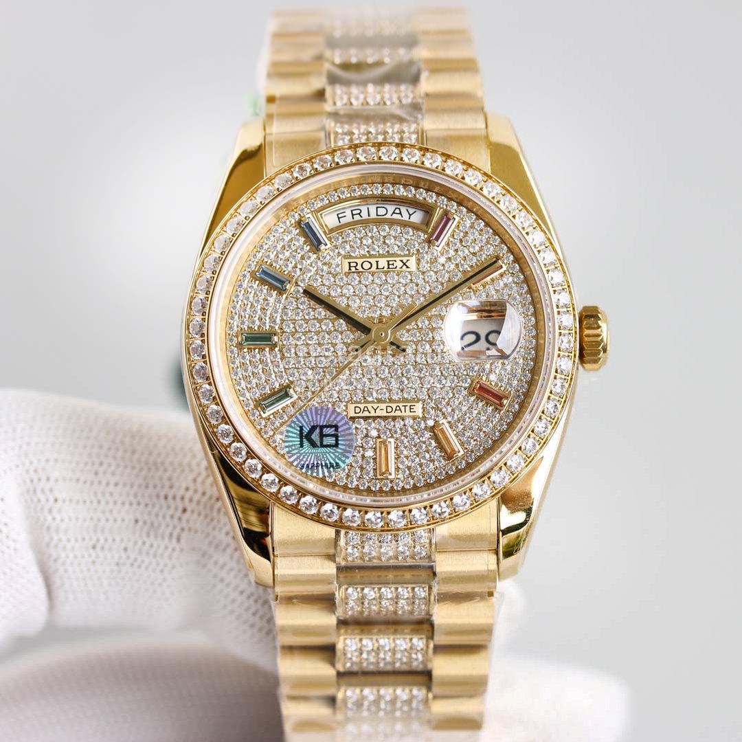 [TW 2021 new rainbow gradient sapphire all over the sky star] Rolex week log 36mm series. This watch carries many classic elements of Rolex: dog tooth ring, presidential chain, bubble mirror, rainbow gradient sapphire, big gold watch, etc. since its birth, this series of watches has been Rolex’s most iconic and recognizable Watch, highlighting the brand image, the appearance of the family, and reflecting personality, taste, charm strength!